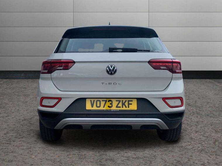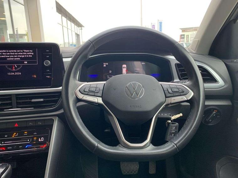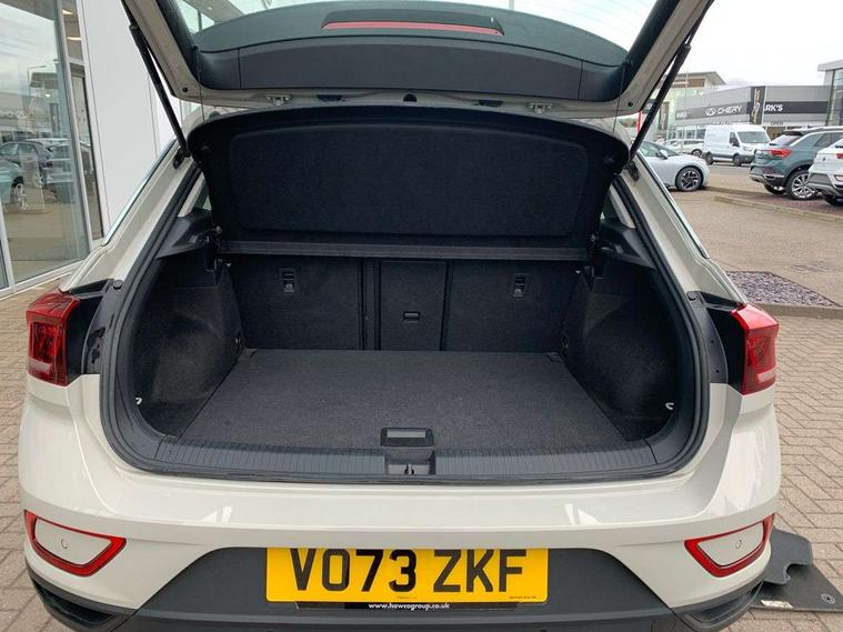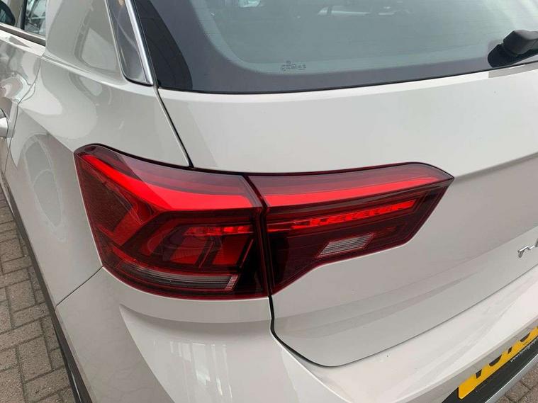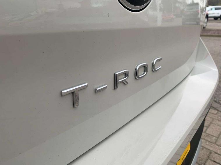 Advanced driver attention and drowsiness monitor, Bluetooth mobile phone interface, Driver tips and journey analysis, Emergency call service, Lane keeping system Lane Assist, Modified key software - reduce switch off time for key status change to Long no motion, Online services, Park assist including front and rear parking sensors, Power assisted speed sensitive steering, Service interval indicator, Tailgate/trunk lid release from outside, Think blue trainer driver tips and journey analysis, Warning sound and light for front seatbelts unfastened, Wireless app connect, Battery regeneration during braking, Front shock absorption, Rear shock absorption chassis with increased ride height, Start/stop function with battery regeneration, DAB Digital radio, Diversity antenna for FM reception, Music playback - MP3, WMA and AAC files, Premium USB cable in choice of either Apple or Android smartphone compatibility, SD card slot, Simultaneous pairing of 2 compatible mobile devices, Title and cover art display, We Connect and We Connect Plus functionality, 3rd brake light, Auto dimming interior rear view mirror, Automatic hazard lights activation under emergency braking, Automatic headlight control with LED separate daytime running lights with coming/leaving home function, Black roof rails, Body coloured bumpers and radiator grille with chrome trim and front fog lamps with chrome bezel, Body coloured exterior mirror housings and door handles, Extended roof spoiler, Exterior mirrors aspherical on driver side, convex on front passenger side, External USB type C socket and charging sockets, Front windscreen wiper with intermittent wipe and 4 position delay, Heated rear window, LED rear combination lamps, LED rear number plate lights, LED tail lamp rear comination lamps, Power windows with comfort operation and circuit breaker, Rain sensor, Rear exhaust tailpipe, Rear fog light on one side and reversing lights on both sides, Rear side wing doors, Rear wash/wipe with intermittent wipe setting, Remote electrically foldable door mirrors, puddle lights and reverse activated passenger's door mirror, 12V power socket in centre console, 3 rear head restraints, 3 seat bench in 2nd row, 4 load lashing points in luggage compartment, Air care climatronic air conditoning system with active combination filter and 2-zone temperature control, Ambient lighting with mirror logo projection, Cloth upholstery, Door and side trim panel in cloth, Drawer under drivers seat, Driver/front passenger seat height adjustment, Front centre armrest, Front comfort sports seats, Front cupholders x 2, Front reading light, Instrument lighting, white adjustable panel illumination, Interior light delay, Isofix child seat preparation, Leather gearshift handle, Load-through provision with cup holder when folded down ('Unsplit rear seat bench, split folding backrest, with centre armrest), Luggage compartment lighting, Lumbar support for driver's and front passengers seat, Non-folding front passenger seat backrest, Single front passenger seat, Storage compartment in left and right luggage area, Storage compartment in rear doors, Storage compartments in driver and front passenger doors, Sunvisors with illuminated vanity mirrors, Variable boot floor, height adjustable and removable, Driver assistance pack without proactive passenger protection - T-Roc, 3 point height adj front seatbelts + pretensioners, 3 point seatbelts in outer rear with ECE label, ABS, Child locks on rear doors, Driver and front passenger airbag with front passenger airbag deactivation, Driver and front passenger safety-optimised head restraints, Drivers seatbelt reminder, Electronic parking brake, Electronic Stability Control (ESC) inc EDL (Electronic Differential Lock) and ASR (Traction Control), Front and rear passengers curtain airbag system including front side airbags, Front assist with city emergency braking and pedestrian monitoring, Front disc brakes, Front seat side impact airbags, Hill start assist, Predictive pedestrian protection, Rear disc brakes, Two tone horn, Tyre pressure loss indicator, Volkswagen roadside assistance, Alarm with interior protection, Anti-theft alarm system with interior monitoring, backup horn, and towing protection, Remote central locking with SAFELOCK, radio remote control with 2 remote control folding keys, Pewter matt decorative inserts for intrument panel, centre console and door panels at the front, Trims for alloy wheels,