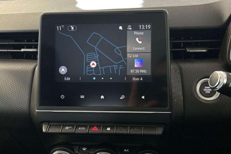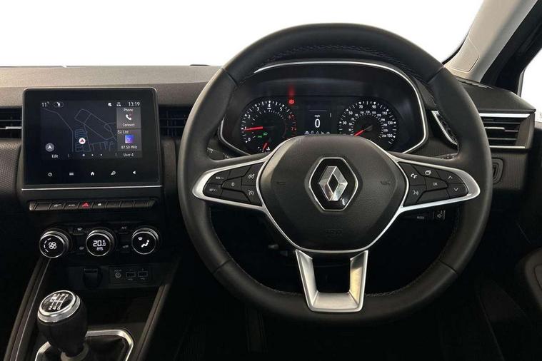 4.2" colour instrument display, Cruise control + speed limiter, E-call, Easy link 7"screen with nav, 4x20W amp, DAB double tuner, 2xUSB, 1xJack/Bluetooth, and smartphone integration plus - Apple CarPlay/Android Auto, Eco mode driving function, Gear change indicator, Lane departure warning system, Lane keep assist, Over speed prevention, Rear parking sensors, Traffic sign recognition, Trip computer, Variable assistance electric PAS, Body colour door handles, Body colour door mirrors, Body coloured bumpers, Body coloured rear spoiler, Chrome insert on lower side doors with Clio embossing, Drivers one touch window with anti-pinch feature, Electric adjustable/heated/folding door mirrors, Electric front windows, Electric rear windows, Exterior rear hidden door handles, Full LED front and rear headlamps integrating daytime running lights at the front and rear, Rear fog lights, Rear wiper, Tinted rear windows, Variable speed on front windscreen wipers, 12V Accessory socket, 3 rear height adjustable headrests, 6.2L front glovebox, 60/40 split rear seats, Air recirculation control, Auto climate control, Centre console with armrest, Cloth upholstery, Driver's seat height adjustment, Front cupholders, Front door storage bin, Height adjustable front headrests, Height adjustable passenger seat, Height/reach adjust steering wheel, Isofix system on outer rear seats, Multi function steering wheel, Pollen filter, Synthetic leather steering wheel, System for Restraint and Protection SRP-front seats, Comfort pack - Clio HB, 3 point seatbelts on all rear seats, ABS+EBD+Brake assist, Automatic emergency braking system, Curtain airbags, Distance warning alert, Driver and passenger front and side airbag deactivation, Driver/Front Passenger airbags, ESC - Electronic Stability Control + traction control, Front side airbags(head+thorax), Height adjustable driver's seatbelt, Hill start assist, Seatbelt warning, Tyre pressure warning, Central door locking, Deadlocking system, Hands free key card with push button, start and stop function, Locking fuel filler cap, RAID (Renault Anti-Intruder Device) with automatic door locking, Rear side wing door and window child locking function (front driver door control panel), Remote central locking with thatcham approved immobiliser, 16" Philia diamond cut alloy wheels,