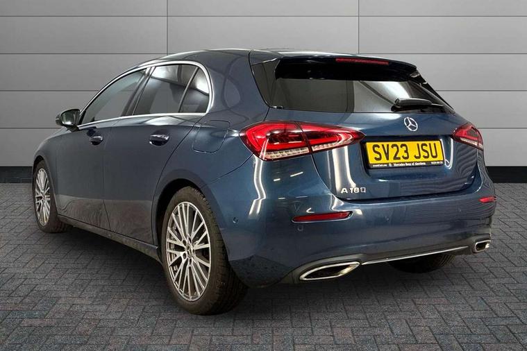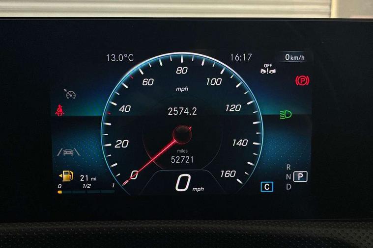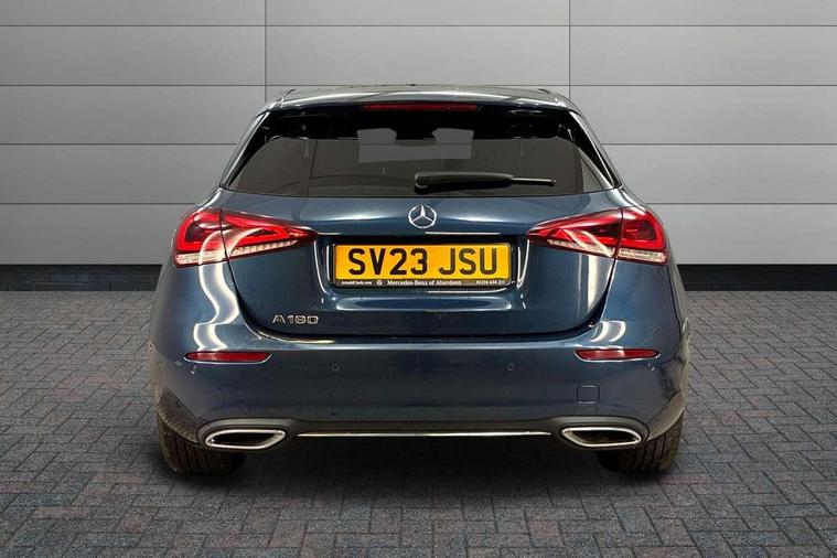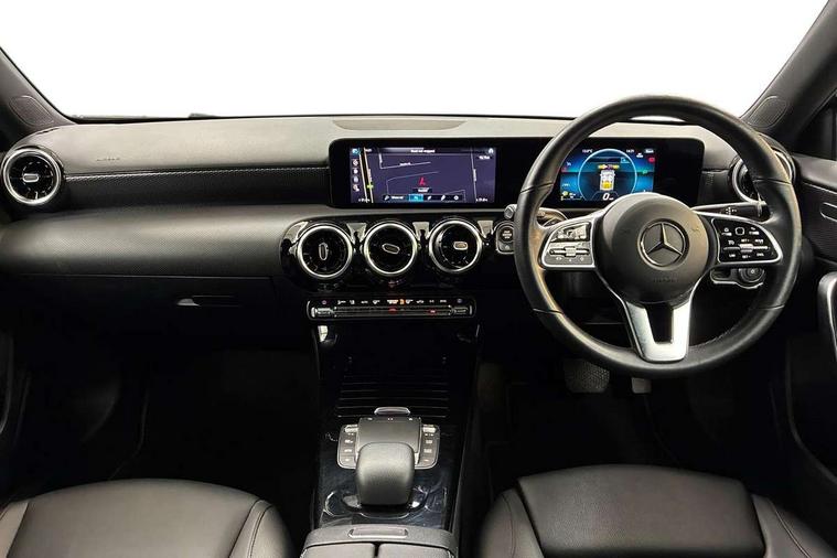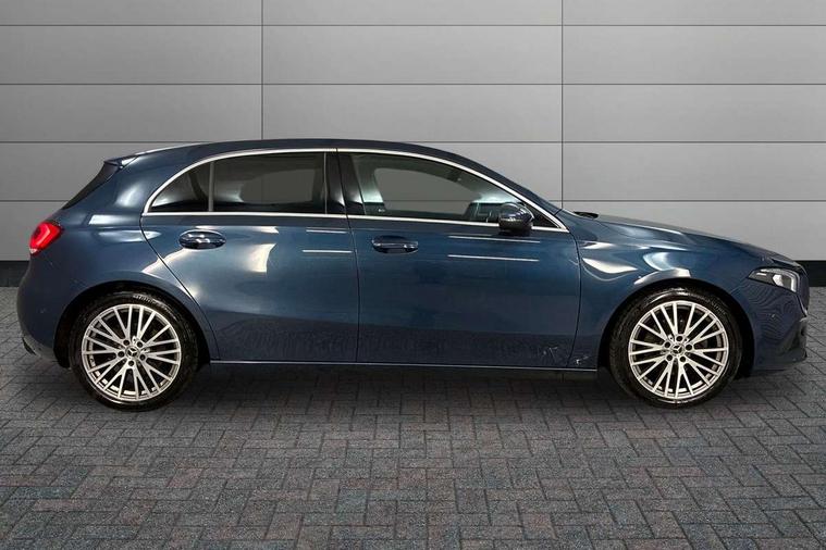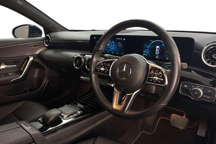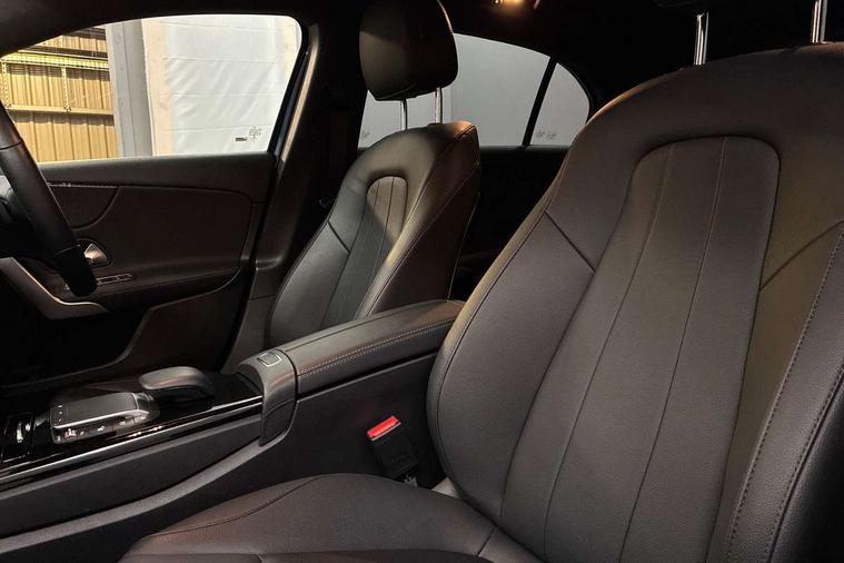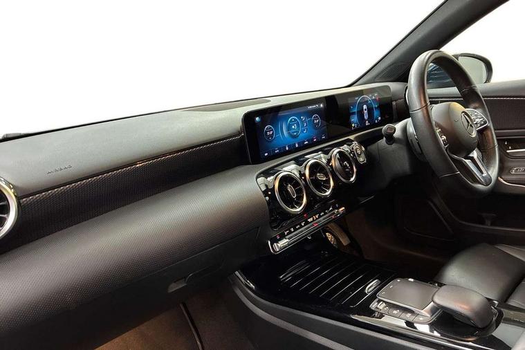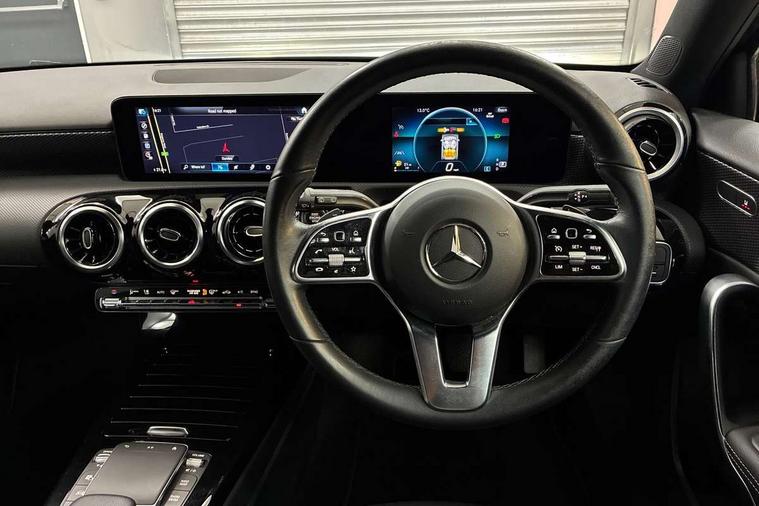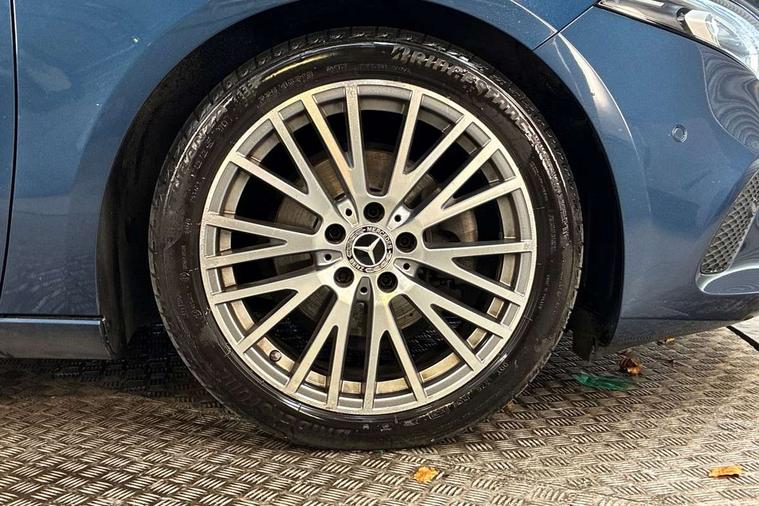 10.25" media display, 180 degree rear view camera with parking guidelines, 7" colour screen in instrument panel, Active parking assist with visual and audible warning of detected obstacles, Attention assist, Brake pad wear indicator warning light, Car wash mode, Cruise control + speed limiter, Direct steering, Dual bluetooth interfaces, DYNAMIC SELECT with a choice of driving modes (ECO, Comfort, Sport and Individual), ECO start/stop function, Fluid level warning indicator for fuel, oil, coolant and washer fluid, Hard-disk navigation, Hey Mercedes Voice activation, Lamp failure indicator, Lane keeping system, Mercedes me connect including emergency call system, accident recovery, breakdown and maintenance management, Mercedes me remote services, Outside temperature gauge, Owners manual in English, Pre-installation for private car sharing, Preinstallation for Mercedes Benz link, Service indicator (ASSYST), Smartphone integration with Apple CarPlay and Android auto, Speed limit assist, Speed sensitive power steering, Trip computer, Ultrasonic sensors positioned in the front and rear bumpers, Lowered comfort suspension, Rear axle torsion beam, 2 USB ports (type C) in rear stowage compartment and one in front of center console, 6 speakers, DAB Digital radio, MBUX multimedia system with DAB digital radio and touchpad including satellite navigation, Mercedes-Benz sound system - 100W, 4 Electric Front and Rear windows, Adaptive brake lights, Automatic headlights, Black weather strip, Body colour bumpers, Body colour door handles with chrome inserts, Body colour side skirt, Body coloured door mirrors, Chrome beltline trim, Diamond radiator grille with black pins with one louvre in silver + chrome insert, Electric adjustable and heated door mirrors with integrated LED side indicators, Exhaust system - Twin visible tailpipes in polished stainless steel, Headlamp assist automatic headlamp activation, Heated glass rear windscreen + timer control, LED High level third brake light, LED high performance headlamps with integrated LED daytime running lights, LED tail lamp, Privacy glass, Radio aerial, Rain sensing windscreen wipers with two sensitivity settings, Rear fog lights, Rear side wing doors, Rear wiper, Window line trim strip in chrome, 3 seat bench in 2nd row, 3 Spoke leather multi function steering wheel, 40:20:40 split folding rear seats, Artico man-made leather upholstery, Auto Mercedes-Benz child seat recognition sensor, Black air vents with surround in silver chrome, Black roof lining, Controller on centre console with chrome surround, Front centre armrest with storage compartment, Front comfort seats with adjustable head restraints, Front door sills with Mercedes Benz lettering, Front seat backs luggage nets, Gearshift paddles on steering wheel, Heated front seats, Height/reach adjustable steering column, Interior mirror with reading lamps in black and frameless, Manual height adjustable front seats, Rear head restraints, Seat occupancy sensor for front passenger seat, Single front passenger seat, Stowage compartment in centre console with retractable cover, Sunvisors with illuminated vanity mirrors, Touchpad on center console, Twin front cupholders, Two zone thermotronic luxury automatic climate control, Velour floor mats, Light and sight pack - A Class, Mirror package - A Class, Seat comfort pack - A Class, 3 rear 3 point seatbelts, ABS with Brake Assist, Active bonnet, Active brake assist includes forward collision warning system with autonomous braking, Adaptive brake assist with hold function and hill start assist, Childproof locks manually operated for rear doors and electrically operated for rear power windows, Crash responsive emergency lighting, Driver and passenger head and side airbags, Drivers knee airbag, Dual stage driver/passenger airbags, Electronic parking brake, ESP curve dynamic assist, ESP with ASR, Front and rear seatbelt reminder, ISOFIX and top tether child seat fixing points in two outer rear seats, Tyre pressure monitoring system, Warning triangle and first aid kit, Window airbags, Alarm system/interior protection/immobiliser, Keyless Go, Remote central locking and crash sensor with emergency opening function, Urban guard vehicle protection system with immobiliser and interior protection, Black seatbelts, Dark carbon fibre interior trim, 18" Multi spoke light alloy wheels painted in himalayas grey with high sheen finish, Summer tyres, Tirefit sealant kit,