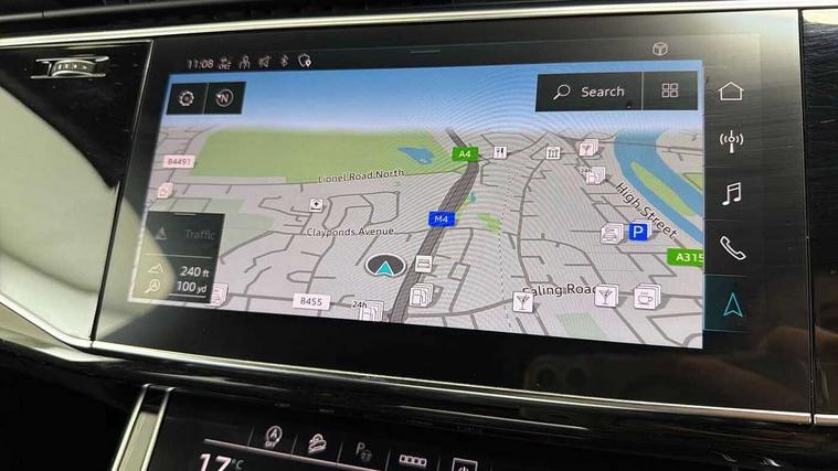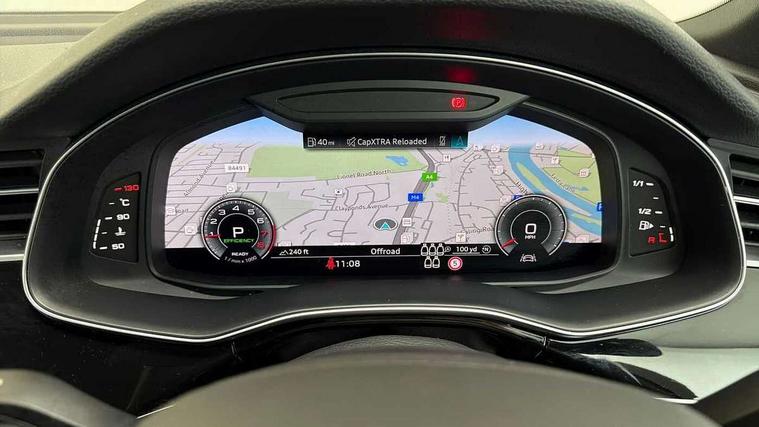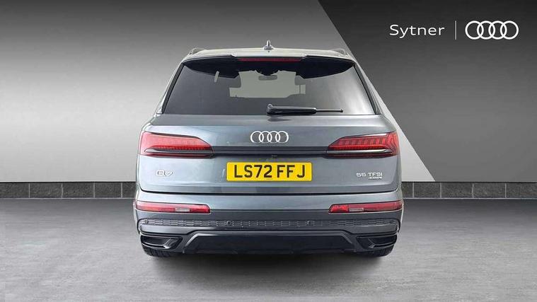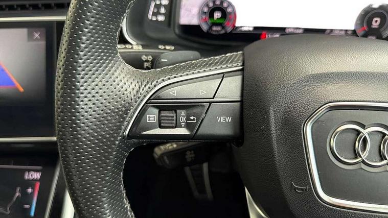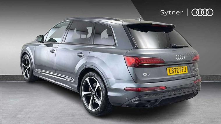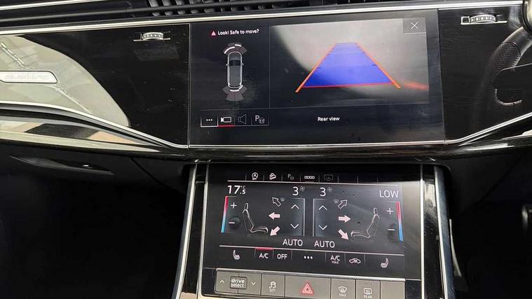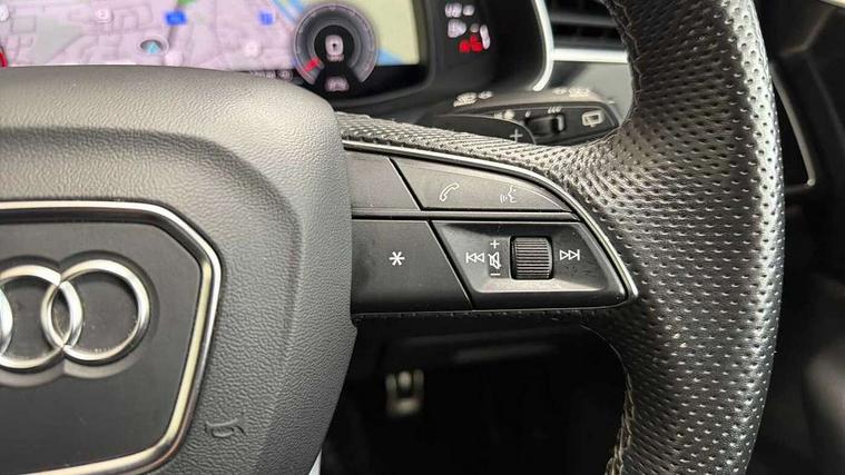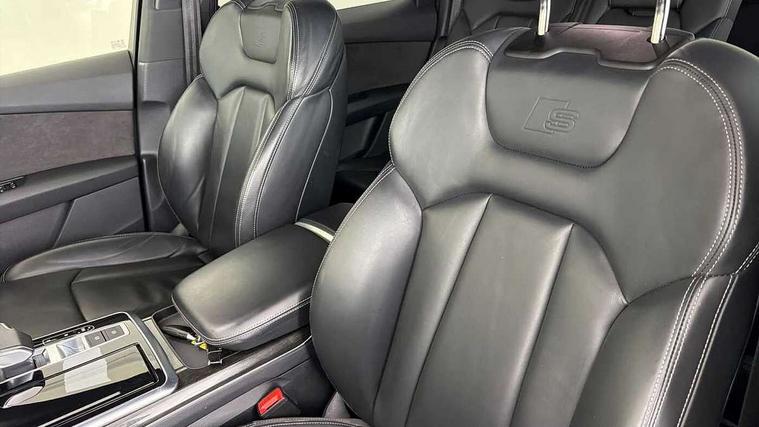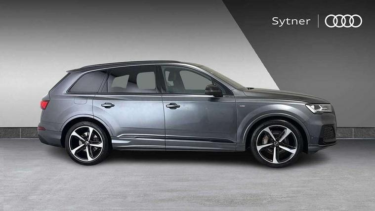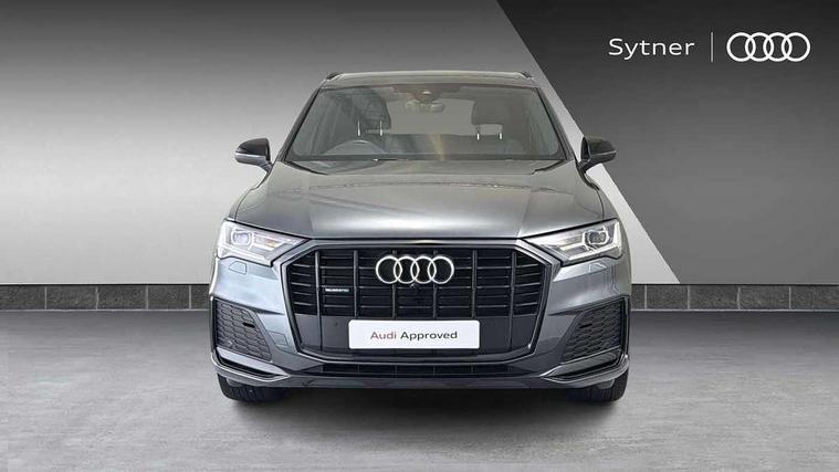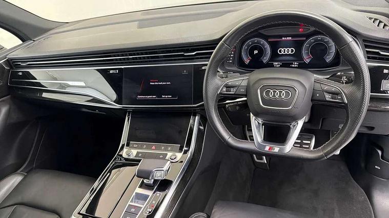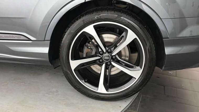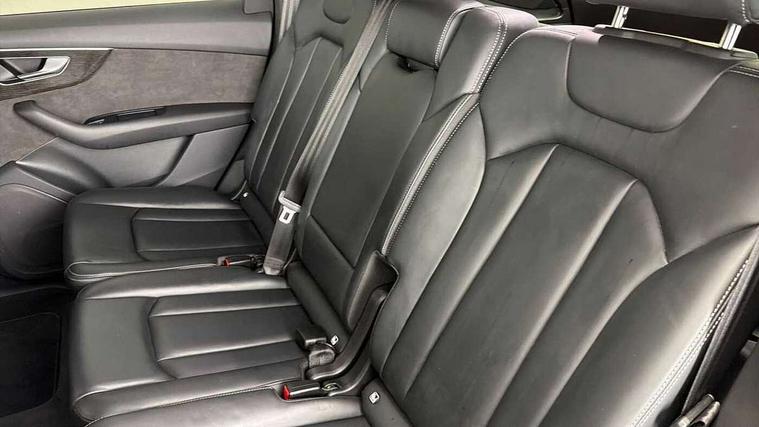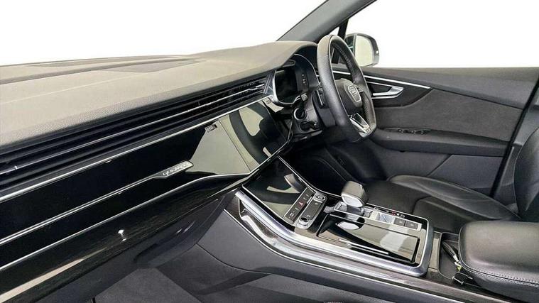 Audi connect safety and service (e-call), Audi connect with Amazon Alexa Integration, Audi drive select (Auto, Comfort, Dynamic, Efficiency, Individual, Off-road and All road), Audi smartphone interface includes wireless Apple carplay/Android Auto, Bluetooth interface, Camera based traffic sign recognition, Electromechanical steering, MMI navigation plus with MMI touch screens includes 10.1" and 8.6" screens with haptic feedback, Natural voice recognition, Parking system plus with 360 degree display (front, rear and side sensors) - acoustic and visual park assist system, Power operated tailgate, Rear view camera, Start/stop system, 48V Mild hybrid technology, 85 litre fuel tank, Adaptive air sports suspension, Quattro all wheel drive with self locking centre differential, Audi music interface - front 2 USB-C ports with charger and data functions, Audi sound system with 6 channel amplifier, 180 watt amplifying capacity and 10 loudspeakers including subwoofer, DAB digital radio module, 3rd brake light, Audi matrix LED headlights with dynamic front and rear indicators, Auto dimming frameless rear view mirror, Black roof rails, Bumpers in contrast paint scandium grey finish includes door trim and wheel arch trim strips, inlays in door strip contain quattro embossing, Electrically adj heated/folding + automatically dimming exterior mirrors with memory + automatic kerb side function for passenger side exterior mirror, Heat insulating glass in windshield, Integrated LED indications in door mirrors, LED daytime running lights, LED rear tail lights, Privacy glass - dark tinted rear and rear side windows from B-pillar backwards, Rear side wing doors, Rear wiper, 2 seat bench in 3rd row, 3 seat bench in 2nd row, 4 zone deluxe automatic climate control, 7 seat layout with ISOFIX points for the front passenger seat and rear passenger seat, Black cloth headlining, Comfort front centre armrest, Electric adjustable front seat with 4 way lumbar support, driver memory functionality, Folding rear seats, Front head restraints, Front/rear floor mats, Heated front seats, Illuminated door sill trims with S logo, LED interior ambient lighting, Luggage compartment cover, Luggage compartment sill protection in stainless steel, Rear head restraints, Single front passenger seat, Stainless steel pedals, Sunvisors with illuminated vanity mirrors, Tool kit, Titanium black styling pack - Q7/SQ7, 3 point seatbelts on all rear seats, Audi pre sense front, Child locks on rear doors, Driver and front passenger, front side and curtain airbags, Electromechanical parking brake, Electronic Stabilisation Control (ESC) including ABS, ASR and EDL, Extended pedestrian protection measures, Hill hold assist, Seatbelt monitoring, Tyre pressure loss indicator, Warning triangle and first aid kit, Anti theft alarm, Anti-theft wheel bolts and wheel loosening detection, Keyless Go, Remote central locking, Polished oak trim with grey finished, Tyre repair kit,