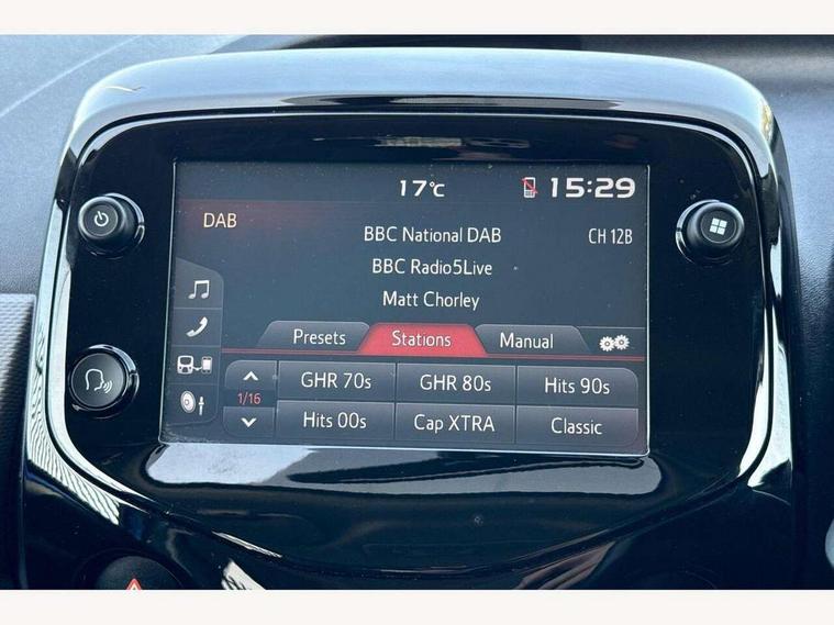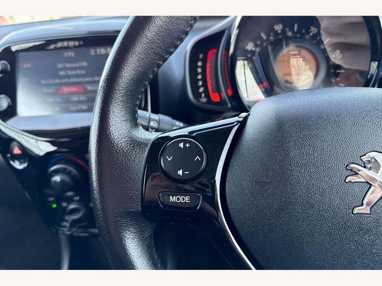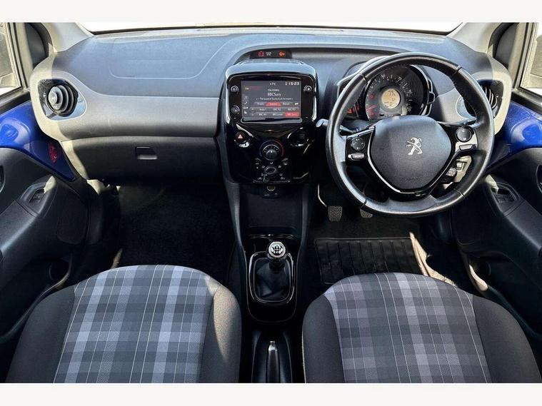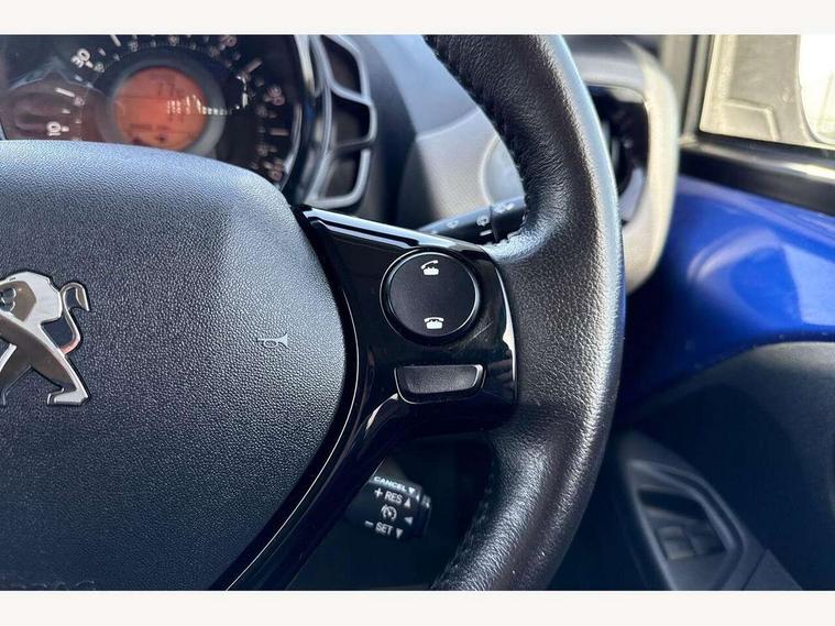 7" Capacitive colour touchscreen, Bluetooth system, Colour Reversing camera, Electrically assisted power steering, Rev counter, Service indicator, Speed limiter, Start/stop system, Trip computer, 2 speakers + 2 tweeters, 3.5mm jack for external audio device, DAB Digital radio, Steering wheel mounted remote controls, USB socket, Automatic headlights, Body colour bumpers, Colour coded door handles, Electric front windows, Electric operated/heated door mirrors, LED daytime running lights, Pop-out opening rear side windows, Raven Black roof, Rear wash/wipe, Static fog lights, Tinted rear and side windows, 2 rear head restraints, 50/50 split folding rear seat, Auxilliary 12V power socket, Carpet mats, Charcoal grey with gloss black centre console ambiance with charcoal grey dash insert with gloss black detailing around air vents, Driver seat height adjust, Height adjustable steering wheel, Leather gear knob, Leather trimmed steering wheel, Manual air conditioning, Rear seat 3 point ISOFIX location mounts x 2, Square Jusa cloth upholstery, 2 x 3-point rear seatbelts, ABS+Electronic Brake force Distribution, Driver and Passenger airbag with Passenger airbag deactivation switch, ESP with Hill Assist, Front and rear curtain airbags, Front side airbags, Rear door child safety locks, Tyre pressure sensor, Peugeot open and go system with keyless entry/stop start button, Remote control central locking, Seatbelt alarm (Driver & Passenger), Thatcham Cat 2 engine immobiliser, 15" Thorren alloy wheels, Space saver spare wheel,