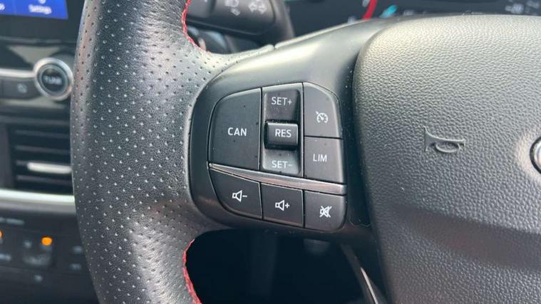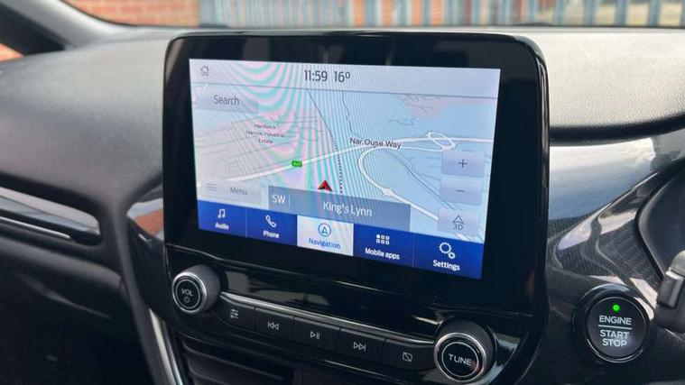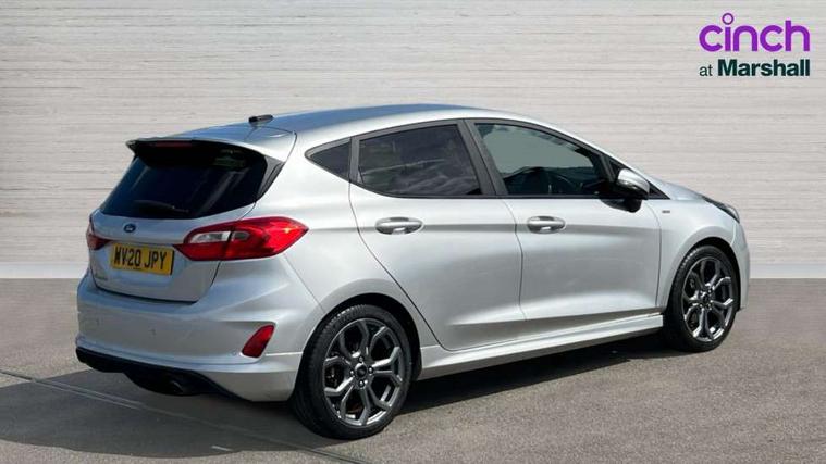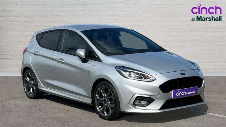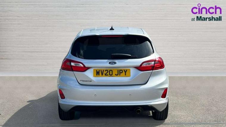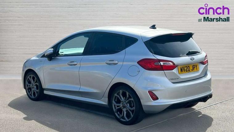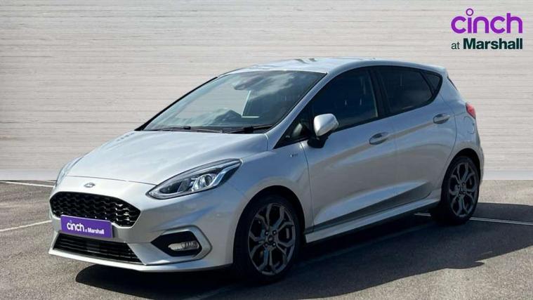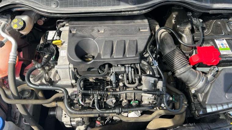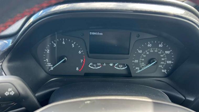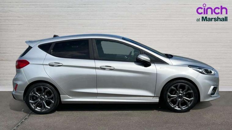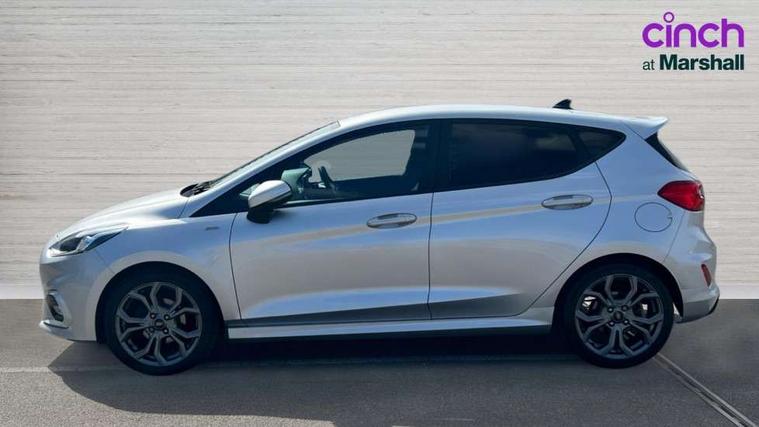 Bluetooth system, Electric power steering, Ford easy fuel, Ford SYNC 3 Navigation system incl 8" touchscreen, 7 speakers, FordPass connect, Apple carplay, android auto, voice control and emergency assistance, Rear parking distance sensors, Trip computer, Sports suspension, 2 USB ports, Auxiliary input socket, DAB Digital radio, Steering wheel mounted controls, Body colour bumpers, Body colour door handles, Body colour large rear spoiler, Body coloured electrically operated and heated door mirrors with side indicators, Cornering front fog lights, Electric front windows/one touch facility, Electric rear windows, LED Night signature to rear lights, Power foldable door mirrors with puddle lights, Quickclear heated windscreen, Rain sensing wipers and auto dimming rear view mirror, Rear privacy glass, Rear wiper, Unique ST-Line upper grille & full bodystyling kit with ST-Line wing badges, 12V Accessory socket in centre console, 3 spoke flat bottomed leather steering wheel, 60/40 split folding rear seat, Adjustable head restraints, Black headlining, Boot carpet, Centre console with armrest and illuminated cupholders, Chrome inner door handles, Cloth upholstery, Footwell illumination, Front map reading lights, Front seat and rear pockets, Front/rear floor mats, Height adjustable driver's seat, Illuminated glovebox, LED ambient lighting, Load area light, Manual air conditioning, Overhead console with sunglasses holder, Pollen filter, Rake/reach adjustable steering wheel, Sensico wrapped handbrake and gearknob, Sports front seats, Sports pedals, NCAP Pack - Fiesta, 3 point seatbelts on all rear seats, ABS+EBA, Curtain airbags, Driver and passenger airbags, Drivers knee airbag, Electronic stability control with hill start assist, Front passenger airbag deactivation, Front side airbags, Seatbelt warning, Two tone horn, Tyre pressure monitoring system, Keyless start with 'Ford Power' starter button, MyKey system, Remote central locking & engine immobiliser, Thatcham Cat.1 alarm, 17" 5 spoke alloy wheels with rock metallic finish,