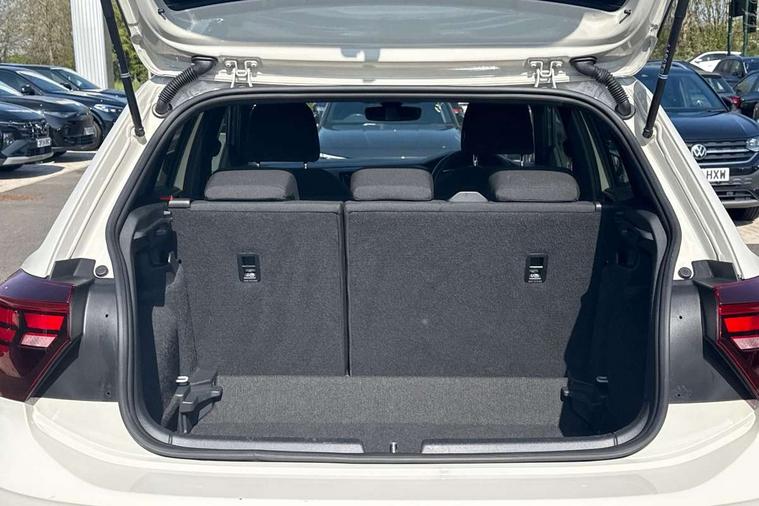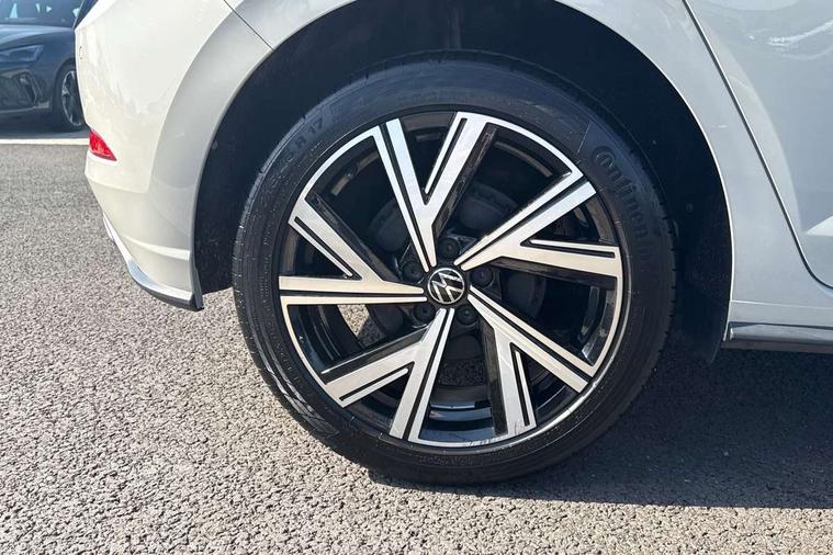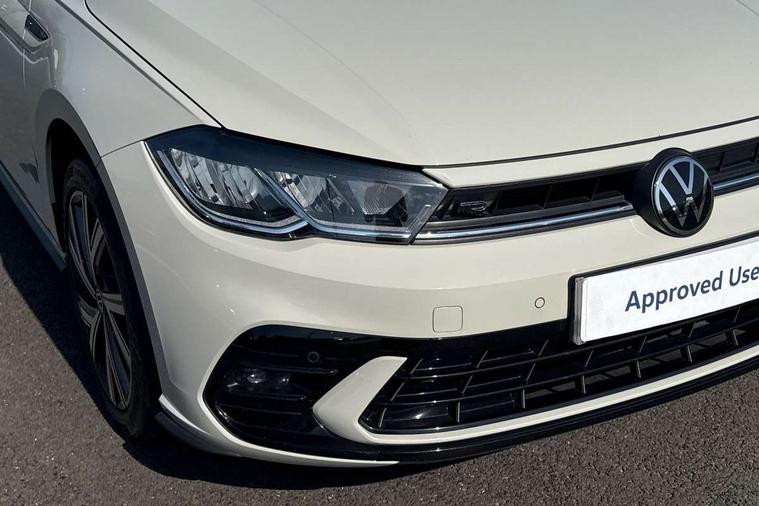 Adaptive cruise control with follow-to-stop and speed limiter, Bluetooth mobile phone interface, Digital Cockpit Pro with 10.25" Display, Driver alert system, Dynamic road sign display, Emergency call service, Power assisted speed sensitive steering, Preparation for We connect and We connect plus, Speedo and rev counter, electronic odometer, trip, service interval display and fuel gauge, Standard rear axle, Travel Assist - Lane keeping system and traffic jam assist, Travel assist including emergency assist, Trip computer, Warning signal and warning light for front and rear seatbelts not fastened, Washer fluid level indicator, Wireless app connect, Front wheel drive, Rear shock absorpion, Start-stop system with battery regeneration (recuperation - energy recovery during braking), DAB Digital radio, Diversity antenna for FM reception, Front and rear 6 speakers, Body colour bumpers, Body colour door handles, Electric front windows, Front scuff plates with R-Line logo, Heat insulating darkened glass in side and rear windows, Heat insulating glass windscreen, Power folding adjustable/heated exterior mirrors and front passenger exterior mirror lowering function, Rear electric windows, Rear fog light, Rear side wing doors, Rear windscreen washer and wiper with interval delay, Third brake light, 12V power socket in centre console, 2 USB-C ports in the front, 2 USB-C charging sockets on the center console in the rear, 3 rear head restraints, 60/40 split folding rear seat and rear seat bench not split, Air care climatronic air conditoning system with active combination filter and 2-zone temperature control, Black roof lining, Chrome plated radiator grille inserts, air vent surrounds and light switch surrounds, Door and side trim panel, Driver and front passenger seat height adjustment, Driver/passenger sunvisors with illuminated vanity mirrors, Front + rear carpet mats in recycled material, Front centre armrest, Front footwell illumination, Front seat backrest storage pockets, Front sports comfort seats, Handbrake lever handle in leather, Headliner in recycled material, Isofix child seat preparation easy-fit (for two outer rear seats, and front passenger seat) compatible with I-size, Karoso artvelours cloth upholstery, Leather trimmed gear knob, LED interior light with switch off delay and dimmer, 2 reading lights front and rear, Luggage compartment cover, Luggage compartment floor, Luggage compartment lighting, Lumbar adjustment for front seats, Single front passenger seat, Stainless steel pedals, Standard pedal cluster, Three spoke leather wrapped multifunction steering wheel with shifting paddles, Light and sight pack - Polo R-Line/Black Edition, 3 point height adj front seatbelts + pretensioners, 3x3 point rear seatbelts, ABS, Driver and front passenger airbag with front passenger airbag deactivation, Drivers and front passengers safety optimised head restraints, ESC (Electronic stability control) + EDL (Electronic Differntial lock) and ASR (Traction control), Extended and predictive pedestrian/ cyclist protection, Front curtain and side airbags with center airbag, Hill hold control, Manual child lock in rear doors, Single tone horn, Tyre pressure loss indicator, Alarm with interior protection, Anti-theft alarm system with interior monitoring, backup horn, and towing protection, Anti-theft wheel bolts, Electronic engine immobiliser, Chrome applications on rotary light, mirror adjustment, window regulator switches, outlet with frame in black, Dark grey anodised matt decorative inserts in dash and front door panels, Low rolling resistance tyres,