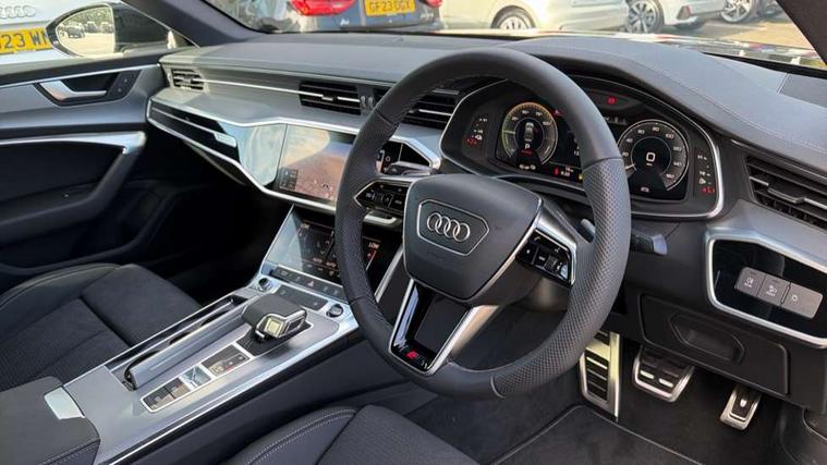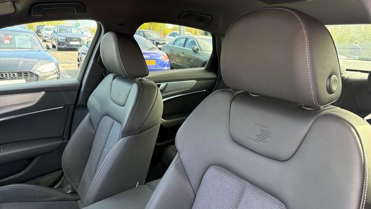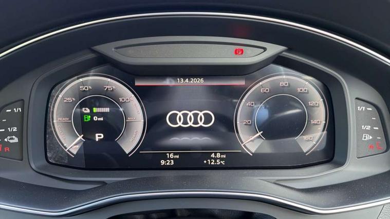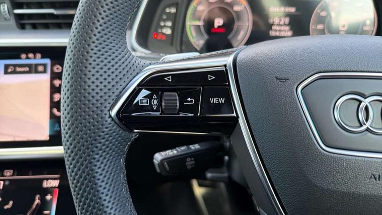 Audi connect safety and service (e-call), Audi connect with Amazon Alexa Integration, Audi drive select, Audi parking system plus - acoustic and visual park assist system for front and rear, Audi virtual cockpit, Automatic start/stop system with coasting functionality, Bluetooth interface, Camera based traffic sign recognition, Electric boot lid release, Lane departure warning system, MMI navigation plus with 10.1" and 8.6" touch screens, Progressive steering, Rear view camera, Service interval indicator, Smartphone interface includes wireless Apple carplay/Android Auto, Voice control system, 3 pin 10 amp domestic charging cable, 52 litre fuel tank, 7.4 kW onboard charger, Compact charging system, Hybrid propulsion system, Industrial connector CEE 32A, 230V, long and straight for the e-tron charging system, Mode 3 charging cable for public charging (AC), Sports suspension, Type 2 socket for AC charging, Audi front music interface, Audi sound system, Auxiliary input socket, DAB Digital radio, USB connection, Body coloured door mirrors, Electric front/rear windows, Electrically adjustable heated and folding + automatically dimming exterior mirrors with memory function, Frameless auto dimming interior rear view mirror, Front intermittent wipers, Heat insulating darkened glass in side and rear windows, Heat insulating glass in windshield, LED rear lights with dynamic indicators, LED signature front daytime running light, LED third brake light, Matrix LED headlights, Matt black rear diffuser with diffuser strip and tailpipes in chrome, Matt black side air intake grille with inlay in matt aluminium, Privacy glass, Radiator grille in anthracite black matt, single frame in chrome and horizontal struts in matt aluminium silver, Rain and light sensors, Rear boot, Rear side wing doors, 3 spoke high multi-function perforated leather steering wheel with contrast stitching and shift paddles, 4 zone deluxe automatic climate control, 40/20/40 split folding 3 rear seat bench in 3 parts with rear centre armrest, Audi phone box light, Black cloth headlining, Electrically adjustable front seats including seat height, fore/aft position, backrest angle and 4-way lumbar with memory for driver's seat, Front and rear floor mats, Front centre armrest, Front head restraints, Heated front seats, Height/reach adjust steering wheel, Illuminated door sill trims with S logo, Illuminated sun visors with vanity mirrors, Leather gear knob, Rear headrests, Single front passenger seat, Stainless steel pedals and foot rest, Tool kit and car jack, LED Interior Ambient Lighting Pack - A6, Non smoking pack - A6, S line exterior style pack - A6, 3 point seatbelts on all seats, Airbags - Front side, front and rear including head, Audi pre-sense front, EBD - Electronic brakeforce distribution, Electromechanical parking brake, Electronic Stability Control (ESC) including ABS, ASR and EDL, Extended pedestrian protection measures, ISOFIX child seat mounting for front passenger seat and ISOFIX child seat mounting with Top Tether for outer rear seats, Manual child proof rear door locks, Seatbelt monitoring, Tyre pressure warning light, Warning triangle and first aid kit, Anti theft alarm with tow away protection, Anti-theft wheel bolts and wheel loosening detection, Immobiliser, Keyless Go, Remote central locking, Matt brushed aluminium inlays, Tyre repair kit,