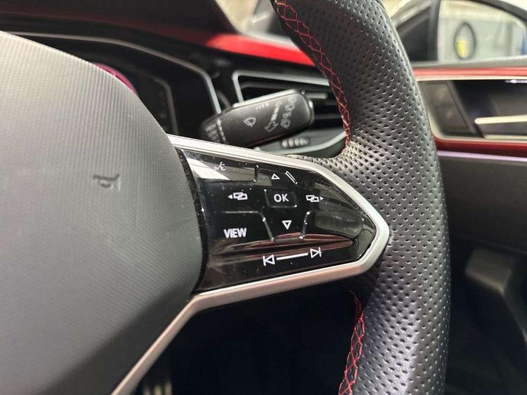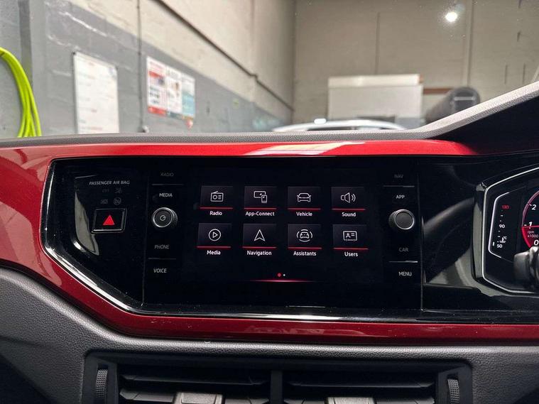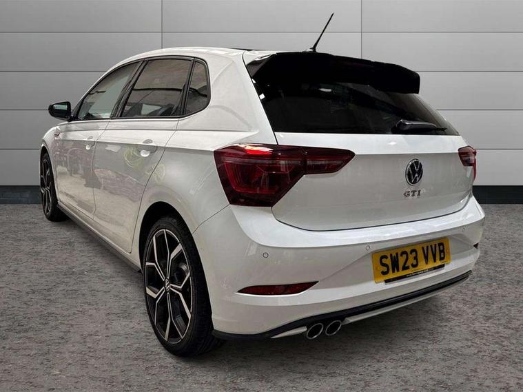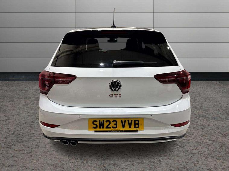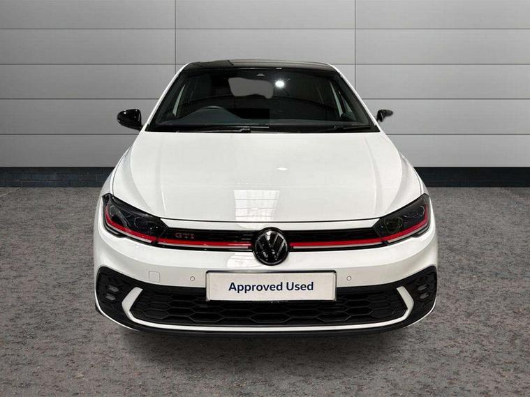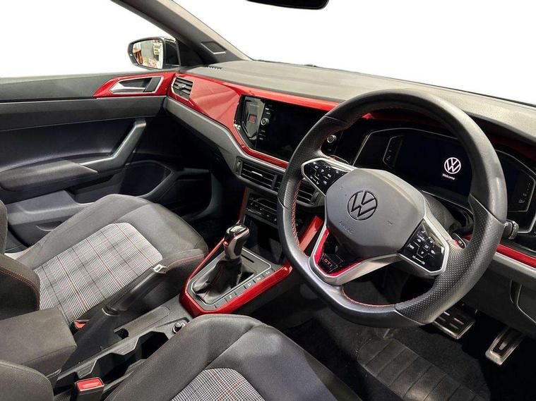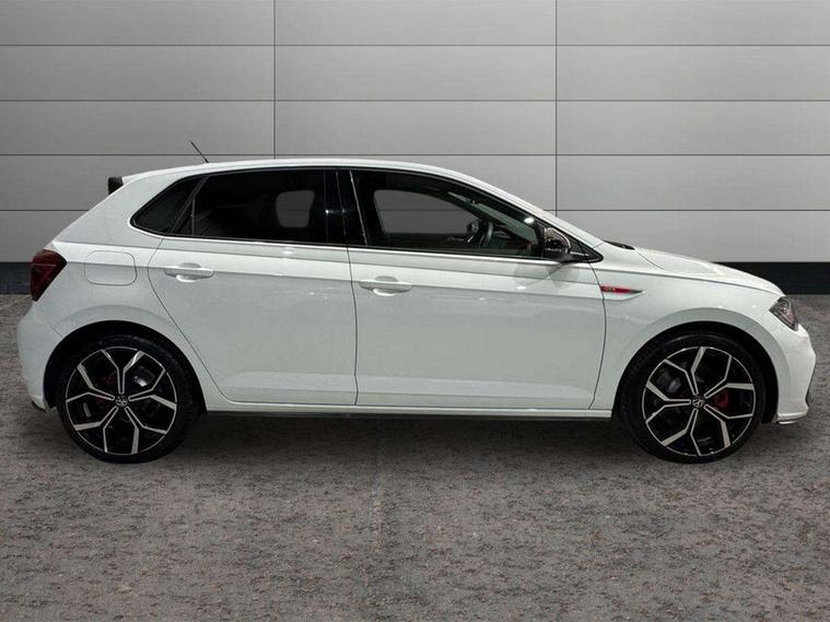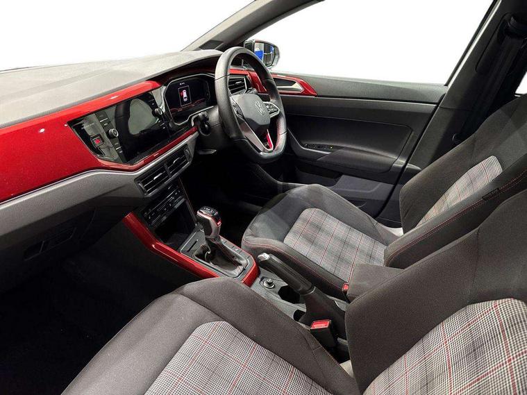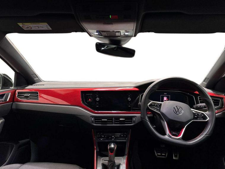 Adaptive cruise control with follow-to-stop and speed limiter, Bluetooth mobile phone interface, Digital Cockpit Pro with 10.25" Display, Driver alert system, Dynamic road sign display, Eco mode, Emergency call service, Power assisted speed sensitive steering, Preparation for We connect and We connect plus, Speedo and rev counter, electronic odometer, trip, service interval display and fuel gauge, Travel Assist - Lane keeping system and traffic jam assist, Travel assist including emergency assist, Trip computer, Warning signal and warning light for front and rear seatbelts not fastened, Washer fluid level indicator, Wireless app connect, Adaptive chassis control, Front wheel drive, Heavy duty rear axle, Rear shock absorpion sports version, Sports select suspension lowered by 15mm, Start-stop system with battery regeneration (recuperation - energy recovery during braking), DAB Digital radio, Diversity antenna for FM reception, Front and rear 6 speakers, Body colour bumpers, Body colour door handles, Electric front windows, Front scuff plates in aluminium with GTI logo, Heat insulating darkened glass in side and rear windows, Heat insulating glass windscreen, Power folding adjustable/heated exterior mirrors and front passenger exterior mirror lowering function, Rain sensor, Rear electric windows, Rear fog light, Rear side wing doors, Rear windscreen washer and wiper with interval delay, Sport bumpers with air intakes with honeycomb structure, Third brake light, Twin chrome exhaust tailpipes, 12V power socket in centre console, 2 USB-C ports in the front, 2 USB-C charging sockets on the center console in the rear, 3 rear head restraints, 60/40 split folding rear seat and rear seat bench not split, Air care climatronic air conditoning system with active combination filter and 2-zone temperature control, Black roof lining, Chrome plated radiator grille inserts, air vent surrounds and light switch surrounds, Door and side trim panel, Driver and front passenger seat height adjustment, Driver/passenger sunvisors with illuminated vanity mirrors, Front + rear carpet mats in recycled material, Front centre armrest, Front footwell illumination, Front seat backrest storage pockets, GTI sports gearshift knob in aluminium leather, Handbrake lever handle in leather, Headliner in recycled material, Isofix child seat preparation easy-fit (for two outer rear seats, and front passenger seat) compatible with I-size, LED interior light with switch off delay and dimmer, 2 reading lights front and rear, Luggage compartment cover, Luggage compartment floor, Luggage compartment lighting, Single front passenger seat, Stainless steel pedals, Standard pedal cluster, Three spoke leather wrapped multifunction sports steering wheel with shifting paddles, IQ LED matrix headlights pack - Polo, Light and sight pack - Polo GTI, 3 point height adj front seatbelts + pretensioners, 3x3 point rear seatbelts, ABS, Driver and front passenger airbag with front passenger airbag deactivation, Drivers and front passengers safety optimised head restraints, ESC (Electronic stability control) + EDL (Electronic Differntial lock) and ASR (Traction control), Extended and predictive pedestrian/ cyclist protection, Front and rear disc brakes with red brake calipers, Front curtain and side airbags with center airbag, Hill hold control, Manual child lock in rear doors, Two tone horn, Tyre pressure loss indicator, Alarm with interior protection, Anti-theft alarm system with interior monitoring, backup horn, and towing protection, Anti-theft wheel bolts, Electronic engine immobiliser, Chrome applications on rotary light, mirror adjustment, window regulator switches, outlet with frame in black, Low rolling resistance tyres,