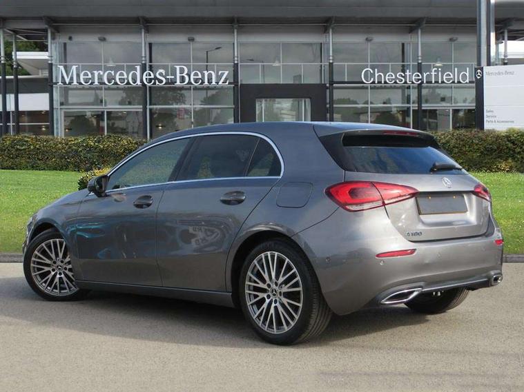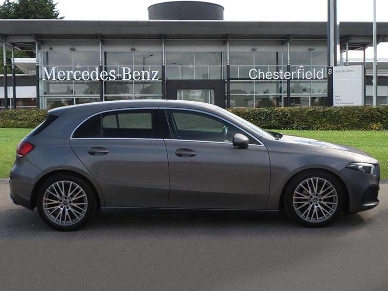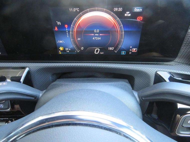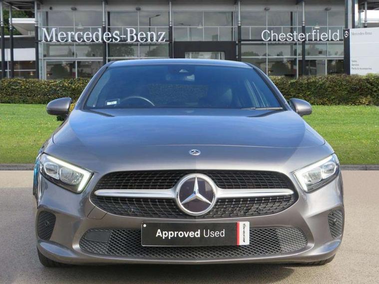 Ultrasonic sensors positioned in the front and rear bumpers, 10.25" media display, 180 degree rear view camera with parking guidelines, 7" colour screen in instrument panel, Active parking assist with visual and audible warning of detected obstacles, Attention assist, Brake pad wear indicator warning light, Car wash mode, Cruise control + speed limiter, Direct steering, Dual bluetooth interfaces, DYNAMIC SELECT with a choice of driving modes (ECO, Comfort, Sport and Individual), ECO start/stop function, Fluid level warning indicator for fuel, oil, coolant and washer fluid, Hard-disk navigation, Hey Mercedes Voice activation, Lamp failure indicator, Lane keeping system, Mercedes me connect including emergency call system, accident recovery, breakdown management and maintenance, Mercedes me remote services, Outside temperature gauge, Owners manual in English, Pre-installation for car sharing, Preinstallation for Mercedes Benz link, Service indicator (ASSYST), Smartphone integration with Apple CarPlay and Android auto, Speed limit assist, Speed sensitive power steering, Trip computer, Lowered comfort suspension, Rear axle torsion beam, 2 USB ports (type C) in rear stowage compartment and one in front of center console, 6 speakers, DAB Digital radio, MBUX multimedia system with DAB digital radio and touchpad including satellite navigation, Mercedes-Benz sound system - 100W, 4 Electric Front and Rear windows, Adaptive brake lights, Automatic headlights, Black weather strip, Body colour bumpers, Body colour door handles with chrome inserts, Body colour side skirt, Body coloured door mirrors, Chrome beltline trim, Diamond radiator grille with black pins with one louvre in silver + chrome insert, Electric adjustable and heated door mirrors with integrated LED side indicators, Exhaust system - Twin visible tailpipes in polished stainless steel, Headlamp assist automatic headlamp activation, Heated glass rear windscreen + timer control, LED High level third brake light, LED high performance headlamps with integrated LED daytime running lights, LED tail lamp, Privacy glass, Radio aerial, Rain sensing windscreen wipers with two sensitivity settings, Rear fog lights, Rear side wing doors, Rear wiper, Window line trim strip in chrome, 3 seat bench in 2nd row, 3 Spoke leather multi function steering wheel, 40:20:40 split folding rear seats, Artico man-made leather upholstery, Auto Mercedes-Benz child seat recognition sensor, Black air vents with surround in silver chrome, Black roof lining, Controller on centre console with chrome surround, Front centre armrest with storage compartment, Front comfort seats with adjustable head restraints, Front door sills with Mercedes Benz lettering, Front seat backs luggage nets, Gearshift paddles on steering wheel, Heated front seats, Height/reach adjustable steering column, Interior mirror with reading lamps in black and frameless, ISOFIX and top tether child seat fixing points in two outer rear seats, Manual height adjustable front seats, Rear head restraints, Seat occupancy sensor for front passenger seat, Single front passenger seat, Stowage compartment in centre console with retractable cover, Sunvisors with illuminated vanity mirrors, Touchpad on center console, Twin front cupholders, Two zone thermotronic luxury automatic climate control, Velour floor mats, Light and sight pack - A Class, Mirror package - A Class, Seat comfort pack - A Class, 3 rear 3 point seatbelts, ABS with Brake Assist, Active bonnet, Active brake assist includes forward collision warning system with autonomous braking, Adaptive brake assist with hold function and hill start assist, Black seatbelts, Childproof locks manually operated for rear doors and electrically operated for rear power windows, Crash responsive emergency lighting, Driver and passenger head and side airbags, Drivers knee airbag, Dual stage driver/passenger airbags, Electronic parking brake, ESP curve dynamic assist, ESP with ASR, Front and rear seatbelt reminder, Tyre pressure monitoring system, Warning triangle and first aid kit, Window airbags, Alarm system/interior protection/immobiliser, Keyless Go, Remote central locking and crash sensor with emergency opening function, Urban guard vehicle protection system with immobiliser and interior protection, Dark carbon fibre interior trim, 18" Multi spoke light alloy wheels painted in himalayas grey with high sheen finish, Summer tyres, Tirefit sealant kit,
