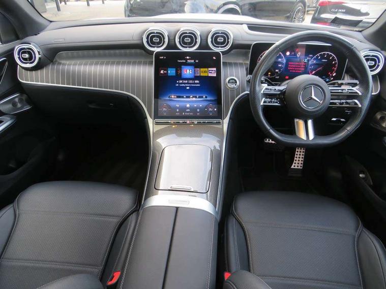11.9" high resolution multimedia colour display, 12.3" Digital individually configurable instrument display, Acoustic presence indicator, Active lane keeping assist, Attention assist, Bluetooth interface for hands free telephone, Collision prevention assist plus, Direct steer speed sensitive steering, DYNAMIC SELECT with a choice of driving modes (ECO, Comfort, Sport, Sport+ and Individual), eCall emergency call system, Fingerprint scanner, Fluorescent jacket for driver, Head up Display, Instrument display in miles with English lettering, MBUX navigation premium, MBUX voice control activated by keywords "Hey Mercedes", Mercedes me connect, Multi function trip computer, Outside temperature display, Remote services plus, Road sign recognition system, Service indicator (ASSYST), Smartphone integration, Status display for rear seat belts in instrument cluster, Traffic sign assist, Wireless charging, 48V Mild hybrid technology, 4MATIC permanent four wheel drive, 62 litre fuel tank, 9G TRONIC plus automatic transmission, Petrol Particulate Filter (PPF), Burmester 3D surround sound system, DAB digital radio tuner, MBUX extended functions, Pre installation for Mercedes Benz Link, Sound personalisation, Adaptive brake lights, Adaptive high beam assist plus, Aluminium look running boards with rubber studs, AMG bodystyling front apron, rear apron and side skirts, AMG Line exterior, Auto headlights, Body colour bumpers, Body colour door mirrors, Digital light LED headlights, Electric panoramic glass sunroof, Electrically adjustable door mirrors, Front and rear electric windows, Headlight washers, Heat and noise insulating acoustic glass, Heat insulating dark tinted glass, Heated rear window, High level LED brake light, Integrated LED daytime running lights, LED indicator lights, LED rear fog lights, LED tail lamp, Motor way mode function and locator lighting, Radiator grille with Mercedes Benz pattern and integreated Mercedes star and louvre in dark grey matt with chrome inlay and black frame, Rain sensor windscreen wipers, Range adjustable headlights, Rear side wing doors, Rear wiper, Transparent Bonnet, Two chrome plated tailpipe trim elements, Variable front intermittent wipers, Welcome and follow-me home light functionality, Wheel arch liners in the vehicle colour, 3 seat bench in 2nd row, 40:20:40 split folding rear seats, Air balance package, Ambient lighting premium, AMG floor mats, AMG line interior, Artico man-made leather upholstery, Audio and onboard settings control on multifunction steering wheel, Automatic child seat recognition sensor, Black fabric roof lining, Comfort seats, Double cup holder in centre console, Easy-pack removable load compartment cover, Electrically height/reach adjustable steering column, Front centre armrest with stowage compartment, Front head restraints, Galvanised steering wheel gearshift paddles, Heated steering wheel, Illuminated door sill panels with Mercedes Benz lettering, Illuminated glove compartment, Multifunction sports steering wheel in nappa leather, Partition net, Rear centre headrest, Rear head restraints, Rear top tether child seat ISOFIX attachment, Single front passenger seat, Sports pedals with stainless steel surfaces and rubber studs, Sun visors, Anti theft protection package - GLC, Boot comfort package - GLC, Energizing plus pack - GLC Coupe, Exterior chrome package - GLC, Interior chrome package - GLC, Interior lighting pack - GLC, Keyless-Go comfort package - GLC, Memory pack - GLC, Mirror pack - GLC, Parking package with 360 degree camera - GLC, Stowage space package - GLC, USB Plus Pack - GLC, 3 rear 3 point seatbelts, Anti-lock braking system (ABS), ASR traction control, Automatic front passenger airbag deactivation, Black seat belts, Brake calipers with Mercedes-Benz lettering + perforated brake discs, Child proof door locks, Dual-stage airbags - driver and front passenger, driver knee bag and window bags for driver, front passenger and rear passengers, Electronic parking brake, Electronic stability programme (ESP) with curve dynamic assist and cross wind assist, Front and rear seatbelt reminder, Front passenger seat occupancy sensor, Front seatbelt pretensioners, Hill start assist, Tyre pressure monitoring system, Warning triangle and first aid kit, Automatic door locking, Guard 360 degree vehicle protection plus, Interior protection/immobiliser, Remote central locking, Black open pore aluminium lines wood trim with centre console in metal structure finish, 20" AMG multi spoke light alloy wheels in painted black with high sheen finish, Summer tyres, TIREFIT with tyre inflation compressor,