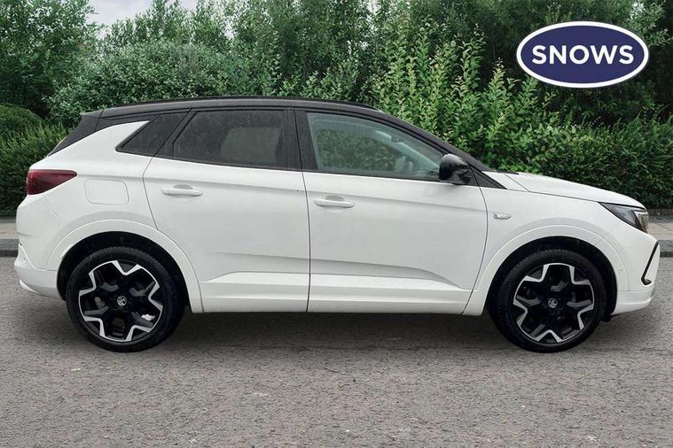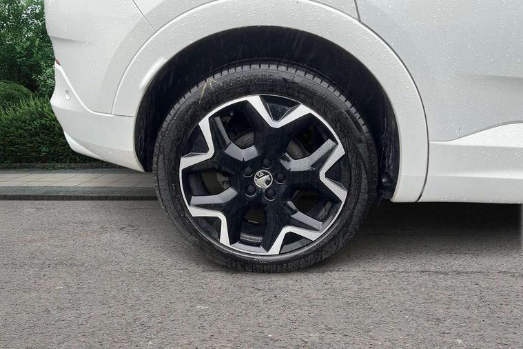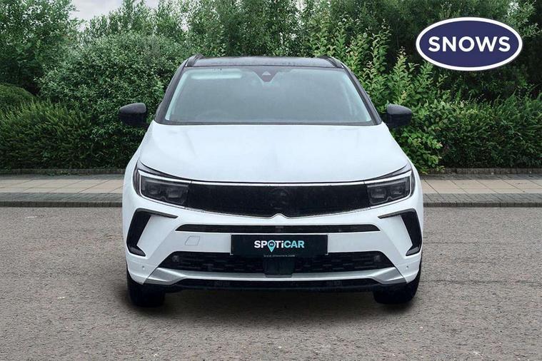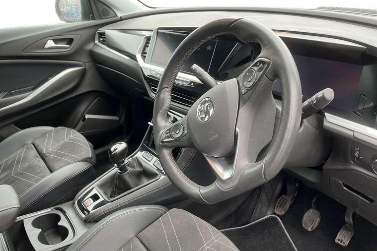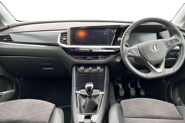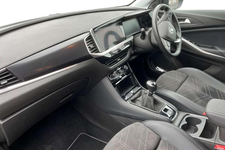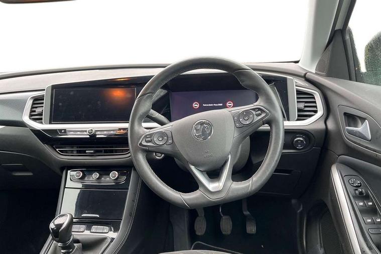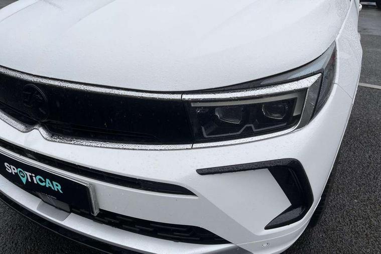 12" colour digital cluster, Central facia display with digital clock, outside air temperature and audio information, Cruise control with speed limiter, Digital fuel gauge with low fuel level warning light, Digital rev counter, Digital speedometer, Digital water temperature gauge with warning light, Driver drowsiness alert system, Driver information - Total mileage, service indicator, oil life, Front and rear parking distance sensors with 360 degree rear view camera and advanced park assist, Gearshift up/down indication light, Lane departure warning system, Lane keep assist, Lights on audible warning, Multi function trip computer - Trip odometer, vehicle range, average speed and fuel economy, instantaneous fuel economy and driving time, Multimedia navi pro with 10" colour touch+ sat nav+AM/FM/DAB radio, bluetooth audio streaming/mobile phone portal, Apple carplay/Android auto, USB, Power operated tailgate with foot sensor, Side blind spot alert, Speed sensitive electric power assisted steering, Speed sign recognition, Vauxhall connect including Emergency call (SOS e-call) and Breakdown call (b-call), Wireless charger for mobile devices, Anti-roll bars, Compound crank rear suspension with coil springs and gas pressure dampers, Independent decoupled MacPherson strut front suspension with gas pressure dampers and coil springs, anti-roll bar, Six speaker - four front + two rear, Steering wheel mounted audio/phone/cruise controls, Alloy effect front and rear skid plates, Automatic lighting control, Automatically dimming anti dazzle rear view mirror, Black door mirrors, Black side window trim, Body colour door handles, Body colour lower front and rear bumpers, protective wheel arches and lower door cladding, Body colour upper front bumper, Collapsible windscreen wipers, Dark tinted rear side and tailgate windows, Door to door illumination, Electric adjustable/heated/folding door mirrors, Electrically operated front and rear windows with safety auto reverse and one touch up/down facility, Front wiper system spraying directly from wipers, Hazard warning lights, Heated rear screen with timed cut off, High beam assist, High gloss black exterior detailing, High gloss black Griffin for Vizor and tailgate with high gloss black Grandland tailgate lettering, High gloss black roof rails, High level centre rear brake light, IntelliLux adaptive LED pixel headlights and LED tail lights, Intermittent rear window wash/wipe, LED daytime running lights, LED front fog lights, Magic wash, Manual headlight beam levelling, Partial heated windscreen, Rain sensor windscreen wipers, Rear side wing doors, Rear spoiler, Reversing light, Shark fin aerial, Soundproof insulated windscreen, Two speed windscreen wipers with variable intermittent wipe, Upper and lower bumper design, Vizor front grille, Welcome lighting, 12v plug in front console and 12v plug in boot, 3 bench rear seats in 2nd row, 3 spoke flat bottom leather steering wheel with satin chrome effect bezel, 4 way electric driver lumbar support, 4 way passenger electric lumbar support, 60/40 split folding rear seat with centre rear seat armrest and load though facility, Advanced predictive logic control system using a sun sensor, Alcantara upholstery, Alloy sports pedals, Ambient centre console downlighter, Automatic air direction and fan speed with manual override, Charcoal filter, Chrome effect interior door handles, Covered storage compartment in centre console and in driver armrest, Driver's centre armrest, Drivers and front passengers seat with height, reach, tilt, backrest adjustment and seat cushion extension, Dual zone electronic climate control, Ergonomic active drivers sports style seat, Ergonomic active front passenger sports style seat, Front door pockets with 2.6 litre capacity, Front seat back storage pockets, Fully carpeted luggage area, Height adjustable headrests, Illuminated driver/passenger sunvisors with vanity mirror, Illuminated luggage area, ISOFIX on front passenger and rear outer seats, Luggage compartment cover, Reach + rake adjustable steering column, Rear centre seat head restraint, Rear door pockets with 1.8 litre capacity, Rear passenger compartment heating ducts, Rear reading lights, Two drinks holders in centre console, Winter pack - Grandland, Anti-lock braking system (ABS), Automatic emergency braking with pedestrian detection, Child proof locks on rear doors, CSC - Cornering stability control, Deactivation switch for front passenger front and side impact airbags, Deflation detection system, Driver airbag, Dual seatbelt pretensioners on front seats, EBD - Electronic brakeforce distribution, Electronic parking brake, Electronic stability program (ESP) including traction control, Front brake ventilated disc 304mm diameter, Front passenger airbag, Front seat side impact airbags, Full-size curtain airbags for driver and front passenger, Hill start assist, Hydraulic Brake Assist (HBA), Inertia reel lap and diagonal seatbelts for all seats, Load limiters on outer rear seatbelt retractors, Pretensioners on outer rear seatbelt retractors, Rear brake ventilated disc 268mm diameter, Smart seatbelt reminder for front and rear seats, Tyre pressure monitoring system, Central locking, Deadlocking system, Electronically protected audio equipment, Engine deadlock immobiliser, Keyless entry and start, Locking wheel nuts, Remote security alarm system, Black door panels with black premium leather effect inserts, Dax decor facia panel with palladium medium finish, 19" diamond cut bi-colour alloy wheel, Tyre inflation kit,