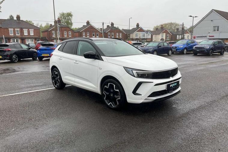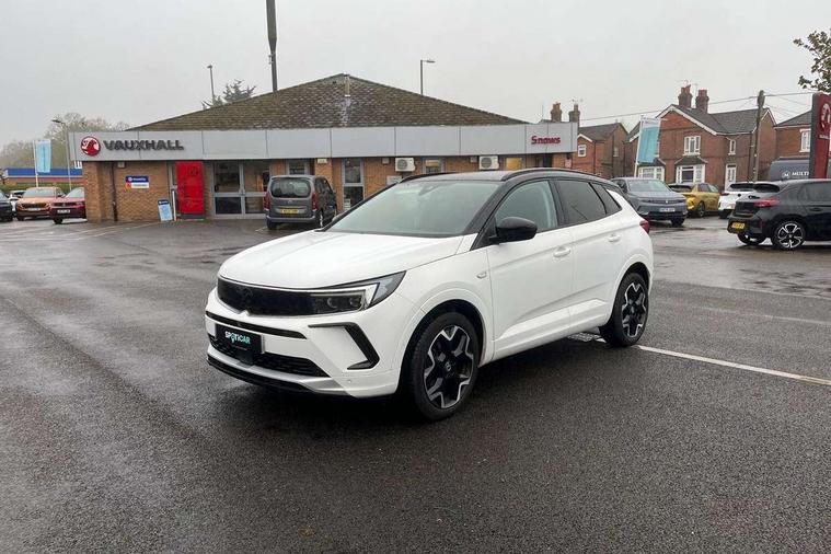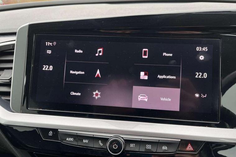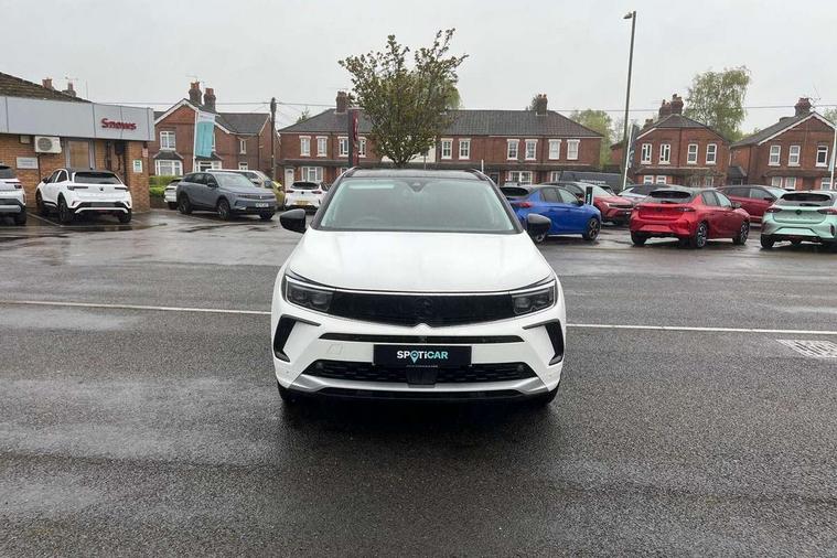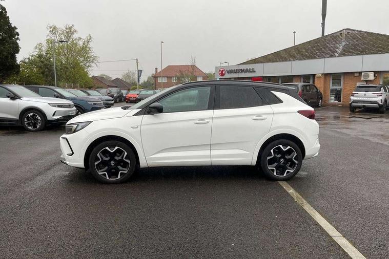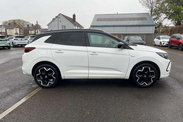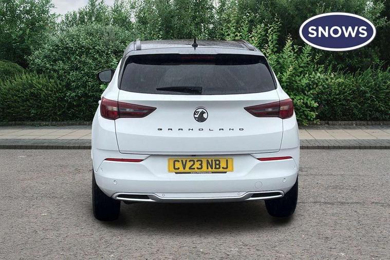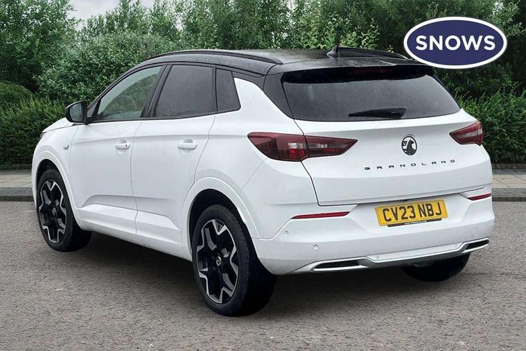12" colour digital cluster, Central facia display with digital clock, outside air temperature and audio information, Cruise control with speed limiter, Digital fuel gauge with low fuel level warning light, Digital rev counter, Digital speedometer, Digital water temperature gauge with warning light, Driver drowsiness alert system, Driver information - Total mileage, service indicator, oil life, Front and rear parking distance sensors with 360 degree rear view camera and advanced park assist, Gearshift up/down indication light, Lane departure warning system, Lane keep assist, Lights on audible warning, Multi function trip computer - Trip odometer, vehicle range, average speed and fuel economy, instantaneous fuel economy and driving time, Multimedia navi pro with 10" colour touch+ sat nav+AM/FM/DAB radio, bluetooth audio streaming/mobile phone portal, Apple carplay/Android auto, USB, Power operated tailgate with foot sensor, Side blind spot alert, Speed sensitive electric power assisted steering, Speed sign recognition, Vauxhall connect including Emergency call (SOS e-call) and Breakdown call (b-call), Wireless charger for mobile devices, Anti-roll bars, Compound crank rear suspension with coil springs and gas pressure dampers, Independent decoupled MacPherson strut front suspension with gas pressure dampers and coil springs, anti-roll bar, Six speaker - four front + two rear, Steering wheel mounted audio/phone/cruise controls, Alloy effect front and rear skid plates, Automatic lighting control, Automatically dimming anti dazzle rear view mirror, Black door mirrors, Black side window trim, Body colour door handles, Body colour lower front and rear bumpers, protective wheel arches and lower door cladding, Body colour upper front bumper, Collapsible windscreen wipers, Dark tinted rear side and tailgate windows, Door to door illumination, Electric adjustable/heated/folding door mirrors, Electrically operated front and rear windows with safety auto reverse and one touch up/down facility, Front wiper system spraying directly from wipers, Hazard warning lights, Heated rear screen with timed cut off, High beam assist, High gloss black exterior detailing, High gloss black Griffin for Vizor and tailgate with high gloss black Grandland tailgate lettering, High gloss black roof rails, High level centre rear brake light, IntelliLux adaptive LED pixel headlights and LED tail lights, Intermittent rear window wash/wipe, LED daytime running lights, LED front fog lights, Magic wash, Manual headlight beam levelling, Partial heated windscreen, Rain sensor windscreen wipers, Rear side wing doors, Rear spoiler, Reversing light, Shark fin aerial, Soundproof insulated windscreen, Two speed windscreen wipers with variable intermittent wipe, Upper and lower bumper design, Vizor front grille, Welcome lighting, 12v plug in front console and 12v plug in boot, 3 bench rear seats in 2nd row, 3 spoke flat bottom leather steering wheel with satin chrome effect bezel, 4 way electric driver lumbar support, 4 way passenger electric lumbar support, 60/40 split folding rear seat with centre rear seat armrest and load though facility, Advanced predictive logic control system using a sun sensor, Alcantara upholstery, Alloy sports pedals, Ambient centre console downlighter, Automatic air direction and fan speed with manual override, Charcoal filter, Chrome effect interior door handles, Covered storage compartment in centre console and in driver armrest, Driver's centre armrest, Drivers and front passengers seat with height, reach, tilt, backrest adjustment and seat cushion extension, Dual zone electronic climate control, Ergonomic active drivers sports style seat, Ergonomic active front passenger sports style seat, Front door pockets with 2.6 litre capacity, Front seat back storage pockets, Fully carpeted luggage area, Height adjustable headrests, Illuminated driver/passenger sunvisors with vanity mirror, Illuminated luggage area, ISOFIX on front passenger and rear outer seats, Luggage compartment cover, Reach + rake adjustable steering column, Rear centre seat head restraint, Rear door pockets with 1.8 litre capacity, Rear passenger compartment heating ducts, Rear reading lights, Two drinks holders in centre console, Winter pack - Grandland, Anti-lock braking system (ABS), Automatic emergency braking with pedestrian detection, Child proof locks on rear doors, CSC - Cornering stability control, Deactivation switch for front passenger front and side impact airbags, Deflation detection system, Driver airbag, Dual seatbelt pretensioners on front seats, EBD - Electronic brakeforce distribution, Electronic parking brake, Electronic stability program (ESP) including traction control, Front brake ventilated disc 304mm diameter, Front passenger airbag, Front seat side impact airbags, Full-size curtain airbags for driver and front passenger, Hill start assist, Hydraulic Brake Assist (HBA), Inertia reel lap and diagonal seatbelts for all seats, Load limiters on outer rear seatbelt retractors, Pretensioners on outer rear seatbelt retractors, Rear brake ventilated disc 268mm diameter, Smart seatbelt reminder for front and rear seats, Tyre pressure monitoring system, Central locking, Deadlocking system, Electronically protected audio equipment, Engine deadlock immobiliser, Keyless entry and start, Locking wheel nuts, Remote security alarm system, Black door panels with black premium leather effect inserts, Dax decor facia panel with palladium medium finish, 19" diamond cut bi-colour alloy wheel, Tyre inflation kit,