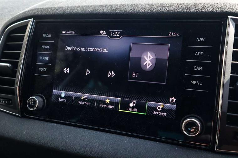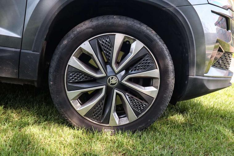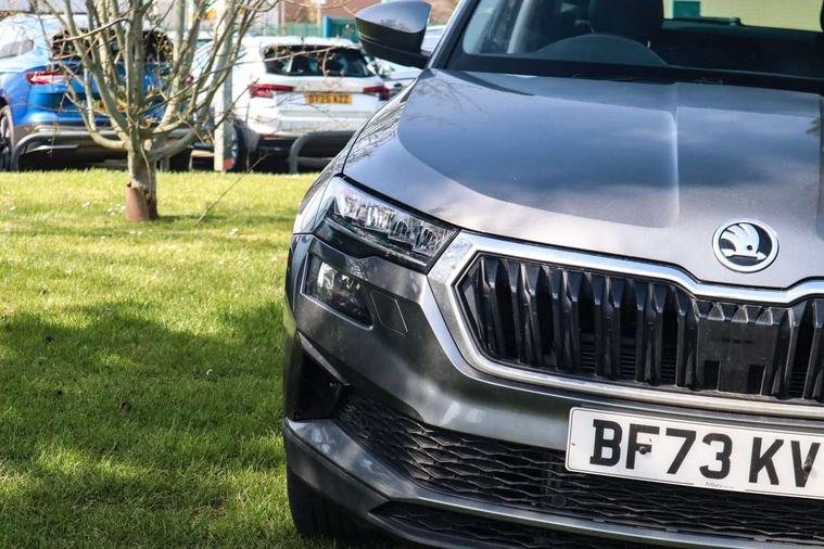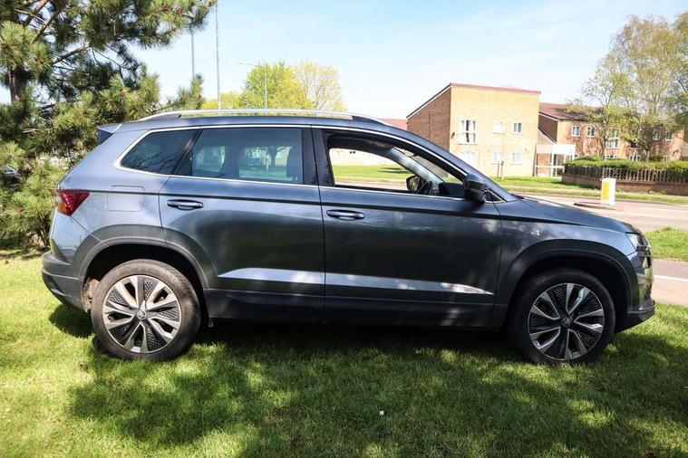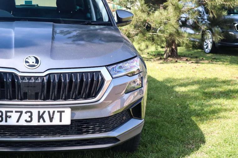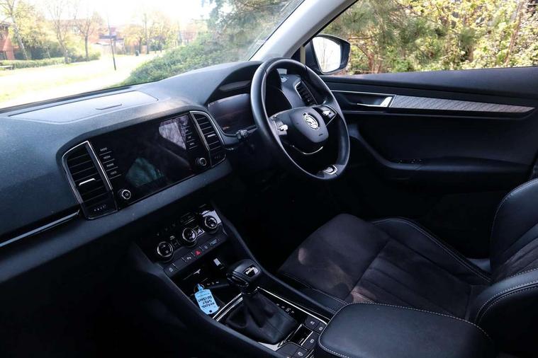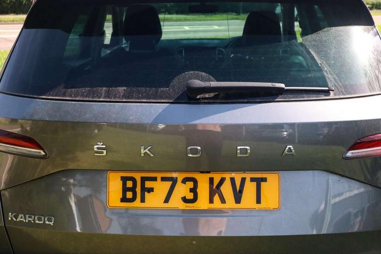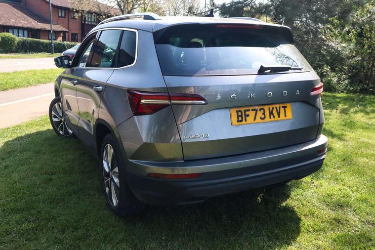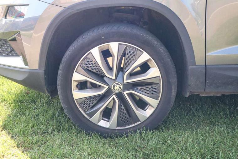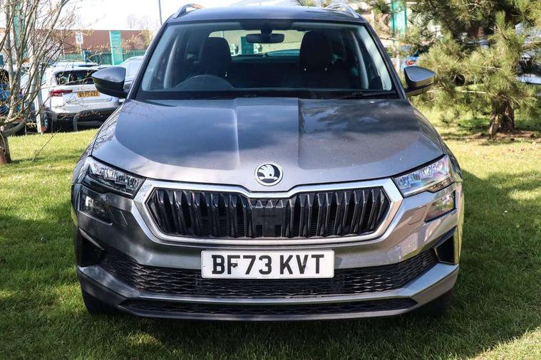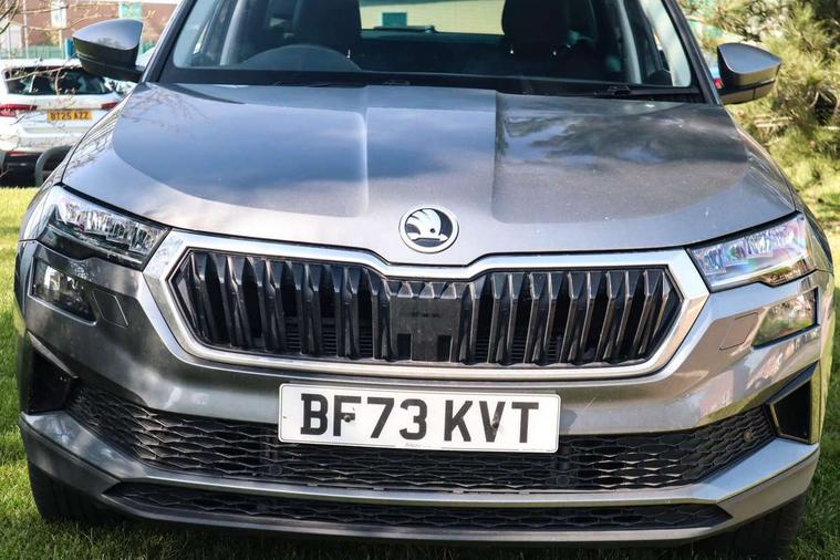 8" Digital display, Care connect, Driver fatigue sensor, Emergency services call system, Outside temperature gauge, Service interval indicator, SmartLink wireless for Apple and wired for Android, Start/stop system with regenerative braking, USB C Port x 2 in front centre console, 8 Speakers, DAB radio with Bluetooth, USB connection, Acoustic glass, Aero front windscreen wipers with intermittent function, Auto dimming rear view mirror with light and rain sensors, Black electric window control buttons, Body colour door mirrors and handles, Dynamic headlight range control with cornering light function, Electric front and rear windows with child proof lock, Heated rear windscreen, LED daytime running lights, LED rear lights with high functionality welcome effect and dynamic indicators, Light assistant (coming/leaving home/tunnel light), Plastic scuff plates, Privacy glass, Rear side wing doors, Rear spoiler, Rear window wiper with washer system and intermittent control, Safety reflectors on front doors, 1.5 litre bottle holders in driver and front passenger door panels, 12V socket in boot, 12v socket in front centre armrest with storage compartment and rear air vents, 2 spoke leather heated multifunction steering wheel with DSG paddles, 2 x Tablet holder, 3 rear height adjustable headrests, 3 seat bench in 2nd row, 4 foldable roof handles with rear coat hooks, Black floor carpet, Chrome inner door handles, Decorative door sills with KAROQ badging, Double sided boot floor, Foldable hooks in the boot, Front head restraints, Height adjustable front three point seats belts with tensioners, Height/reach adjust steering wheel, Ice scraper, Illuminated glovebox, Illuminated luggage compartment, Isofix child seat preparation for front passenger seat, Isofix child seat preparation outer rear, Manual lumbar support for front seats, Pen holder, Pollen filter, Rear boot cover, Rear reading lights, Rubbish bin door, Safety vest holder, Single front passenger seat, Storage box in upper central dashboard closed, Sunvisors with illuminated vanity mirrors, Textile floor mats, Ticket holder, VarioFlex seats with standard rear seat release, Boot pack - Karoq, Chrome roof rails + chrome pack - Karoq, Parking pack - Karoq, Automatic door unlocking in case of crash, Automatic fuel cut off in case of crash, Child locks on rear doors, Driver airbag, Electronic parking brake with auto hold function, Emergency rear braking signal, ESC including ABS, MSR, ASR, EDS, HBA, DSR, RBS, MKB and traction control, Front side airbags, Hill hold control, Knee airbags, Passenger airbag with switch-off function, Pedestrian monitor, Seatbelt reminder signalisation and pretensioner for all seats, Three point seatbelts rear, Two tone horn, Tyre pressure display, Tyre pressure monitor, Alarm with interior monitoring, back up horn and tilt sensor with safe function, Electronic engine immobiliser, Keyless entry and start/stop, Remote central locking with 2 remote folding keys, Chrome framed air vents, 18" Miran alloy wheels in black, Anti-theft wheel bolts protection, Storage on wheel cover, Tool kit,