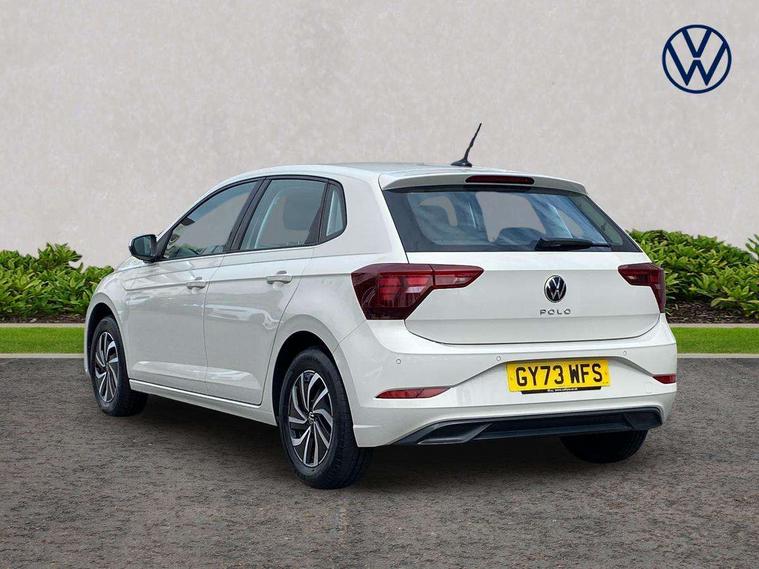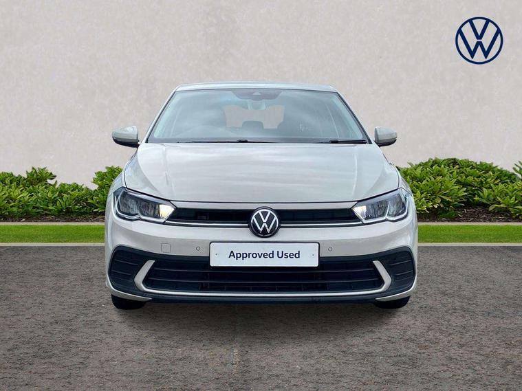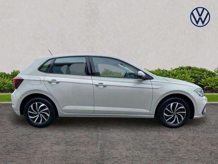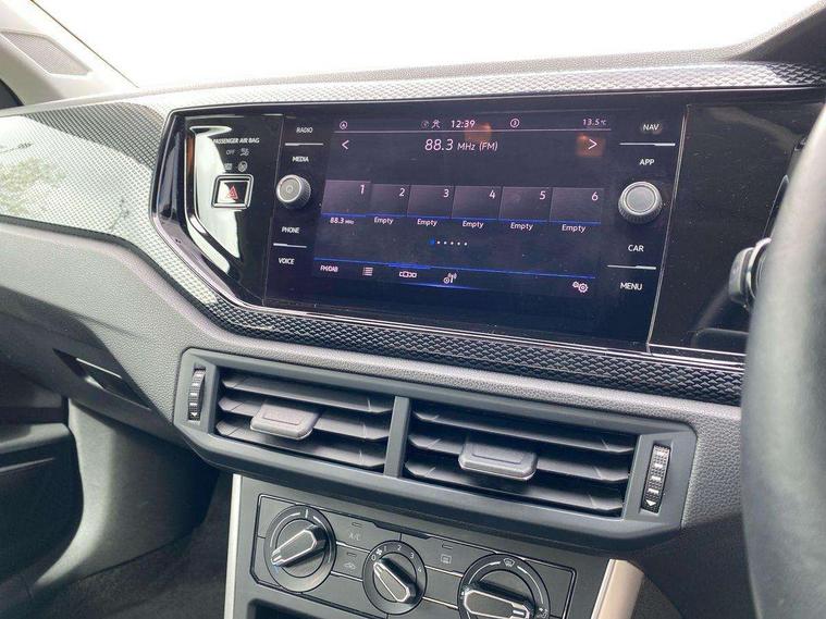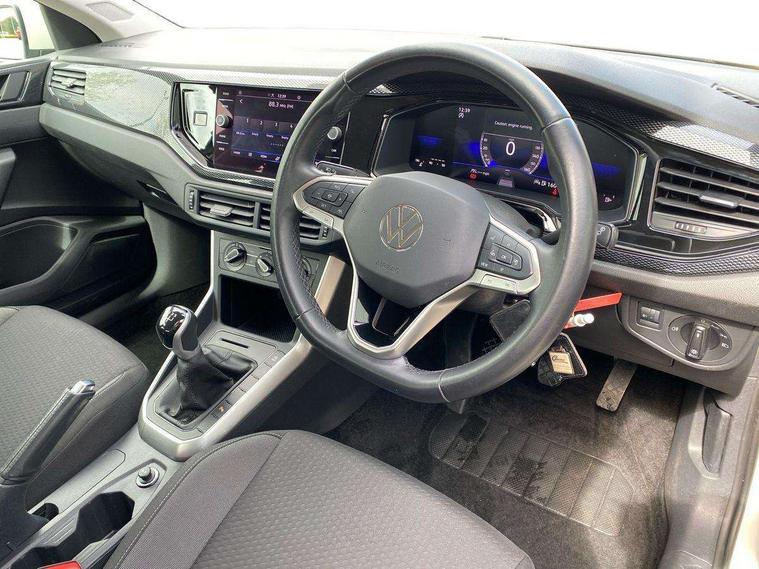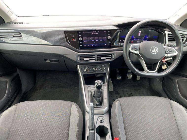 Adaptive cruise control without follow-to-stop and speed limiter, Advanced driver attention and drowsiness monitor, Bluetooth mobile phone interface, Driver alert system, Dynamic road sign display, Emergency call service, Front assist system, Power assisted speed sensitive steering, Preparation for We connect and We connect plus, Speedo and rev counter, electronic odometer, trip, service interval display and fuel gauge, Standard rear axle, Travel Assist - Lane keeping system and traffic jam assist, Travel assist including emergency assist, Trip computer, Warning signal and warning light for front and rear seatbelts not fastened, Washer fluid level indicator, Wireless app connect, Front wheel drive, Rear shock absorpion, Start-stop system with battery regeneration (recuperation - energy recovery during braking), DAB Digital radio, Diversity antenna for FM reception, Front and rear 6 speakers, Automatic dimming interior rear view mirror, Body colour bumpers, Body colour door handles, Body colour door mirrors, Electric front windows, Heat insulating darkened glass in side and rear windows, Heat insulating glass windscreen, Power folding adjustable/heated exterior mirrors and front passenger exterior mirror lowering function, Rain sensor, Rear electric windows, Rear fog light, Rear side wing doors, Rear windscreen washer and wiper with interval delay, Third brake light, 12V power socket in centre console, 2 front and 2 rear reading lights, 2 USB-C ports in the front, 2 USB-C charging sockets on the center console in the rear, 3 rear head restraints, 60/40 split folding rear seat and rear seat bench not split, Chrome plated radiator grille inserts, air vent surrounds and light switch surrounds, Door and side trim panel, Driver and front passenger seat height adjustment, Driver/passenger sunvisors with illuminated vanity mirrors, Front centre armrest, Front seat backrest storage pockets, Front standard seats, Handbrake lever handle in leather, Hartley/Thomas cloth upholstery, Headliner in recycled material, Isofix child seat preparation easy-fit (for two outer rear seats, and front passenger seat) compatible with I-size, Leather trimmed gear knob, Luggage compartment cover, Luggage compartment floor, Luggage compartment lighting, Multifunction steering wheel, Single front passenger seat, Standard pedal cluster, Light and vision pack - Polo, 3 point height adj front seatbelts + pretensioners, 3x3 point rear seatbelts, ABS, Driver and front passenger airbag with front passenger airbag deactivation, Drivers and front passengers safety optimised head restraints, ESC (Electronic stability control) + EDL (Electronic Differntial lock) and ASR (Traction control), Extended and predictive pedestrian/ cyclist protection, Front curtain and side airbags with center airbag, Front disc brakes, Hill hold control, Manual child lock in rear doors, Rear drum brakes, Single tone horn, Tyre pressure loss indicator, Alarm with interior protection, Anti-theft alarm system with interior monitoring, backup horn, and towing protection, Anti-theft wheel bolts, Electronic engine immobiliser, Lava stone black gloss/matt decorative inserts in dash and front door panels, Low rolling resistance tyres,