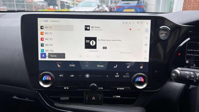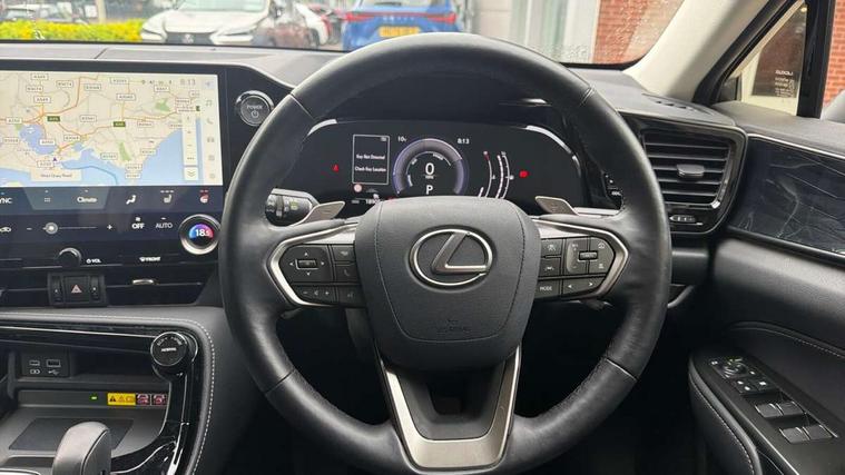 4 driving modes EV/Eco/Normal/Sport, 7" display in instrument binnacle, Bluetooth telephone connectivity, eCall emergency system, Electric speed sensitive power steering, Intelligent parking sensors - 4 front and 4 rear, Lane change flasher function, Lexus link connect - Cloud based navigation, cloud based voice assistant, always online and 9.8" VGA touchscreen, Push button starter, Reversing camera with back guidelines, Service interval indicator, Tailgate, Wireless Apple CarPlay/Android Auto, All Wheel Drive (AWD), Hybrid automatic transmission, Vehicle Dynamics Integrated Management (VDIM), Vehicle Stability Control (VSC), 10 speakers, 4 USB ports - 2 front, one USB C, 2 rear USB C, DAB Digital radio, Auto dimming interior rear view mirror, Automatic headlights, Bi LED headlights, Double hidden exhaust pipes, Front and rear one touch power windows, with anti-jam protection, Heated, auto-folding, auto-dimming outside mirrors with reverse tilt function and turn indicators, LED brake lights and rear lights with emergency brake signal, LED daytime running lights, LED Indicators, Light green UV acoustic rear doors & rear glass, Power back door system, Rain sensor windscreen wipers, Rear side wing doors, Rear wiper, Roof rails, 12V accessory port centre console and luggage compartment, 2 cupholders in front centre console, 2 x fixed shopping bag hooks in boot, 2 x sun visors with vanity mirror and lamp, 3 seat bench in 2nd row, 4 x tie down hooks in the boot, 6 tie down hooks in boot, 6 way manually adjustable front seats, 60/40 split folding rear seat, Adjustable rear seat backrest, Card holder installed in driver and passengers sun visors, Centre armrest with storage box, Dual climate control air conditioning system, Front and rear head restraints, Front and rear textile carpet mats, Front passenger seat, Heated front seats, Leather gear lever, LED interior illumination, Power adjustable leather steering wheel with paddle shifts, Rear centre armrest with 2 cupholders, Tahara leather upholstery, Whiplash Injury Lessening (WIL) feature (active headrest) for seats, 2 x Isofix child rear seat restraints, 3 point ELR front seatbelts with pretensioners, 3x3 point rear seat belts, ABS, Adjustable seat belt anchor points, Driver and front passenger 2 stage airbag, Driver/front passenger side airbags, Drivers knee airbag, E-Latch electric door release, EBD + Brake Assist, ECB (Electronically Controlled Brake System), Electronic parking brake, Front and rear curtain shield airbags, Front center airbag, Front passenger seat cushion airbag, Hill assist control, Lexus safety system - dynamic radar cruise control, pre collision system day and night, lane tracing assist, road sign, automatic high beam, OTA, Manual rear child locks, Passenger airbag cut-off device, Traction control, Tyre pressure warning, Anti-theft system with alarm, intrusion sensor, glass breakage sensor, tilt sensor and engine immobiliser, Locking wheel nuts, Speed sensitive auto door locking, Ultra Wide Band (UWB) Anti-theft system, VIN Window etching, Black microdot inlay, Tyre repair kit,
