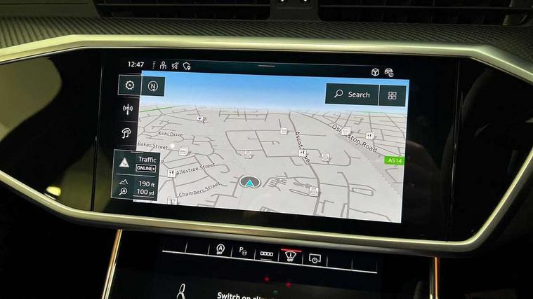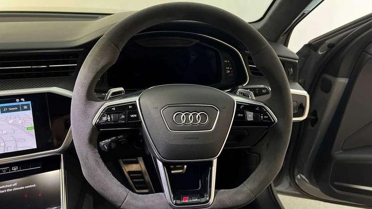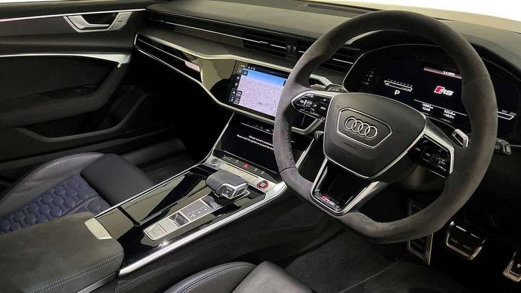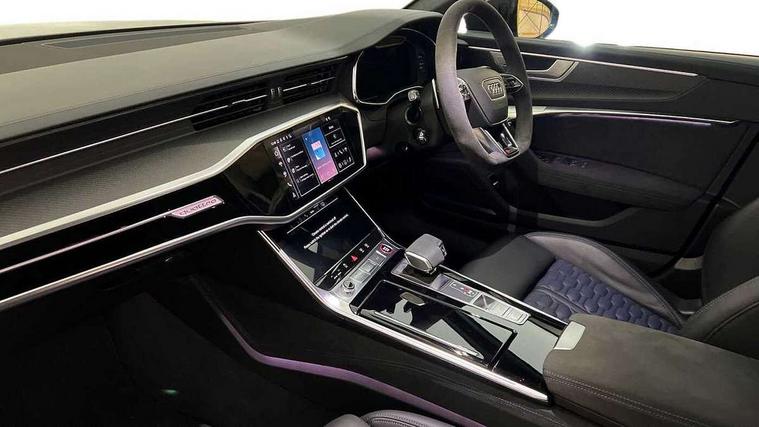 Audi connect safety and service (e-call), Audi connect with Amazon Alexa Integration, Audi drive select with 2 configurable RS modes, Audi smartphone interface with app store includes wireless Apple carplay, Android auto and Amazon alexa integration, Audi virtual cockpit plus with RS specific design and 12.3" display with additional graphic display options, Automatic start/stop system, Bluetooth interface, Dynamic all wheel steering, Head up Display, Lane departure warning system, MMI navigation with MMI touch + twin touch screens 10.1" and 8.6" with haptic and acoustic feedback, Night vision assistant, Operating buttons in black, glass look with haptic feedback including extended aluminium look, Power door closure, Power operated tailgate, Service interval indicator, Surround view camera system, Voice control system, 48V Mild hybrid technology, 73 litre fuel tank, Increased top speed to 174mph, Quattro sports differential, RS Sports suspension plus with dynamic ride control, 2 USB-C ports with charging functionality in the rear, Audi music interface, Bang & Olufsen 3D Premium Sound System, DAB Digital radio, 3rd brake light, Adaptive windscreen wipers with integrated washer jets, Black window trims, Electric front/rear windows, Electrically adjustable, heated and folding door mirrors with integrated LED indicators and kerb view function for passenger side, Frameless auto dimming interior rear view mirror, HD Matrix LED headlights with Audi laser light with dynamic light design and dynamic turn signal, Headlight washers, Heat insulating darkened glass in side and rear windows, LED daytime running lights, LED rear combination lamps with dynamic light design and dynamic turn signal, Panoramic glass sunroof, Privacy glass with rear/side windows and acoustic glazing side windows, Radiator grille in honeycomb structure, large front air inlets and rear diffuser in gloss black, Rain and light sensors, Rear side wing doors, Rear wiper, RS front bumper with air inlets on both side, RS rear spoiler in body colour, RS sports exhaust system with high gloss black oval tailpipe trims, 3 seat bench in 2nd row, 4 way electric lumbar support for driver and front passenger, 4 zone deluxe automatic climate control, Audi phone box light, Electric steering wheel adjustment, Electrically adjustable front seats with driver memory, Entry LED with RS Performance projection (Audi Beam) in front and rear, Front and rear headrests, Front centre armrest, Front seat ventilation, Heated front and rear seats, Illuminated front and rear door sill trims with aluminium inlays and RS6 logo, ISOFIX and Top Tether child seat mounting for the outer rear seats, ISOFIX child seat mounting and Top Tether with front passenger airbag deactivation, RS sports seat plus, Single passenger seat, Stainless steel pedals and foot rest, Air quality pack - RS6, Ambient lighting pack plus - RS6, City assist pack - RS6 Performance/carbon/vorsprung, Park assist pack with park assist plus - RS6, Storage pack - RS6, Tour pack - RS6 Performance/carbon/vorsprung, 3 point rear seatbelts, Airbags - Front side, front and rear including head, Direct tyre pressure monitoring system, EBD - Electronic brakeforce distribution, Electromechanical parking brake, Electronic Stability Control (ESC) including ABS, ASR and EDL, Extended pedestrian protection measures, Manual child lock in rear doors, Rear side airbags, Warning triangle and first aid kit, Anti theft alarm with tow away protection, Immobiliser, Keyless Go, Remote central locking, Performance tyres, Tyre repair kit,