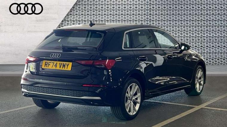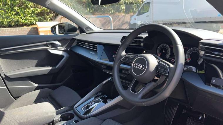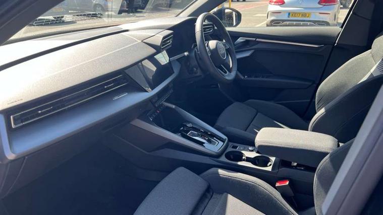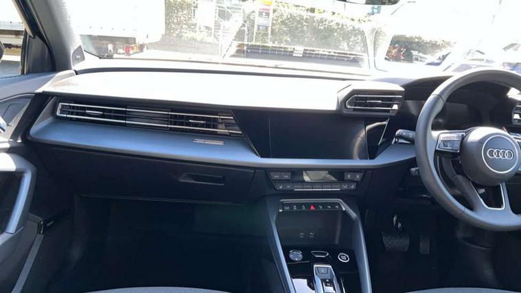 Adjustable speed limiter, Audi drive select, Audi smartphone interface with app store includes wireless Apple carplay, Android auto and Amazon alexa integration, Audi virtual cockpit plus - 12.3" full HD resolution dynamic digital instrument cluster, Automatic start/stop system with recuperation, Bluetooth interface, Camera based traffic sign recognition, Collision avoidance assistant, Cruise control, Distraction and Fatigue warning, e-Call (emergency call), Electromechanical power speed sensitive steering, Lane departure warning system, MMI Navigation Plus with high resolution 10.1" colour touch screen display, Park Assist with parking system Plus, Service indicator, Tailgate, Trip computer, Voice control system with natural language interaction, Standard suspension, Audi Phonebox light with wireless charging, Audi sound system - 10 loudspeakers including centre loudspeaker and subwoofer, DAB Digital radio, USB ports with charging function in the rear, 3rd brake light, Acoustic glass windscreen, Aluminium window trim, Auto dimming frameless rear view mirror, Body colour exterior mirrors, Body colour roof spoiler, Electrically adjustable/heated/folding/auto dimming door mirrors with integrated LED indications + kerb view function for passenger side, Exterior model badging, Front electric windows, Front radiator grill in high gloss dark chrome, Front side air inlets in grained matt black with silver frame, Heat insulating glass windscreen, LED daytime running lights, LED headlights and halogen rear lights, Light and rain sensors, Rear diffuser and grill in grained matt black with silver frame, Rear electric windows, Rear side wing doors, Rear window, rear door windows and rear side windows in clear glass, Rear wiper, 12V socket and storage compartment in front centre console, 3 seat bench in 2nd row, 3 spoke leather multifunction steering wheel with gear shift paddles, 3-zone deluxe automatic air conditioning, 4 way electrically adjustable lumbar support for driver and front passenger, 60/40 split folding rear seat bench, Front and rear headrests, Front centre armrest, Front door sill trims with aluminium inlay, Front/rear floor mats, Heated front seats, Height and reach adjustable steering wheel, Manual boot compartment lid, Manually adjustable front seats, Routine cloth upholstery with front sports seats, Seat side bolsters, Single front passenger seat, Steel grey cloth headlining, Aluminium interior elements pack - A3 Sportback, LED interior lighting pack -A3, 3x3 point rear seat belts, Driver and front passenger airbag with passenger airbag deactivation, Electronic Stabilisation Control (ESC) including ABS, ASR and EDL, First aid kit with warning triangle and 2 safety vests, Front side airbags with head airbags and interaction airbag, Hill hold assist, Pre-sense front with pedestrian and cyclist detection, Seatbelt monitoring, Tyre pressure loss indicator, Anti theft alarm, Anti-theft wheel bolts, Electronically operated child locks, Immobiliser, Remote central locking with safelock, Inlays in volcano grey fine paint finish,