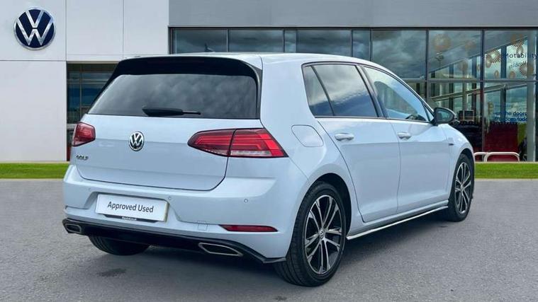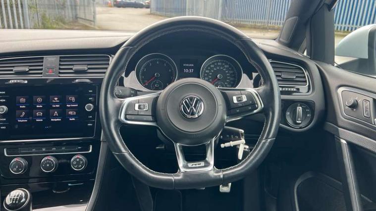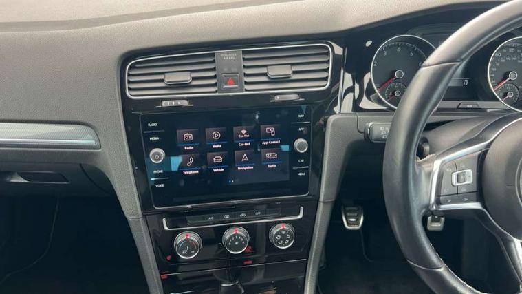 'Lights On' Reminder warning buzzer, 8" touch screen, Adaptive Cruise Control with pedestrian detection and speed limiter, App-Connect, Bluetooth hands free telephone connection, Brake pad wear indicator warning light, Driver alert system, Driver profile selection, Exterior temperature gauge, Front assistant collision mitigation, Instrument cluster in white, Multifunction computer, PAS - speed related, Rev counter, Trip and service interval display, Ultrasonic front and rear optical and audible parking sensors, Warning buzzer and light for front seatbelts unfastened, Lowered sports suspension, XDS electronic differential lock, CD/MP3/WMA, USB and SD card reader, aux-in, Composition media system, DAB Digital radio, Auto dimming rear view mirror, Automatic coming/leaving home lighting function, Automatic headlights, Black front air intake and radiator grille with chrome insert, Black sports rear diffuser, Body colour bumpers, Body colour door handles, Body colour door mirrors, Body colour rear roof spoiler, Chrome grille surround, Chrome trapezoidal exhaust, Electric front windows, Electric rear windows, Electrically adjustable and heated door mirrors, Heat insulated tinted glass 65% light absorbing from B pillar back, Heated rear windscreen, LED daytime running lights, LED rear lights, Rain sensor, Rear windscreen washer and wiper with interval delay, Stainless steel door sill protection, 12V socket in luggage compartment, 3 rear headrests, 3 spoke steering wheel, 60/40 split folding rear seat, Bag hook in luggage compartment, Black headlining, Boot lashing points, Cooled glovebox, Courtesy light delay, Cover for storage compartment in centre, Dust/pollen filter, Front + rear carpet mats, Front centre armrest with storage box and rear air vents, Front passenger seat height adjust, Front reading lights, Front seat back storage pockets, Grab handles, Height/reach adjust steering wheel, Illuminated vanity mirrors, Isofix preparation for 2 rear child seats, Leather gear knob and handbrake grip, Load through provision with rear centre armrest and cupholders x2, Luggage compartment cover, Luggage compartment lighting, Multifunction leather steering wheel with grey stitching leather trimmed gear knob including paddle shift, Overhead storage box, Stainless steel pedals, Storage box in luggage compartment, Storage compartments in doors, Sun visors, Variable boot floor, height adjustable and removable, Ambient lighting pack - Golf, Mirror pack - Golf, 3 point height adj front seatbelts + pretensioners, 3 rear 3 point seatbelts, ABS, Automatic post collision braking, Child locks on rear doors, Driver/Front Passenger airbags, Driver/Passenger whiplash optimised head restraints, Drivers knee airbag, Electronic parking brake with auto hold, ESP with EDL + ASR, Front and rear curtain airbags, Front passenger airbag deactivation, Front side airbags, Pre crash system, Tyre pressure monitor, Alarm with interior protection, Electronic engine immobiliser, Remote central locking with 2 remote folding keys, Chrome-plated light switch surround, Dark Diamond decorative inserts in dash and door panels, Piano black centre console with aluminium inlay, Steel space saver spare wheel,