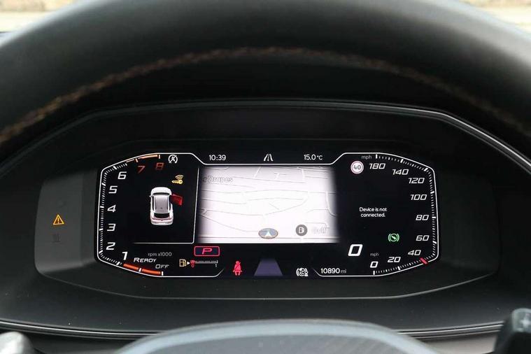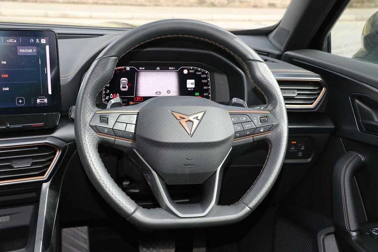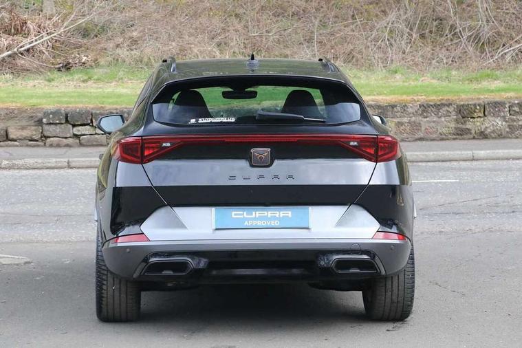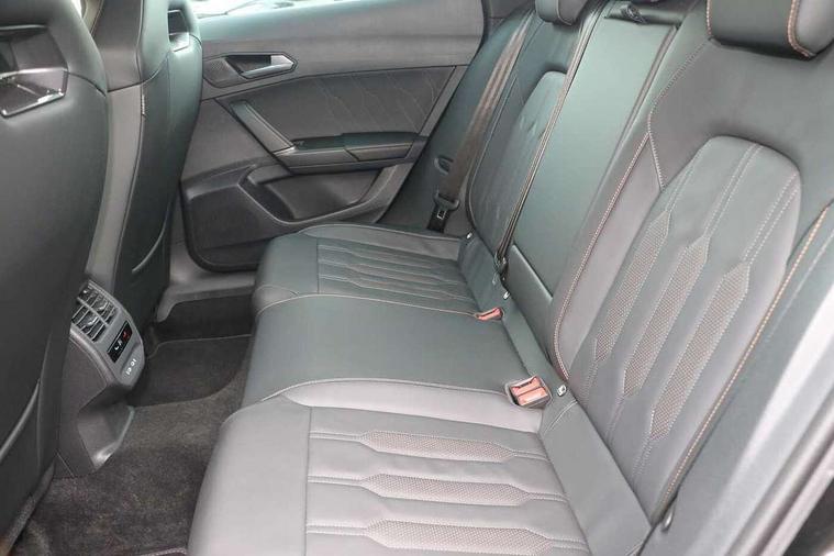 Digital cockpit and configurable dashboard, Driver alert system, Driving profile selection, Forward collision warning with automatic braking, Lane assist, Navigation system with 12'' Touchscreen Display, Park assist (inc front/rear parking sensors), PAS, Predictive adaptive cruise control with speed limiter, Rear view camera, RPM, trip computer, outside temp gauge, instrument light brightness, low fuel warning light, lights on reminder, gearshift indicator, Service interval indicator, Start/stop system with regenerative braking, Voice control system, Wireless apple carplay, Wireless phone charger, Electronic locking differential and dynamic traction support, Standard suspension, 2 front and 2 rear USB type C sockets, Auxiliary input socket, DAB radio, Auto dimming rear view mirror, Body colour door handles, Body coloured bumpers, Dark grey wing mirror, Daytime running light with automatic headlight control and coming home feature, Dynamic headlight range control, Electric front/rear windows, Electrically adjustable heated and folding door mirrors with memory function, Front fog lamps with cornering function, Gloss black roof rails and window surrounds, LED Headlights, LED Taillights with dynamic indicator, Rain sensing wipers, Rear diffuser with black simulated exhaust pipes, Rear side wing doors, Rear wash/wipe, Third brake light, Tinted rear windows, Welcome lights, 12v power supply in centre console, 12V socket, 12v socket in loadspace, 2 front and 2 rear reading lights, 230V socket, 3 seat bench in 2nd row, 60/40 split rear bench seat with armrest and mechanical seat release, Black headlining, Dust/pollen filter, Front and rear head restraints, Front centre armrest, Height/reach adjust steering wheel, Illuminated interior front door sills, Illuminated sunvisor with mirror, Isofix, Leather multi function heated steering wheel with gear shift paddles, Luggage tie-down hooks, Single front passenger seat, Three zone climate control with control panel in rear, Variable luggage/load compartment floor, Wraparound lighting, Genuine Nappa leather Pack - Cupra, 3 point seatbelts on all rear seats, ABS, Brake control system - ESC and brake booster, Child proof door locks, Driver and front passenger airbags with front passenger airbag de-activation, Electronic parking brake, Front and rear disc brakes, Front side curtain airbags, Hill hold control, Public e-call, Seat belt reminder for front and rear seats, Tyre pressure monitoring system, Anti theft alarm system, Keyless entry and start system (KESSY), Locking wheel bolts, Copper and aluminium interior detailing, 19" 'Exclusive' machined sport matte black and silver alloy wheels,