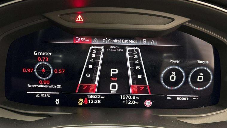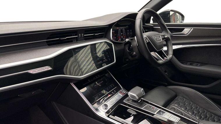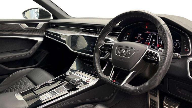 360 degree parking camera, Audi connect safety and service (e-call), Audi connect with Amazon Alexa Integration, Audi drive select, Audi virtual cockpit plus with RS specific design and 12.3" display with additional graphic display options, Automatic start/stop system, Bluetooth interface, Dynamic all wheel steering, Head up Display, Lane departure warning system, MMI navigation with MMI touch + twin touch screens 10.1" and 8.6" with haptic and acoustic feedback, Operating buttons in black, glass look with haptic feedback including extended aluminium look, Power door closure, Power latching doors, Power operated tailgate, Service interval indicator, Smartphone interface includes wireless Apple carplay/Android Auto, Voice control system, 73 litre fuel tank, Increased top speed to 174mph, Quattro sports differential, RS Sports suspension plus with dynamic ride control, 2 USB-C ports with charging functionality in the rear, Audi music interface, Bang & Olufsen 3D Premium Sound System, DAB Digital radio, 3rd brake light, Adaptive windscreen wipers with integrated washer jets, Black mirror caps, Body colour rear roof spoiler, Electric front/rear windows, Electric panoramic opening glass sunroof, Electrically folding auto dimming/adjustable/heated door mirrors with LED side indicators and kerb view function for passenger side, Frameless auto dimming interior rear view mirror, HD Matrix LED headlights with Audi laser light with dynamic light design and dynamic turn signal, Headlight washers, Heat insulating darkened glass in side and rear windows, Illuminated door sill trims with RS lettering, LED daytime running lights, LED rear combination lamps with dynamic light design and dynamic turn signal, Privacy glass with rear/side windows and acoustic glazing side windows, Radiator grille in honeycomb structure, large front air inlets and rear diffuser in gloss black, Rain and light sensors, Rear side wing doors, Rear sports exhaust system with gloss black oval tailpipe, Rear wiper, RS front bumper with air inlets on both side, Wheel arch extensions, 2 seat bench in 2nd row, 3 spoke RS flat bottomed leather multifunction steering wheel with shift paddles, heated funtion, contrast stitching, RS mode button and RS emblem, 4 way electric lumbar support for driver and front passenger, 4 zone deluxe automatic climate control, Aluminiium gear shift paddles, Audi Sport logo projection (Audi Beam) in front and rear, Black cloth headlining, Electric steering wheel adjustment, Electrically adjustable front seats with driver memory, Front and rear headrests, Front centre armrest, Front seat ventilation, Front/rear floor mats, Heated front and rear seats, ISOFIX child seat mounting and Top Tether with front passenger airbag deactivation, RS Front sports seats, Single passenger seat, Stainless steel pedals and foot rest, Valcona leather upholstery with perforated honeycomb and RS lettering, Air quality pack - RS6, City assist pack - RS6, Extended LED interior multi coloured lighting pack - RS6, Gloss black styling pack - RS6, Parking assistance plus pack - RS6, Storage pack - RS6, Tour pack - RS6, 2 x 3-point rear seatbelts, Airbags - Front side, front and rear including head, Audi pre-sense front, Direct tyre pressure monitoring system, EBD - Electronic brakeforce distribution, Electromechanical parking brake, Electronic Stability Control (ESC) including ABS, ASR and EDL, Extended pedestrian protection measures, Manual child lock in rear doors, Warning triangle and first aid kit, Advanced key, Anti theft alarm with tow away protection, Anti-theft wheel bolts and wheel loosening detection, Immobiliser, Keyless Go, Remote central locking, 22" Titanium matt gloss turned finish alloy wheels, Tyre repair kit,