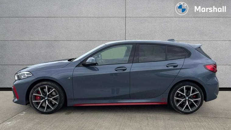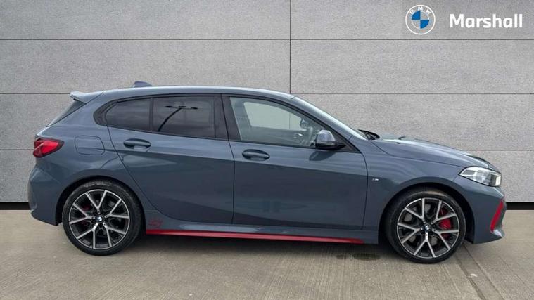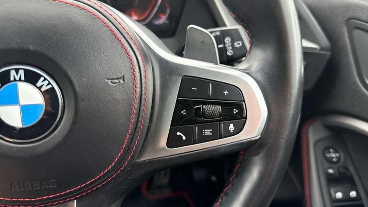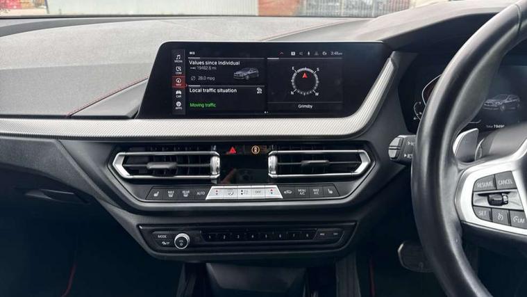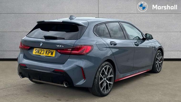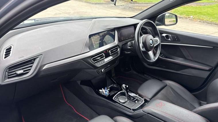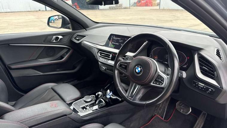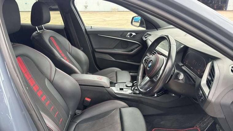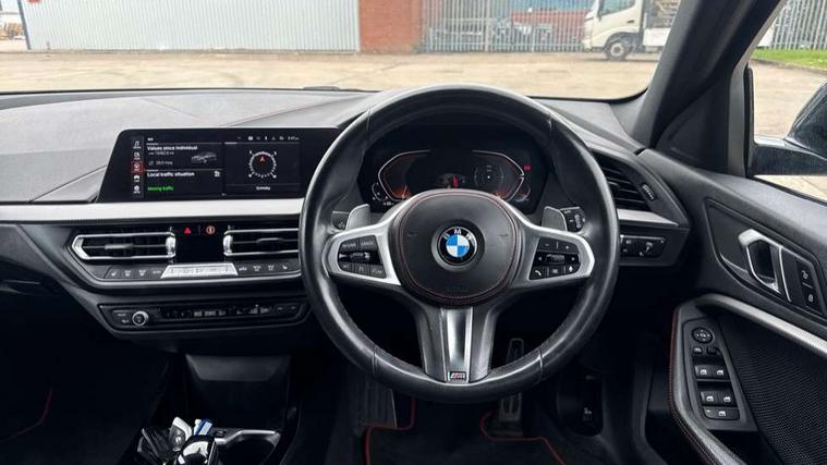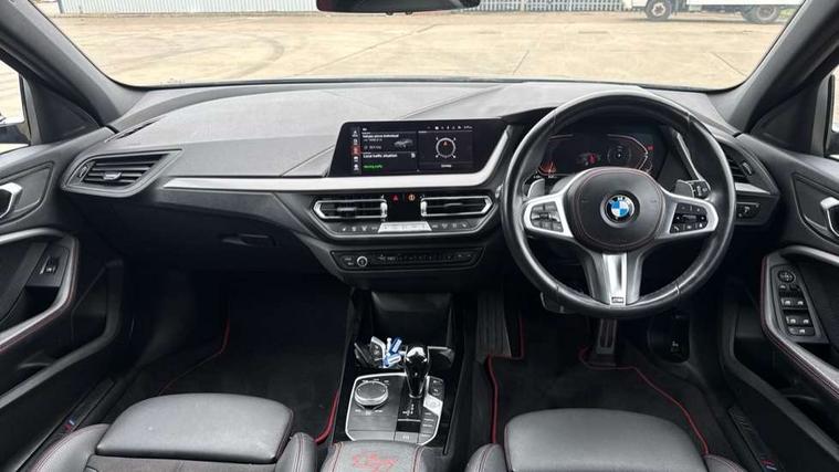 Active guard plus, Attentiveness assist, BMW ConnectedDrive online services, BMW Teleservices, Check Control warning system for monitoring of lights and door/luggage compartment open warning, Cruise control with speed limiter, Eco pro mode, Electric power steering with Servotronic steering optimised at all speed ranges, Front axle single joint with specific axle kinematics to minimise drive influences on steering + provide increased rigidity agile driving behaviour, Integrated owners handbook, Lane departure warning system, Oil sensor for level and grade, On board computer, Optimum shift indicator, Personal Profile, Pull away assistant, Rigidly mounted rear subframe - Multi link construction with separate spring / damper configuration and excellent driving characteristics, Speed limit Info including no-overtaking indicator, Aluminium lightweight construction, Anti roll bar front and rear, Balancer shaft, Double VANOS twin scroll turbocharging system, Drive Performance Control, Eight speed sport automatic transmission with gearshift paddle switches, Electronic differential lock, High precision injection, Larger fuel tank capacity (50 litres), M sport suspension with M128i xDrive specific settings, Petrol Particulate Filter, Twin tube gas filled shock absorbers with degressive characteristic curve, VALVETRONIC engine management, DAB Digital radio, Auto dimming rear view mirror, Automatic headlight beam throw control, Automatic windscreen wipers and automatic headlight, Black chrome tailpipe finishers, BMW individual high gloss shadow line with extended content, Body colour door handles, Body colour mirror caps, Body colour roof trims, Chrome 'M' logo side designation, Chrome kidney grille frame with Satin Aluminium struts, Direction indicator side lights in exterior mirrors, Electrically adjustable exterior mirror with mirror adjustment switch on drivers armrest and aspheric on driver side, convex on passenger side, Fading support, Folding side mirrors with auto dimming/folding wing mirrors with auto dimming, Follow me home headlights, Front and rear bumper system with replaceable deformation elements, Front and rear electric windows with open and close fingertip control, anti trap facility and comfort closing, Front door sill finishers in black plastic with M designation in metallic look, Green tinted heat protection glazing, High gloss shadowline window frame, Recess cover mirror frames and B/C pillar embelisher trim, High level third brake light, Integrated front windscreen with washer jets, Kidney frame and struts in high gloss black extended, LED daytime running lights, LED eyebrow turn indicators, Lightweight engineering, Matt black air guide grilles, Matt black wheel arch trim, Model designation on electric bootlid, Nearside reverse light in rear light cluster, Preparation for high beam assistant, Rear fog lights, Rear side wing doors, Rear window wiper, Shark fin antenna, Trailer stabilisation logic, Visible VIN plate, Welcome lighting, 12V power socket in front centre console with blanking plug, 3 rear seat head restraints, 3 seat bench in 2nd row, Anthracite headlining, Black boot net with lashing eyes, Cargo function on 2nd seat row, Child seat ISOFIX attachment for two outer rear seats and front passenger seat with anchorage points, Conditioned based service, Driver and front passenger backrest net on rear, Driver and front passenger seat heating, Driver side folding compartment in instrument panel, Folding rear clothes hook, Four grab handles integrated in roof lining, Front and rear door pockets with bottle holders, Front and rear side armrest integrated into door trim, Front armrest, Front sports seats, Glove compartment, Height adjustable front head restraints, Luggage compartment for bag hooks on left and right, foldable luggage compartment liner and four lashing eyelets, Manual adjust steering wheel, Multi-function controls for steering wheel, Single front passenger seat, Storage compartment in centre console, Storage compartment in luggage compartment, Stowage of the parcel shelf in luggage compartment trim, Sun visors with vanity mirrors and insert tab, Three spoke M sport design multi function leather steering wheel in unique red stitching, Two front centre console cupholders, Two zone automatic air conditioning, Type C two USB ports in rear centre console, Additional interior lighting pack - 1 Series, BMW live cockpit professional pack- 1 Series, Connected pack professional - 1 Series, Interior lights pack - 1 Series, M Sport exterior styling aerodynamics pack - 1 Series, 2 tone horn, 3 point seatbelts on all seats, front pyrotechnic belt tensioners, stopper and belt force limiters, rear coded belt buckles, Airbags - Front driver/passenger, front and rear curtain head protection, front side, manual deactivation of front passenger airbag, Anti lock braking system (ABS) with brake assist, BMW emergency call, Brake drying, Braking readiness, Child proof locking system in rear door, City braking function, Comfort modes, Cornering brake control, Crash sensor activating of airbags, Unlocking doors, hazard warning lights, interior light, safety battery terminal, Driver and front passenger seat belt security check, Dynamic stability control + (DSC+), Dynamic Traction Control - DTC, Electrically operated hand brake including automatic hold function, Front and rear disc brakes, M Sport brakes with red calipers, M Sport seatbelts, Seatbelt warning, Side impact protection, Tyre pressure monitoring system, Warning triangle and first aid kit, Central locking switch for all doors, fuel filler cap and luggage compartment, Deadlocking function system to all doors, Drive away locking system on all doors and luggage compartment with de-activated in iDrive settings, Locking wheel bolts, Remote control with integrated key with High-gloss Black inlay and M designation and 1 button for open/ close lock, window, open luggage compartment, Start/stop button illuminated in centre console with k