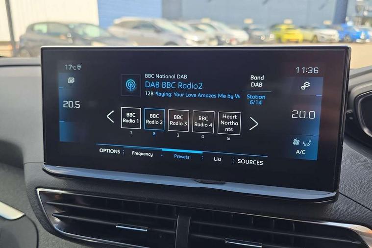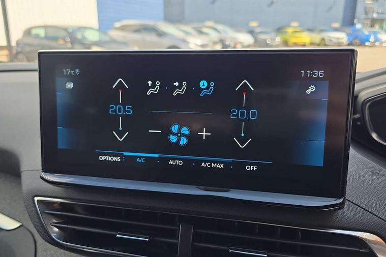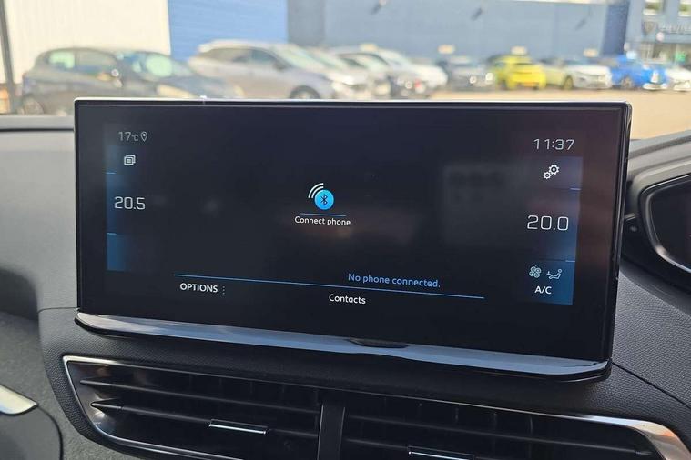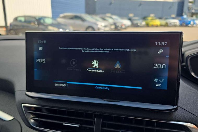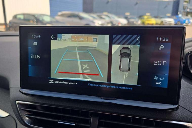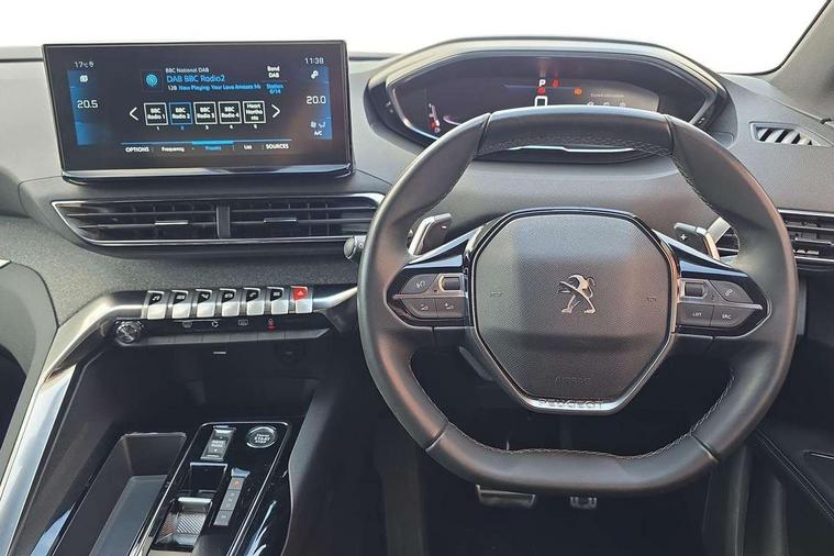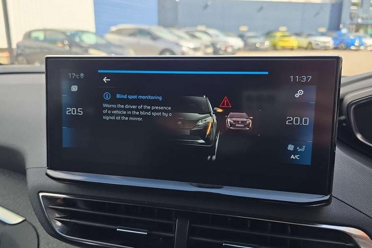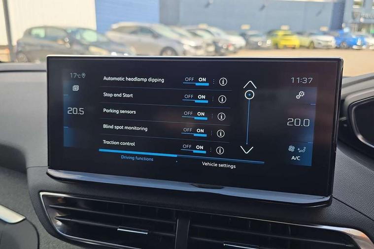 3D connected navigation with 10" HD touchscreen + voice recognition system, Apple car play and Android auto, Bluetooth telephone facility, Drive modes select (Eco, normal and sport), Driving Time Warning (DAA1), Emergency services call system, Extended traffic sign recognition, Exterior temperature indicator with ice warning, Front and rear parking sensors, Lane departure warning system, Mirror screen with mirror link, apple carplay and android auto, Multi function trip computer, Peugeot i-cockpit with compact multi-function sports steering wheel, PEUGEOT i-Cockpit with configurable 12.3" Head-up digital instrument panel, Speed limit recognition and recommendation, Dynamic stability control and electronic anti-skid system, Stop/start function, 6 speakers radio with mp3 compatible, DAB Digital radio, USB socket, Aluminium front door sills, Aluminium longitudinal roof bars, Automatic hazard light activation upon heavy brake application, Automatic triggered rear windscreen wiper in reverse gear, Black diamond roof, Black rubber side window trim, Black with chrome detailed front wing trim, Body colour door handles, Body colour rear roof spoiler with stainless steel edging trim, Body protectors (bottom of front and rear bumpers + wheel arches + protection at bottom of doors) in black, Chrome frameless 'Classic' grille, Chrome rear bumper facia, Dark tinted rear side windows + tailgate window, Diamond Black door mirror shells, Door mirror mounted LED courtesy floor lighting, Eco LED headlights, Electric folding door mirrors with exterior courtesy LED lighting, Electric operated/heated door mirrors, Front and rear door and sill protectors with polished stainless steel insert, Front bumper lower trim in Silver, Front windscreen wiper with magic wash cleaning system, Gloss black B and C pillar and aerodynamic deflector trim, Gloss black front bumper air scoops, Gloss black rear cluster connecting strip, Gloss black windscreen trim, Headlights left on audible warning, Heated rear windscreen with integrated antenna, LED daytime running lights, LED front indicator, LED rear number plate lighting, LED side indicator lights integrated into door mirrors, LED third brake light, One touch electric front/rear windows with pinch protection, Rear LED Peugeot signature 'Claw Effect' lights, Rear side wing doors, Stainless steel door sill scuff plates, Stainless steel roof arches, 1/3 to 2/3 split folding rear seats, 12V Sockets in dashboard, rear cabin and load area, 2 cupholders in front centre console, 2 cupholders in rear armrest, 2 x Rear reading spotlights, 2x Rear coat hooks, 3x Isofix child seat fittings in the front passenger and outer rear seats, 4 Grab handles retractable and damped, Aluminium pedals, Blue ambient lighting for connecting zone, Blue ambient lighting to front door panels, Blue ambient lighting to headup instrument panel, Brumeo fabric trimmed door armrests, Centre front armrest with butterfly wing opening and illuminated storage compartment, Driver seat lumbar adjustment, Driver seat manual adjustment (longitudinal and back rest angle), Dual zone automatic climate control, e-Toggle compact gear selector, Electric power steering with reach and rake adjustable steering column, Flocked glovebox interior, Foldable front passenger seat with picnic table, Footwell illumination, Front interior light with 2 reading spotlights and rear interior light with timer, Front passenger seat manual adjustment (longitudinal and back rest angle), Front seat back map pockets, Gear shift indicator, Height adjustable front seats, Illuminated glovebox, Individual left and right controls in boot for seat folding, Leather steering wheel with detail stitch, LED interior lighting in storage spaces and load area, LED roof interior lighting, Rear bench seat with central armrest and ski hatch, Rear centre console ventilation system, Roof lining - Mistral black, Satin chrome dashboard trim, Satin chrome digital instrument panel and touchscreen trim, Satin chrome front door panel recess trim, Satin chrome interior door handles, Satin chrome scorpion's tail and toggle switch trim, Seatbelt not fastened audible and visual alert for front seats, Seatbelt unfastened on the move audible and visual alert for front and rear seats, Sunvisors with illuminated vanity mirrors, Two position boot floor, Safety Plus Pack - 3008, Visibility pack - 3008, 3x Rear three-point retractable seatbelts with force limiters in the outer rear seats, ABS (Anti-lock Braking System) with EBD (Electronic Brakeforce Distribution) and EBA (Emergency Braking Assistance), Adaptive driver and front passenger airbags with passenger airbag deactivation function, Driver and front passenger side airbags, Electric child locking functionality on rear windows and doors, Electric parking brake, Front and rear curtain airbags, Front optimised safety headrests and 3 x rear retractable headrests with height adjustable, Front three point retractable seatbelts with pre tensioners and force limiters, Front ventilated disc brakes and rear disc brakes, Hill start assist, Two tone horn, Automatic door locking when moving off, Electronic immobiliser, key operated exterior door lock from the left hand door, Perimetric and volumetric alarm with lift and tilt sensor, Peugeot Open and Go System, Remote control central locking with two plip keys, Brumeo fabric Dashboard, front and rear door panel finish, Michelin e-primacy 225/55 R18 102V class A+ tyres, Puncture repair kit including compressor, sealant cartridge and towing eye,