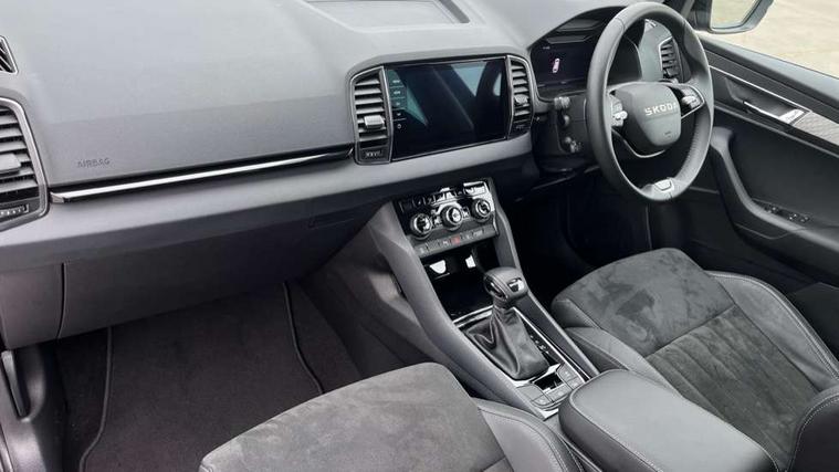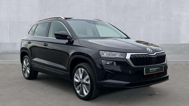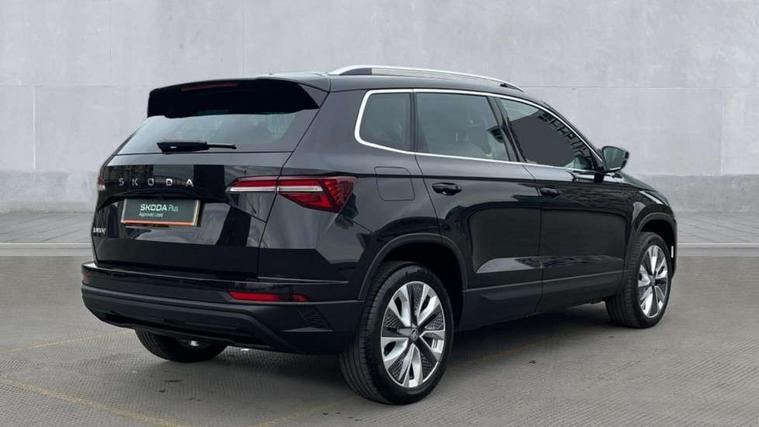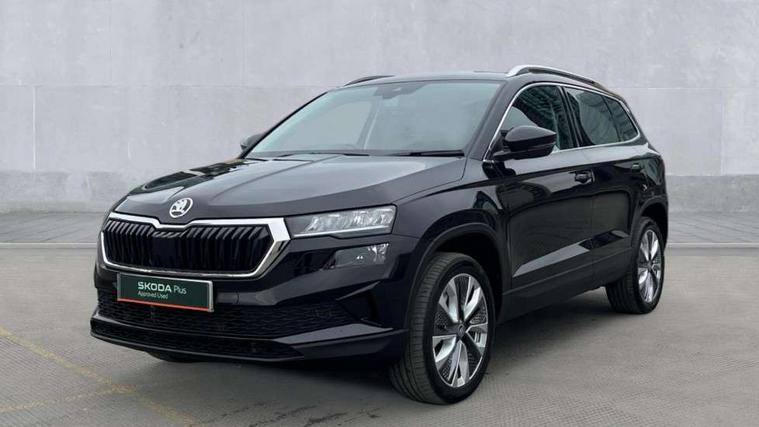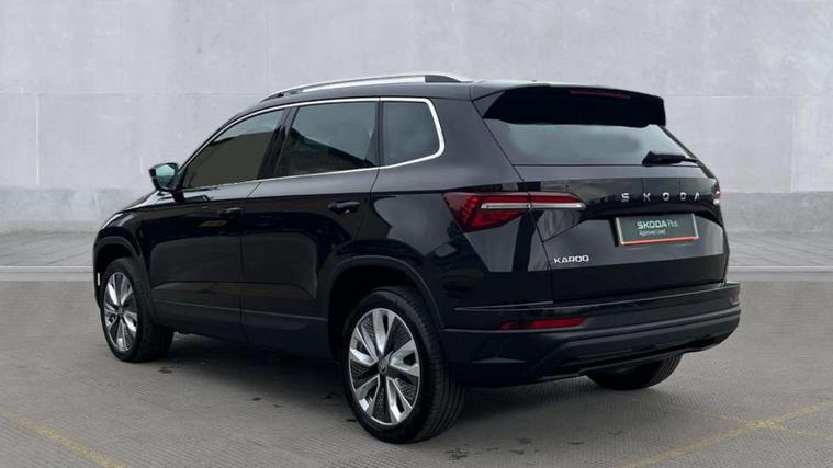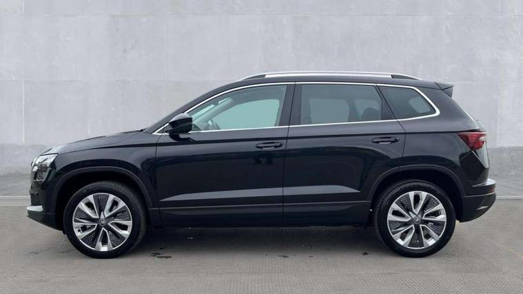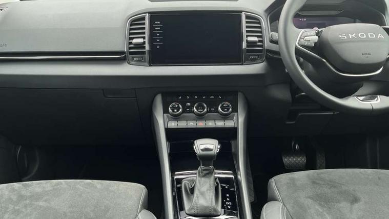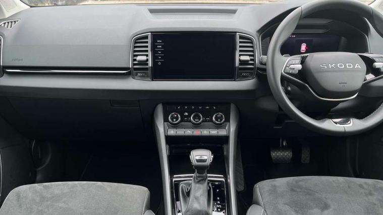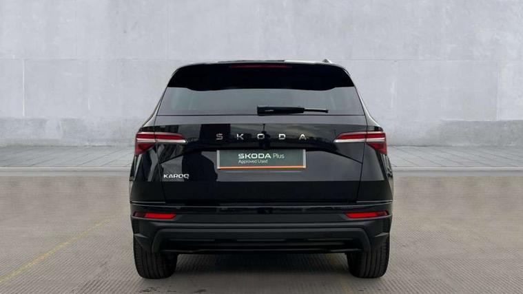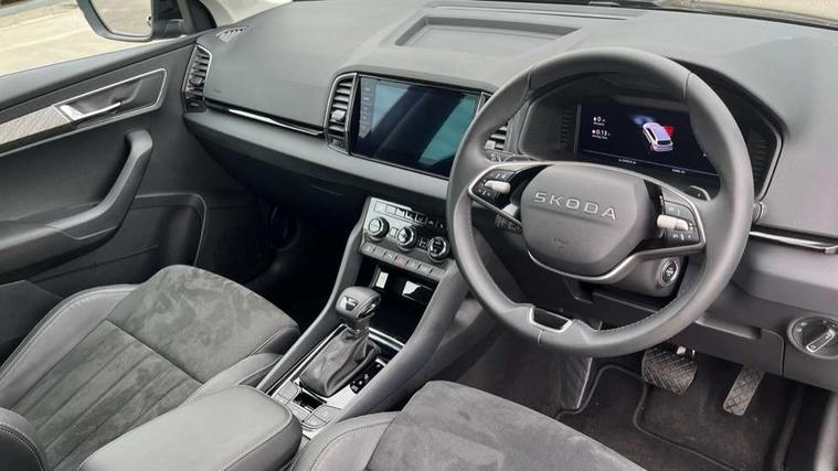 Advanced driver attention and drowsiness monitor, Drive Mode Selection including ECO function, Electro-mechanical PAS, Emergency services call system, Outside temperature gauge, Sensor for driver assistance systems, Service interval indicator, SmartLink wireless for Apple and wired for Android, Start/stop system with regenerative braking, Traffic sign recognition, USB C Port x 2 in front centre console, Virtual Cockpit - 10.25" digital display, Virtual pedal with electrically operated boot door, Wireless smartphone charging, DAB radio with Bluetooth, USB connection, Acoustic glass, Aero front windscreen wipers with intermittent function, Auto dimming rear view mirror with light and rain sensors, Black electric window control buttons, Body colour door mirrors and handles, Electric front and rear windows with child proof lock, Extended rear roof spoiler, Heated rear windscreen, LED daytime running lights, LED rear lights with high functionality welcome effect and dynamic indicators, Light assistant (coming/leaving home/tunnel light), Plastic scuff plates in door apertures, Privacy glass, Rear side wing doors, Rear window wiper with washer system and intermittent control, Safety reflectors on front doors, Third brake light, Unique dark chrome design logo on alloy wheels, 1.5 litre bottle holders in driver and front passenger door panels, 12V socket in boot, 12v socket in front centre armrest with storage compartment and rear air vents, 2 spoke leather heated multifunction steering wheel with DSG paddles, 2 x Tablet holder, 3 rear height adjustable headrests, 3 seat bench in 2nd row, 4 foldable roof handles with rear coat hooks, Black floor carpet, Cargo elements in boot, Chrome inner door handles, Decorative door sills with KAROQ badging, Foldable hooks in the boot, Front head restraints, Height adjustable front three point seats belts with tensioners, Height/reach adjust steering wheel, Ice scraper, Illuminated glovebox, Illuminated luggage compartment, Interior noise suppression, Isofix child seat preparation for front passenger seat, Isofix child seat preparation outer rear, Manual lumbar support for front seats, Pearl grey interior ceiling, Pen holder, Pollen filter, Rear boot cover, Rear package tray, Rear reading lights, Rubbish bin door, Safety vest holder, Single front passenger seat, Skoda lettering on steering wheel, Storage box in upper central dashboard closed, Sunvisors with illuminated vanity mirrors, Textile floor mats, Ticket holder, Columbus pack - Karoq, Design Pack - Karoq, Non Smokers pack, Parking pack - Karoq, Automatic door unlocking in case of crash, Automatic fuel cut off in case of crash, Driver airbag, Electronic parking brake with auto hold function, Emergency rear braking signal, ESC (incl. ABS+MSR+ASR+EDS+HBA+DSR+RBS+MKB), Front side airbags, Head airbags, Hill hold control, Knee airbags, Passenger airbag with switch-off function, Pedestrian monitor, Power operated child safety locks, Seatbelt reminder signalisation and pretensioner for all seats, Three point seatbelts rear, Two tone horn, Tyre pressure monitor, Alarm with interior monitoring, back up horn and tilt sensor with safe function, Electronic engine immobiliser, Keyless entry and start/stop, Remote central locking with 2 remote folding keys, Black centre console, Chrome framed air vents, Satin black dashboard, Anti-theft wheel bolts protection, Breakdown and tool kit,