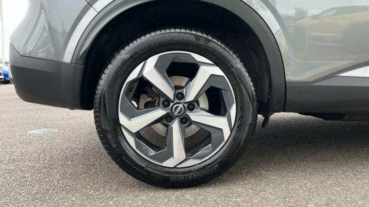 Android auto/Apple CarPlay (Wired), Blind spot warning, Drive modes (sport, normal, eco), Electric speed sensitive power steering, Emergency and breakdown call, Full Digital 12.3" TFT Digital Combimeter, Google maps services - search, weather, 3D maps and Google street view, Idle stop/start system, Intelligent around view monitor, Intelligent Cruise control (ICC), Intelligent driver alert system, Intelligent forward collision warning, Intelligent lane intervention, Lane departure prevention, Lane departure warning system, Maximum speed limiter, Moving object detection, Nissan connect 12.3 inch touchscreen infotainment system, Nissan connect navigation, Push button starter, Rear cross traffic alert, Rear parking sensors, Rear view camera, Remote control services - door locks, lights, horn and car locator, Telematics - notifications and connectivity services, TomTom live traffic services, Traffic sign recognition with legal speed adjustment, Trip computer, Virtual personal assistant and firmware over the air capability, Wireless apple carplay, 6 speakers, AM/FM audio system with DAB, Bluetooth audio streaming, Front USB connections (Type-A and Type-C), Rear USB charging only ports (Type-A and Type-C), Auto dimming rear view mirror, Auto rear wiper when reversing, Automatic hazard signal with emergency stop signal, Body colour mirror caps, Body coloured door handles, Bodyside mouldings, Chrome side window finisher, Door handle with button, Electric auto folding door mirrors, Electrically adjustable and heated door mirrors with LED turn indicator, Follow me home headlights, High beam assist, Intelligent auto headlights, LED daytime running lights, LED Headlights, LED rear lights, One touch front and rear electric windows with remote opening and closing, Partially body coloured bumpers, Privacy glass, Rear bumper with graphite insert, Rear reversing light (bulb lighting), Rear roof spoiler, Rear side wing doors, Rear styling plate, Shark fin antenna, Splash free rain sensing wipers, Super UV and infrared cut glass, Three blink turn signal, 12v power socket in dashboard and luggage, 2x Rear coat hooks, 3 bench rear seats in 2nd row, 3 rear headrests, 4 folding assist grip, 6 Luggage hooks - 4 on floor, 2 on side, 6-way manually adjustable driver's seat, 60/40 split folding rear seat bench, Ambient lighting around centre console, Centre console storage tray, Chrome interior door handles, Cloth monoform upholstery, Driver and front passenger sunvisors with illuminated vanity mirrors, Driver seat back pocket, Dual zone automatic climate control with pollen filter, Electrically adjustable lumbar support for driver, Front and rear door storage, Front centre console and armrest, Front cupholders x 2, Front door with bottle holders, Glovebox with light, Hard trunk cover, Height adjustable driver's seat, Height adjustable front headrests, Height adjustable passenger seat, Leather steering wheel, Luggage board system, Luggage space lighting, Manually adjustable passenger (slide recline + lifter), Multifunction steering wheel, Passenger seat back pocket, Rear armrest with 2 cupholders, Rear door bottle holders, Single front passenger seat, Soft PVC kneepad, Steering wheel gearshift paddles, Steering wheel switches, Sunglasses holder, Tilt/telescopic adjustable steering wheel, Two rear isofix child seat anchorage points with top tether, Welcome light and console tray ambient lighting, 3x3 point rear seatbelt pretensioners + load limiters, ABS with EBD and brake assist, Active brake limited slip, Auto hold function, Child locks on rear doors, Curtain and front side, far side airbags, Driver and passenger airbags, Driver, passenger and 2nd row rear seat belt reminder, Electronic parking brake, Front seatbelt pretensioners + load limiters, Height adjustable front seatbelts, Hill start assist, Intelligent blind spot intervention, Intelligent front emergency braking with pedestrian, cyclist recognition and junction assist, Intelligent rear automatic braking, Tyre pressure monitoring system, Vehicle dynamic control, Capless fuel filler, Engine immobiliser, Intelligent Key, Remote central door locking with deadlocking, Thatcham Cat.1 alarm, Interior instrumental panel B finisher, 18" Diamond cut alloy wheels, Tyre puncture repair kit,
