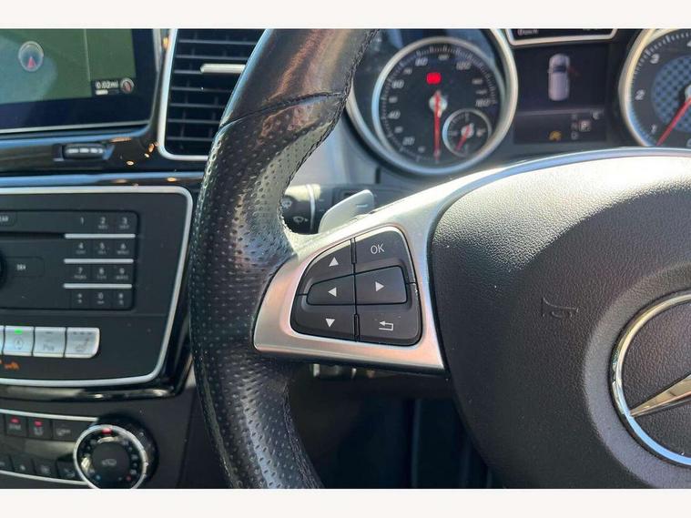 Active park assist with parktronic system, Attention assist, Bluetooth interface for hands free telephone, Chequered flag design instrument cluster, Collision prevention assist plus, COMAND online HDD Nav with media interface, radio/CD/DVD/MP3, 8" screen, linguatronic voice control, 10GB music register, memory card slot, Crosswind Assist, Easy-pack tailgate - Powered opening/closing automatically, Multi function trip computer, Outside temperature gauge, Remote boot release, Service indicator (ASSYST PLUS), Smartphone integration with Apple CarPlay, Speed limit and traffic sign assist, Speed sensitive power steering, Surround camera system, Diesel particulate filter, DAB Digital radio, SD card slot, USB/aux input socket, Adaptive brake lights, Aluminum running boards with rubber studs, AMG bodystyling, Auto dimming door mirrors, Auto dimming rear view mirror, Automatic headlights with high beam assist, Body coloured bumpers, Chrome door handles, Door sill panels, Electric folding door mirrors, Electric front/rear windows with one touch/auto up/down, Electric heated + adjustable door mirrors, Electric panoramic sunroof, Headlamp assist, Headlight washers, Heated windscreen wash system, Intelligent LED headlight system with active cornering lights, LED daytime running lights, LED rear lights, Privacy glass, Rain sensor windscreen wipers, Rear wash/wipe, 1/3 to 2/3 split folding rear seats, 12V socket in front and rear, 3 spoke flat bottom AMG steering wheel in nappa leather, 4 way electrically adjustable lumbar support for front passenger seat, 4-way lumbar support for drivers seat, 6 way electric front seats, Adjustable front and rear headrests, Ambient lighting, AMG sports seats, AMG velour floor mats, Auto Mercedes-Benz child seat recognition sensor, Centre armrest and door handle illumination, Courtesy light switch-on with door unlocking, Door centre panels in artico man-made leather, Front and rear door pockets, Front centre armrest with storage compartment, Front cupholders, Front height/angle adjust neck pro active head restraints, Front seat back map pockets, Heated front seats, Height/reach adjust steering wheel, Illuminated glovebox, Interior rear light/integral reading lights, Isofix rear child seat fastenings, Leather gear knob, Lockable glovebox, Luggage compartment cover, Multi function steering wheel, Rear armrest with storage + cupholders, Sports pedals with stainless steel surfaces and rubber studs, Steering wheel gearshift paddles, Storage compartment under load area floor, Sunvisors with illuminated vanity mirrors, THERMOTRONIC automatic climate control, Memory package - GLE, 3x3 point rear seatbelts, ABS with Brake Assist, Active bonnet, Adaptive brake system, Brake calipers with Mercedes-Benz lettering + perforated brake discs, Child proof door locks, Downhill speed regulation (DSR) with switch, Drivers knee airbag, Dual stage driver/passenger airbags, Electronic four wheel traction control, Electronic parking brake, ESP with ASR, Front and rear curtain airbags, Front and rear pre-tensioning and force limiting seatbelts, Front side airbags, Hill start assist, Pre-Safe anticipatory safety system, Rear seatbelt warning indicator, Tyre pressure monitoring system, Warning triangle and first aid kit, Alarm system/interior protection/immobiliser, Keyless ignition, Locking wheel bolts, Remote central locking, Collapsible spare wheel,