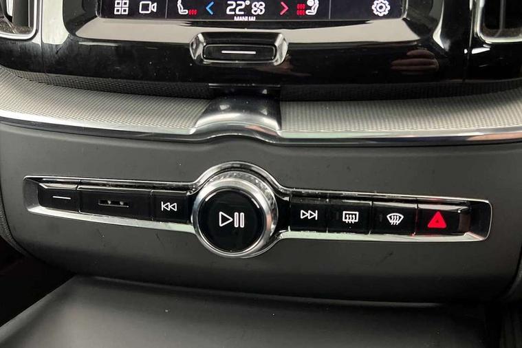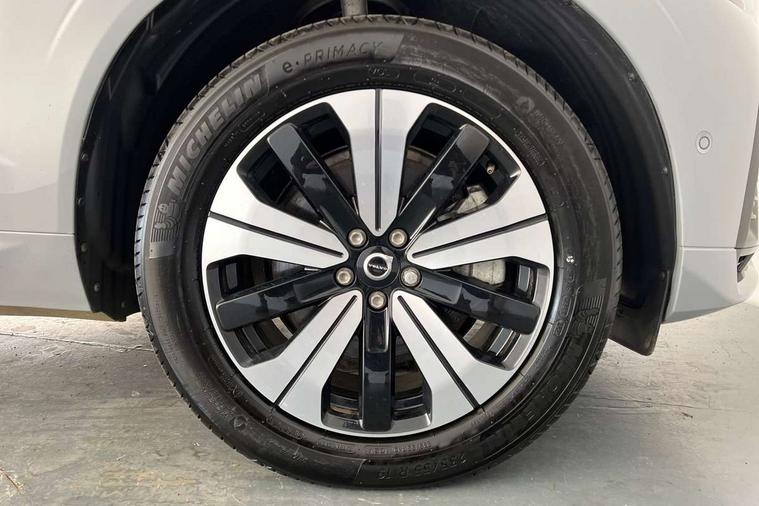 12.3" Progressive Driver Display, 360 degree surround view parking camera with side proximity sensors, 9" centre console touch screen, Adjustable steering wheel force, Apple carplay (wired), Bluetooth handsfree system, Drive mode settings, Driver alert control with lane keeping aid, Driver assistance (pilot assist and adaptive cruise control), Emergency services call system, Front and rear park assist, Google Automotive Services, Oncoming Lane Mitigation, PAS, Service interval indicator, Speed limiter, Speed sensitive steering, Trip computer, Volvo on call with App, Wireless/Inductive Mobile Phone Charging, 3.7 kW monophase on board charger, 7m 10amp charge cable with 3 pin plug and 6m 3 phase 16amp type 2/mode 3 charge cable, 8 speed automatic transmission with start/stop + manual change functions, Dynamic chassis, Electric rear axle drive, Recharging port located in nearside front wing, DAB Digital radio, Low speed exterior sound speaker, Premium Sound by Harman Kardon, dirac unison, dolby pro logic II surround sound, 13 speakers/600W output and fresh air subwoofer, Steering wheel remote infotainment controls, Adaptive brake lights with high level LED brake lights, Auto dimming interior + exterior mirrors, Automatic headlight levelling system, Automatic LED Headlights + Active high beam incorporating daytime running lights, Electric adjustable/heated/auto power folding door mirrors, Electric front+rear windows, Heated front windscreen, High gloss black door mirrors and window surround, High gloss black front and rear bumper decoratives, High gloss black mesh front grille with high gloss black surround, Home safe and approach lighting, Integrated roof rails in high gloss black, Power glass tilt and slide panoramic sunroof with sun curtain, Puddle lights, Rain sensor with automatic windscreen wiper activation, Rear side wing doors, Rear wiper, Roof antenna, Roof spoiler, Tinted windscreen, Visible VIN plate, 12V socket in front tunnel console and luggage compartment, 2 zone electronic climate control with Clean zone air quality system and pollen filter, 3 seat bench in 2nd row, A-pillar parking ticket holder, Air purifier particulate matter (PM) 2.5 filter, B Pillar ventilation, Bright metal luggage threshold, Centre console cupholders and storage, Charcoal floor mats, Front and rear courtesy lights, Front and rear door pocket illumination, Front cupholder illumination, Front footwell illumination, Front reading lights, Front seat cushion extensions, Glovebox compartment with illumination, Head restraints for all seats, Heated front seats, Heated steering wheel, Height/reach adjustable steering column, Illuminated luggage compartment, Illuminated vanity mirrors + ticket holder, ISOFIX attachment on outer rear seats, Load cover, Load protection net, Multi directional lumbar support, Power driver seat with memory + exterior mirrors memory, Power height adjustable passenger seat, Rear armrest with cupholder, Rear footwell and front and rear side step illumination, Rear seat concealed storage, Recharge aluminium tread plates, Single front passenger seat, Tailgate illumination and ambient door lighting, Underfloor stowage compartment, Versatile split folding rear seat - 60/40, 5 three point seatbelts, City safety with steering support with Pedestrian + cyclist + front collision warning with full auto brake and rear auto brake, Drivers knee airbag, Dual stage driver/passenger airbags, Electronic parking brake with auto hold, First aid kit, Front seats SIPS airbags, Hill descent control - Off-road drive mode, Hill start assist, IC (Inflatable Curtains) - Full Length, Passenger airbag cut-off device, Power child locks on rear doors, Road sign information display, Run off Road Mitigation, Run off Road Protection, Seatbelt reminder and pretensioners, SIPS (Side Impact Protection System), Slippery road and hazard light alert, Stability and Traction Control with Spin control, Engine Drag Control and Corner Traction Control, Tyre pressure monitoring system, Vehicle deceleration control with Anti-lock Brake System, Electronic Brake Distribution and Emergency Brake Assist, Warning triangle, WHIPS whiplash protection system - front, Anti-theft alarm including immobiliser/volume sensor + level sensor, Care key with user defined top speed, Key integrated remote control central locking + fuel flap with deadlocking system and auto open/close power windows, Keyless Drive (includes Keyless Entry and Keyless Start) with Handsfree Tailgate Opening/Closing, Locking wheel nuts, Private locking for tailgate, Tyre sealant kit + 12v compressor,