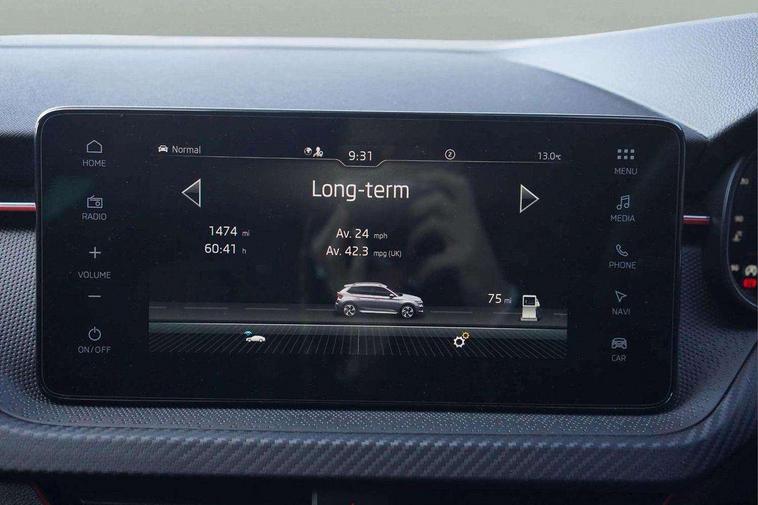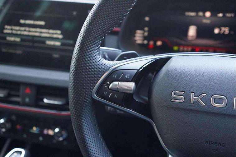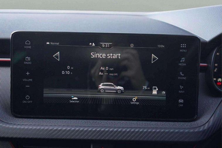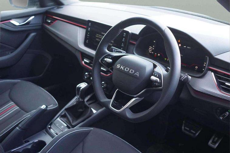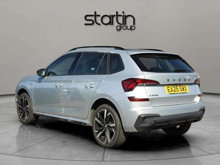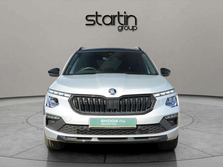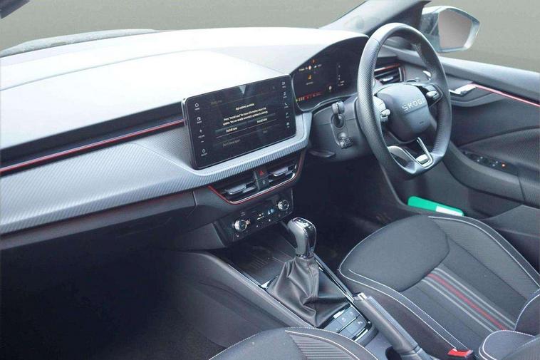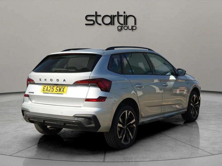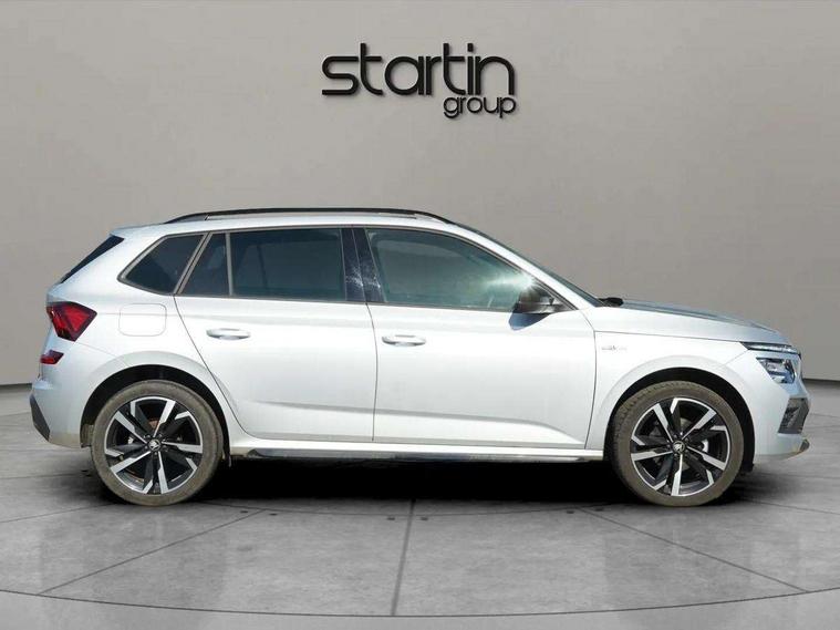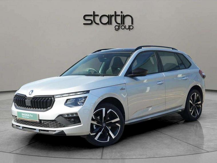 Advanced driver attention and drowsiness monitor, Bluetooth system, E-call, Front assist system, PAS, Rear parking sensors, Rear view camera, Service indicator, Speed limiter, Traffic sign recognition, Virtual cockpit with 10.25" display, Voice control system, Wireless smartlink, 4 USB C ports, 8 Speakers, 9.2" Skoda navigation display, DAB Digital radio, Auto dimming rear view mirror, Automatic headlight control with coming home and leaving home feature, Black door mirrors, Black radiator grille, Black rear diffuser, Black roof spoiler, Body colour bumpers, Body colour door handles, Boot lettering in black, Extended tailgate glass, Fixed panoramic sunroof with black roof rails, Front and rear electric windows, Heated rear window, LED daytime running lights, LED high beam, LED low beam, LED third brake light, Light sensors, Monte carlo plaque, Privacy glass, Rear side wing doors, Rear wiper, Ticket holder inside windscreen, 12V socket in luggage compartment, 3 seat bench in 2nd row, Aluminium pedals, Ambient lighting in white/red, Art leather carbon decor inserts, Art leather carbon door inserts, Black roof lining, Cargo elements, Chrome inner door handles, Driver and passenger sun visors with vanity mirror, Dual zone climate control, Front and rear roof lights, Front centre armrest, Front head restraints, Glove compartment with illumination, Height adjustable driver seat, Height adjustable front passenger seat, Ice scraper, Inner circulation control with pollen filter, ISOFIX on front passenger seat, Isofix preparation for back seats, Leather gearknob and handbrake lever, Manual lumbar support for front seats, Monte Carlo cloth upholstery, Net package and top tether hooks in boot space, Net under rear shelf, Pocket on the back of both front seats include mobile phone pockets, Rake/reach adjustable steering wheel, Reading lights, Rear centre armrests, Red hotstamping, Single front passenger seat, Sports seats, Textile floor mats, Third rear headrest, Top tether for front passenger seat, Umbrella in driver's door, Light and view plus package - Kamiq, 3x3 point rear seatbelts, Airbags - driver and front passenger, Disc brakes, ESP, Extended and predictive pedestrian/cyclist protection, Front passenger airbag deactivation switch, Front side airbags with curtain airbags, Hill hold control, Manual leather parking brake, Manual rear child locks, One tone horn, Seatbelt reminder for driver an co-driver, Traction control, Tyre pressure monitor, Anti-theft alarm system with interior monitoring, backup horn, towing protection and remote central locking with SAFE system, Anti-theft wheel bolts, Electronic engine immobilizer, 18" Ursa black diamond cut alloy wheels,