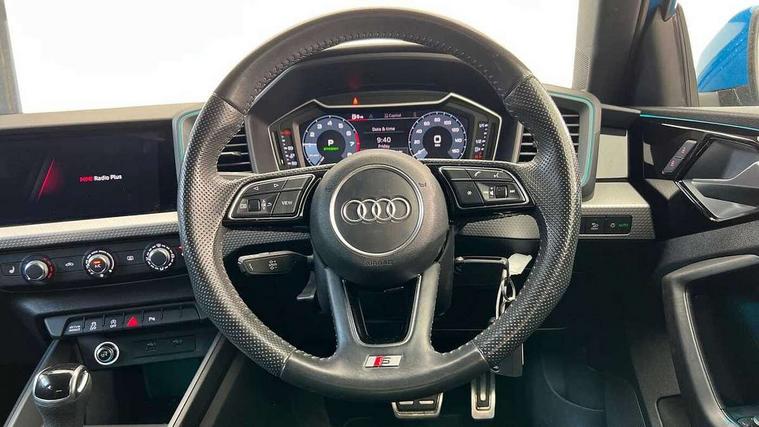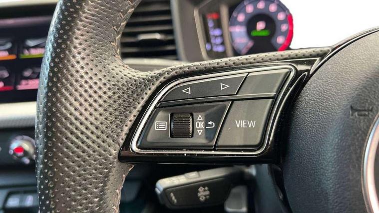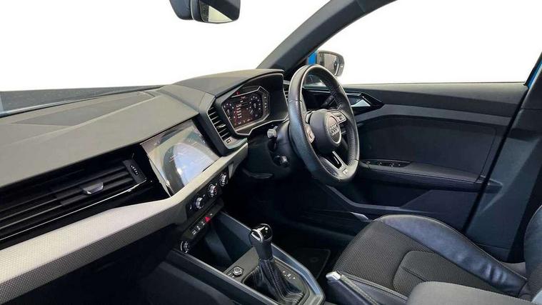 10.25" Digital instrument cluster display screen, Audi connect safety emergency and service including E-call, Audi drive select, Audi smartphone interface, Automatic start/stop system, Bluetooth interface, Driver's information system, Electromechanical power steering, Lane departure warning system, Service interval indicator, Speed limiter, Voice control system, Washer fluid level indicator, Sports suspension, 1 x SDXC card reader, 1 x USB type C and 1 USB type A charging points, Audi music interface, Bluetooth audio streaming, DAB Digital radio, MMI radio plus with 8.8" colour MMI display screen and MMI touch, Auto dimming rear view mirror, Body colour side sill mouldings, Body coloured bumpers, Body coloured door mirrors, Door sills with aluminium inlays and S Line logo, Electric front and rear windows, Front side air inlets in grained matt black and C frame in titanium black, Heat insulating glass windscreen and side windows, Heated rear windscreen, LED headlights with LED rear lights + dynamic rear indicators, Matt aluminium silver tailpipe trim, Matt black radiator grille frame, Matt platinum grey in front spoiler clip and rear diffuser clip, Rain and light sensors, Rear fog lights, Rear wiper, S line badges on front wings, S line exterior bumpers, S line roof spoiler, Side air inlet frames titanium black, Side front spoiler lips in grained matt black, 12V socket in centre console with two cup holders, 3 rear seats, Black cloth headlining, Driver and passenger seat with manual height adjust with forward and backwards adjustment, Front and rear black floor mats with contrast stitching in fine silver, Front head restraints, Height and reach adjustable steering wheel, ISOFIX child seat mounting in front passenger and rear outer seats, Leather gear knob with aluminium trim, Leatherette handbrake grip, Luggage compartment light with front and rear reading lights, Lumbar adjustment for front seats, Rear head restraints, Split folding rear seats, Stainless steel pedals, 3x3 point rear seatbelts, Audi pre-sense front with pedestrain and cyclist recognition, Brake assist function, Driver and front passenger airbag with front side and head airbags, Electronic Stability Control including ABS, EBD, ASR and EDL, Front and rear seatbelt reminder, Front passenger airbag deactivation switch, Hill hold assist, Seatbelt height adjustment for front seats, Seatbelt monitoring, Tyre pressure warning light, Warning triangle and first aid kit, Anti theft alarm, Anti theft wheel bolts and loose wheel warning, Immobiliser, Remote central locking with 2 remote folding keys, Aluminium trim for control switches, air vents and digital instrument cluster, Silver grey inlays polygon structure in diamond paint finish, Structured grey accent areas including air vents, door handle recesses and centre console in quartz paint finish,