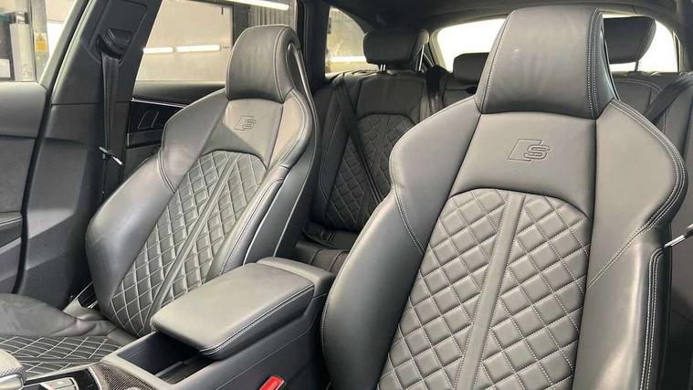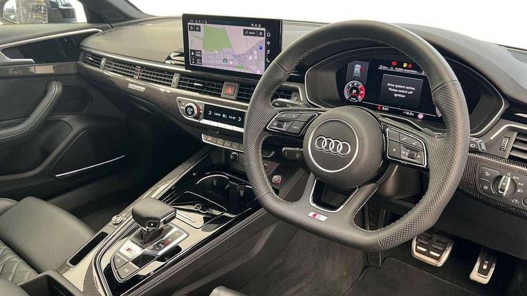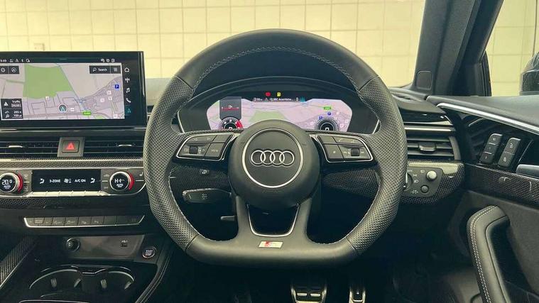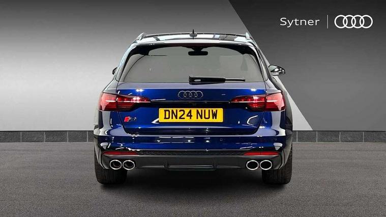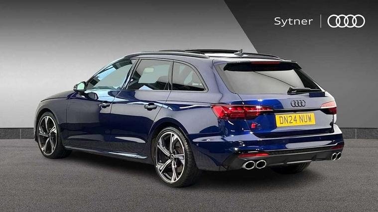 Audi connect safety and service (e-call), Audi connect with Amazon Alexa Integration, Audi drive select, Audi smartphone interface, Audi virtual cockpit, Automatic start-stop system with coasting functionality and efficiency programme, Bluetooth interface, Electromechanical power steering, Email, calendar and text messages displayed via MMI, MMI Navigation plus with MMI touch includes 10.1" high resolution colour MMI display, 3D map, Power operated tailgate, S instrument dials, Voice control system, 58 Litre fuel tank, S sports suspension, 2 USB charging ports, Audi sound system with 10 loudspeakers, DAB digital radio reception, Audi Beam uses LEDs to project the Audi logo, Audi rings and model badging in black, Auto dimming rear view mirror, Body colour door handles, Body colour front spoiler lip, Body colour side sill trim, Electrically folding auto dimming/adjustable/heated door mirrors with LED side indicators and kerb view function for passenger side, Front and rear bumpers with side skirts, High beam assistant, High gloss black B pillar trims and triangular rear door trim, LED headlights with LED rear lights + dynamic rear indicators + headlight adjustment and high beam, turning light + LED daytime running lights, LED third brake light, Privacy glass, Rain and light sensors, Rear side wing doors, Rear wiper, S Line badges on the front wings, S Line roof edge spoiler, S rear diffuser in twilight grey matt and honeycomb grille in black, S specific dual branch chrome tailpipes with twin oval pipes on left and right, S specific side air inlets in black with chrome inlays in unique S design, S Style rear spoiler, Variable intermittent front wash/wipe, Windscreen with acoustic glazing, 40/20/40 split folding 3 rear seat bench in 3 parts with rear centre armrest, Black cloth headlining, Black leather gear lever knob, Contrast stitching on seats, steering wheel and gear lever gaiter, Deluxe 3 zone electronic climate control, Door sill trims with aluminium inlay, Electric load area cover, Electrically adjustable front seats, Fine nappa leather upholstery with S embossed logo + super sports seats, Front and rear head restraints, Front centre armrest, Gear lever with diamond S badge, Heated front seats, Illuminated door sill trims with S logo, ISOFIX child seat mounting and top tether, Key with S logo, Pneumatically adjustable lumbar support with massage function, Single front passenger seat, Stainless steel pedals and foot rest, Black styling pack - A4 Avant Sport Edition/S4 Black edition/S4 Vorsprung, Extended leather pack - A4/S4, LED Interior light pack - A4/S4, 3 rear seatbelts, 6 airbags - Driver, front passenger, curtain and side windows, Electronic Stabilisation Control (ESC) including ABS, ASR and EDL, Front brake calipers painted in black with S4 logo, Hill hold assist, Multi collision brake assist, Pop-up bonnet for pedestrian protection, Pre sense city, Rear door child safety locks, S model enhanced braking system, Seatbelt monitoring, Warning triangle and first aid kit, Anti theft alarm, Anti theft wheel bolts, Central locking, Keyless Go, Tool kit, Tyre repair kit,