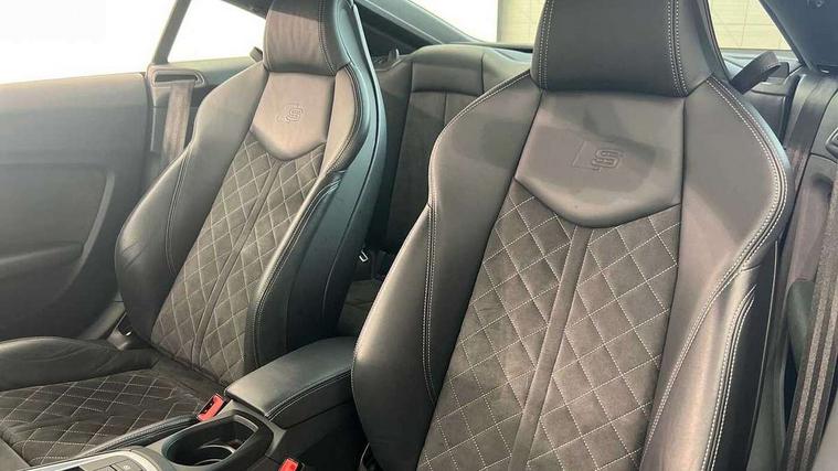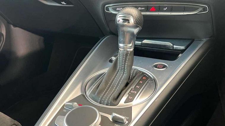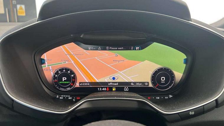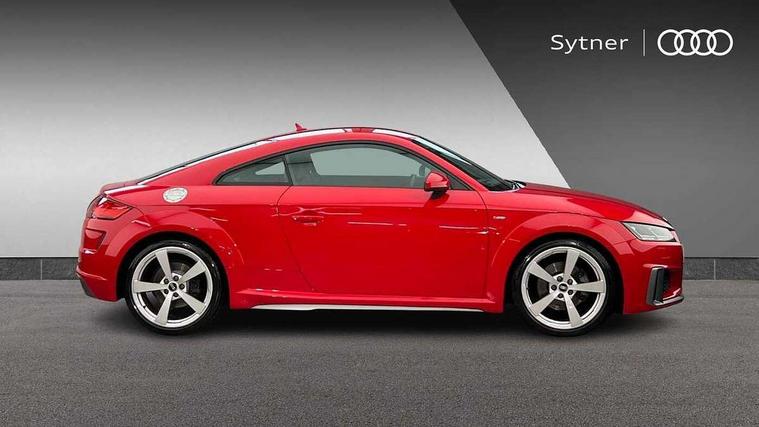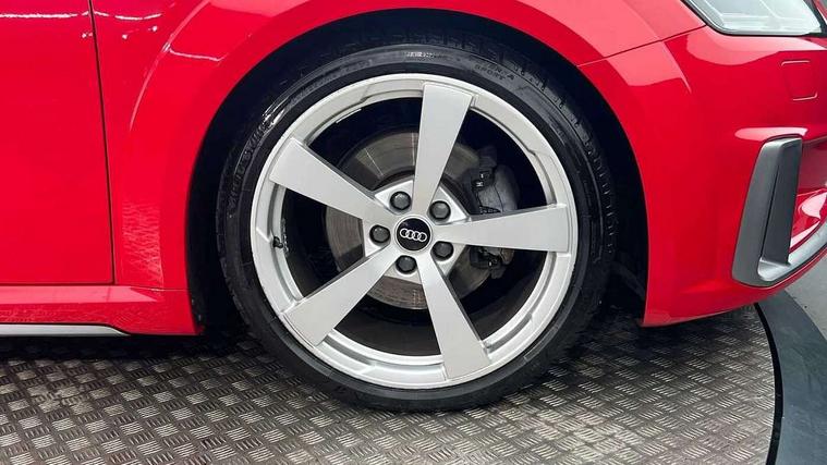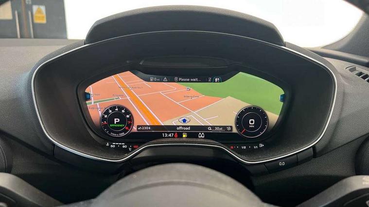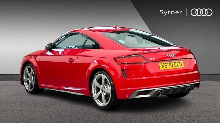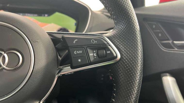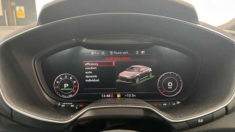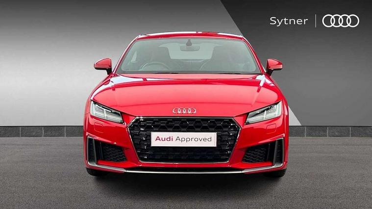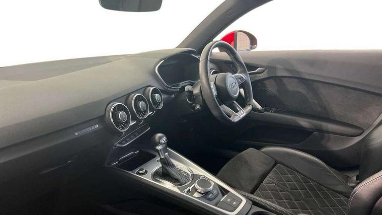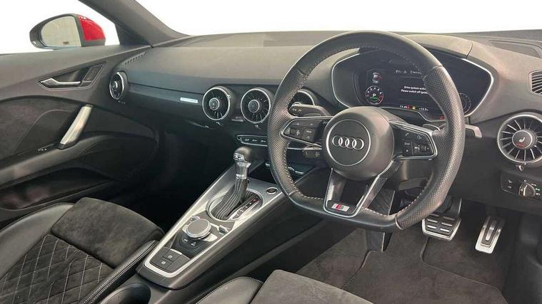 Audi drive select with 4 Pre configured modes, Audi smartphone interface, Audi virtual cockpit - 12.3" high-resolution LCD display with fully customisable instrument cluster, Cruise control + speed limiter, MMI touch panel, Mobile phone preparation with bluetooth interface, Progressive power assisted steering, Service interval indicator, Start/Stop system with energy recuperation, TP memo, S line sports suspension, AM/FM radio, Bluetooth audio streaming, DAB Digital radio, MMI Radio with CD player and SD/XC card slot, Auto dimming rear view mirror, Auto headlight range control, Body colour bumpers, Body colour electrically adjustable and heated door mirrors with built in LED side indicators, Dynamic rear indicators, Electric folding door mirrors, Electric front windows, Front fog lights, Green tinted heat insulating glass, Headlight wash system, High gloss black radiator grille, LED daytime running lights, LED headlights with LED rear lights + dynamic rear indicators, Light and rain sensors, Retractable rear spoiler, S line badges on front wings, S Line front and rear bumpers, S line rear diffuser with platinum grey insert, S line side sills, Sunband for windscreen, 12V socket, 3 spoke flat bottomed high multi-function leather sport steering wheel with gearshift paddles, 4 way electric lumbar support for driver and front passenger, Black headlining, Door sill trims with S line logo, Extended aluminium look with stainless steel pedals, Front centre armrest, Front super sports seats, Heated front seats, Height adjustable driver's seat, Height adjustable front head restraints, Height/reach adjust steering wheel, ISOFIX child seat mounting for front passenger seat with airbag deactivation, Perforated leather gearknob in black, Rear head restraints, Rear top tether child seat ISOFIX attachment, S Line badge on steering wheel, Split folding rear seat, Tool kit, Non smoking pack - TT/TT RS, 3 point front seat belts, ABS, ASR traction control, Brake energy regeneration, Curtain airbags, Driver and front passenger airbag with front passenger airbag deactivation, EDL traction control, Electromechanical parking brake, ESP, First aid kit, Front side airbags, Head airbags, Hill hold assist, Seatbelt warning, Tyre pressure warning, Warning triangle, Anti theft alarm, Anti theft wheel bolts, Immobiliser, Keyless Go, Remote central locking, Matt brushed aluminium inlays, Tyre repair kit,