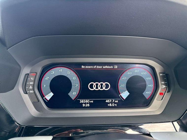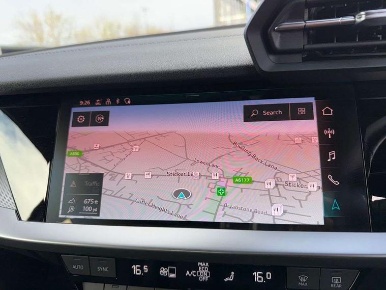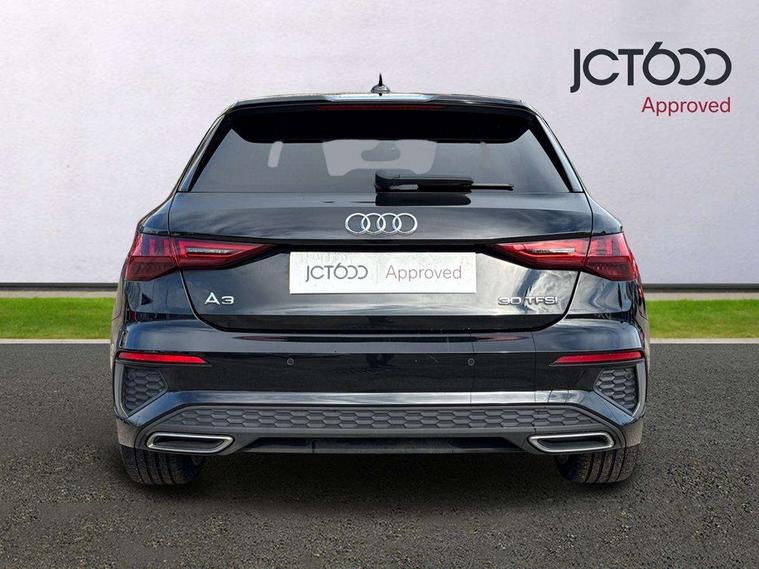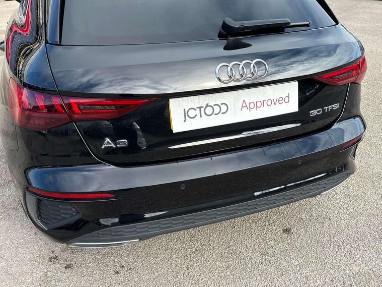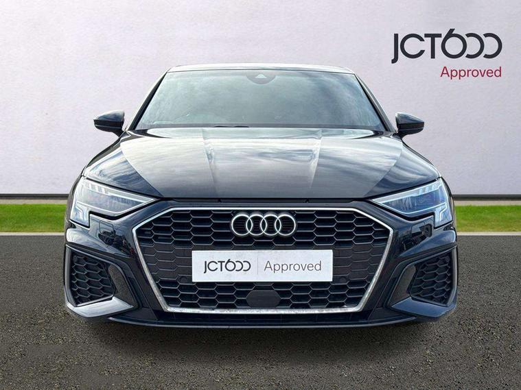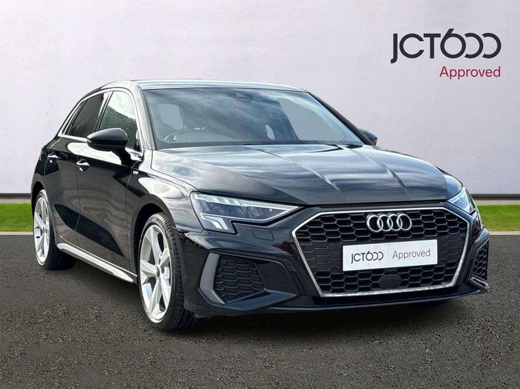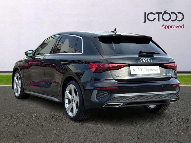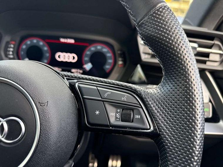 Audi drive select (Auto, Comfort, Dynamic and Individual), Audi smartphone interface, Audi Virtual Cockpit - 10.25" digital and colour instrument cluster, Automatic start/stop system with recuperation, Bluetooth interface, Collision avoidance assistant, Cruise control, e-Call (emergency call), Electromechanical power speed sensitive steering, Lane departure warning system, MMI Navigation Plus with high resolution 10.1" colour touch screen display, Rear parking sensors, Service indicator, Trip computer, Voice control system with natural language interaction, 2xUSB-C connection with data and charging functions, 6 passive loudspeakers, DAB Digital radio, 3rd brake light, Acoustic glass windscreen, Aluminium window trim, Auto dimming frameless rear view mirror, Electrically adjustable/heated/folding/dimming door mirrors with kerb view includes integrated LED indications + kerb view function for passenger side, Front electric windows, Illuminated aluminium inserts front door sills with S logo, LED daytime running lights, LED headlights with LED rear lights and dynamic rear indicators, Light and rain sensors, Privacy glass - dark tinted rear window, rear door and side windows, Rear electric windows, Rear side air outlets in grained matt black, Rear side wing doors, Rear wiper, S line bumpers, S roof spoiler, 12V socket and storage compartment in front centre console, 3 seat bench in 2nd row, 40/20/40 split folding rear seat bench with cupholder, Black cloth headlining, Dual zone electronic climate control, Front and rear centre armrest in leather, Front and rear headrests, Front/rear floor mats, Height and reach adjustable steering wheel, Illuminated vanity mirror, Interior lighting - glove compartment light and right hand side, Luggage compartment floor covering, Manual boot compartment lid, Manually adjustable front seats, Seat side bolsters, Single front passenger seat, Stainless steel pedals and front footrest in black, Twin leather upholstery with front sports seats S embossed logo, Aluminium interior elements pack - A3 Sportback, LED interior lighting pack - A3 Sportback, S line styling pack - A3 Sportback, 3x3 point rear seat belts, Audi pre sense front, Driver and front passenger airbag with passenger airbag deactivation, Electronic Stabilisation Control (ESC) including ABS, ASR and EDL, First aid kit with warning triangle and 2 safety vests, Front side airbags with head airbags and interaction airbag, Pre-sense front with pedestrian and cyclist detection, Seatbelt monitoring, Tyre pressure loss indicator, Anti theft alarm, Anti-theft wheel bolts, Electronically operated child lock, Immobiliser, Remote control central locking, Accent surfaces in the dashboard and centre console in platinum grey silk effect paint finish, Dark spectrum aluminium inlays,