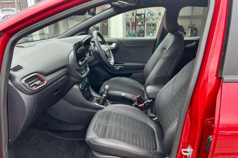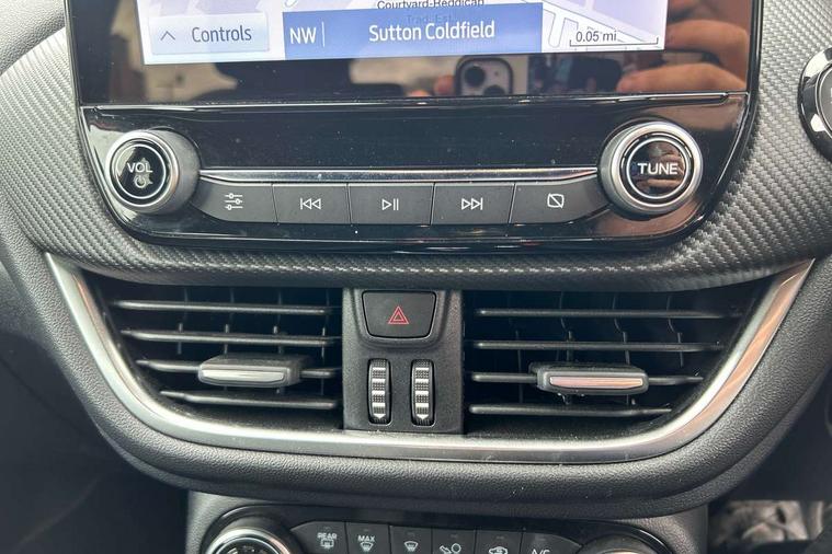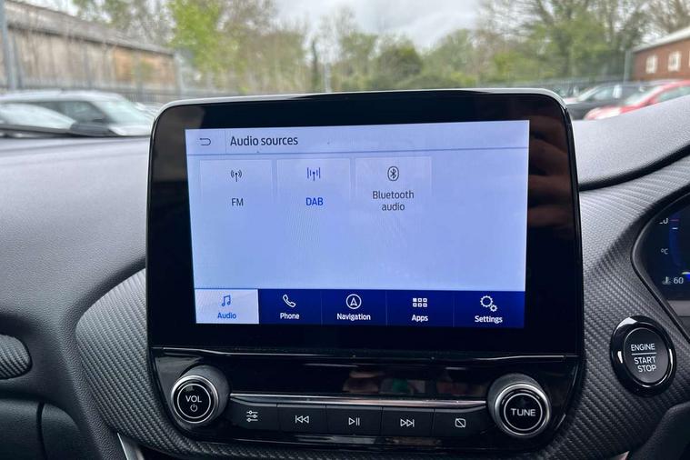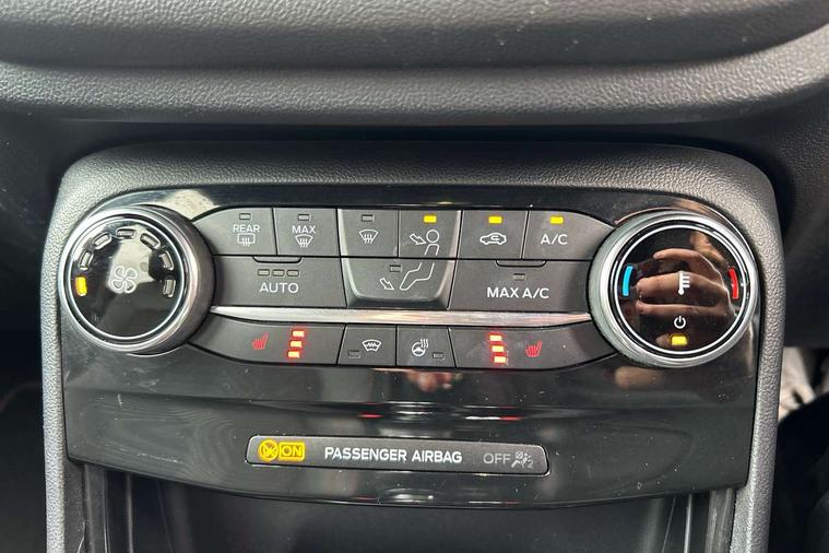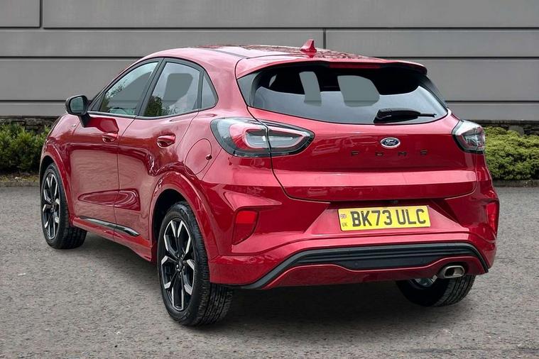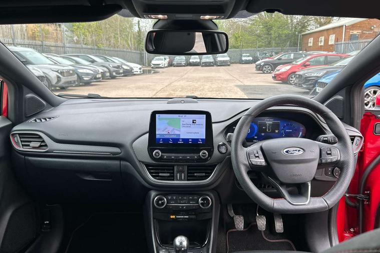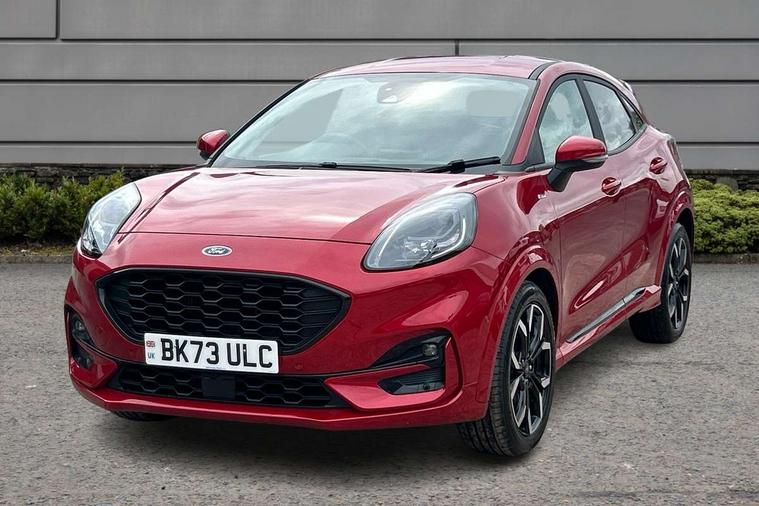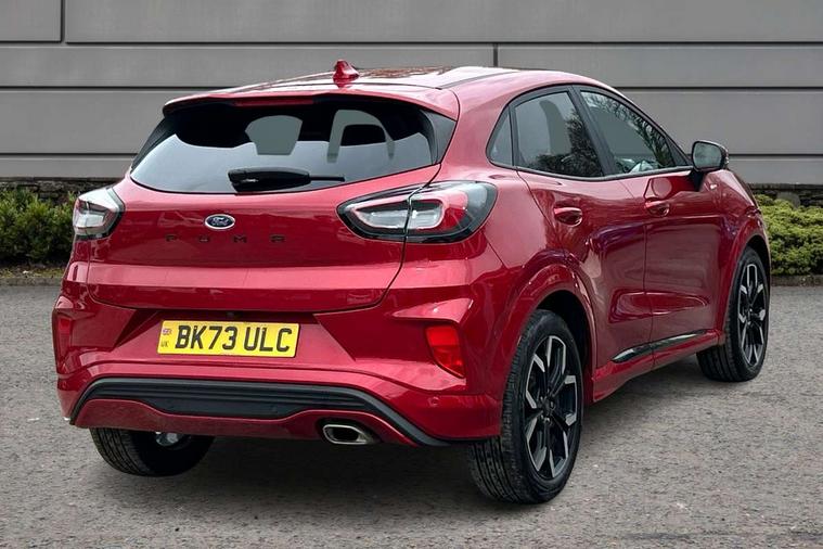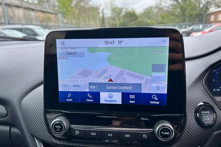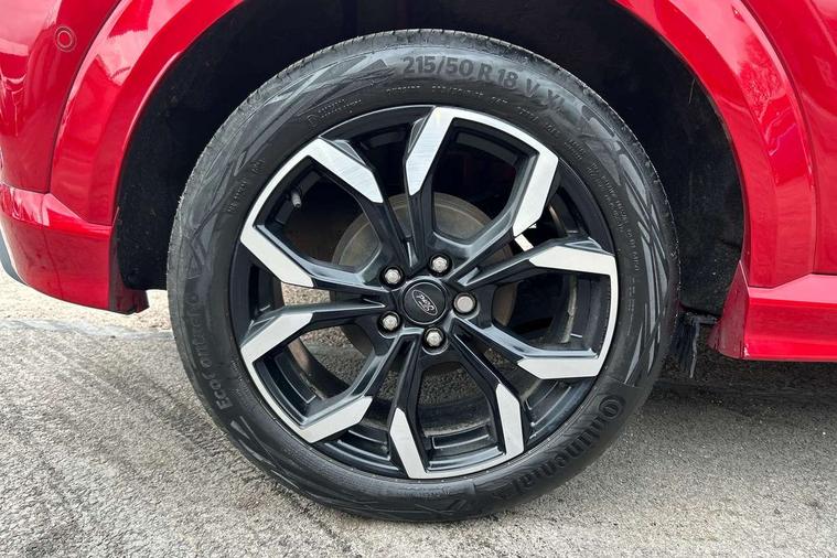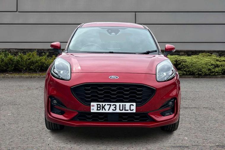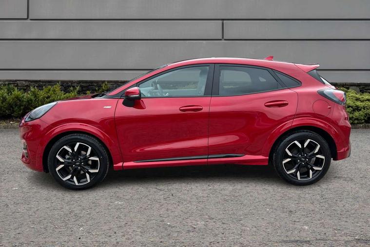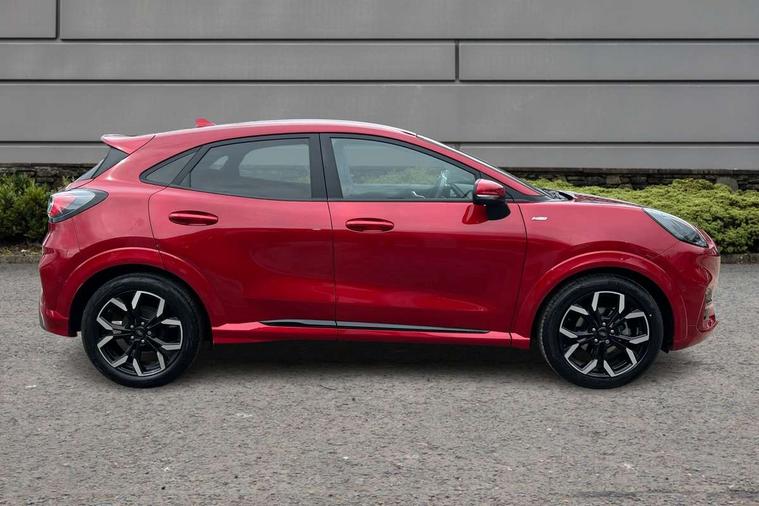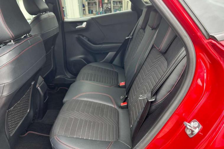 Driver impairment monitor, Emergency call service, Ford easy fuel, Full digital 12.3" instrument cluster, Lane keeping aid with lane departure warning, Power assist steering, Power start button, Rear parking sensor, Selectable drive modes(Normal, sport, Eco, trail, slippery), Speed sign recognition, Sport suspension, Automatic headlights with auto high beam, Automatic rain sensing wipers, Front fog lamps, LED daytime running lights, LED rear lamps, Power foldable heated door mirrors with puddle lamps, Privacy glass to side rear windows and tailgate glass, Quickclear heated windscreen, Rear side wing doors, Rear wiper, ST-Line body styling kit with unique grille and large body colour rear spoiler, Third brake light, 3 seat bench in 2nd row, Centre console with armrest and stowage, Ford megabox extended bootspace, Front and rear head restraints, Front floor mats, Manual 4 way driver seat adjust with lumbar adjustment, Manual 4 way passenger seat with lumbar seat adjustment, Sensico partial premium upholstery, Single front passenger seat, ST-Line flat bottomed sensico leather steering wheel with leather handbrake and aluminium gear knob, Wireless charging pad with electronic air temperature control (EATC), B&O Premium Audio system + Ford SYNC 3 navigation pack - Puma, 3 rear seatbelts, Child safety lock, Electronic stability control (ESC) and hill start assist, Pedestrian/cyclist detection & post-collision braking, Pre collision assist system, Tyre pressure monitoring system (TPMS), Thatcham alarm, Carbon look interior deco spears,