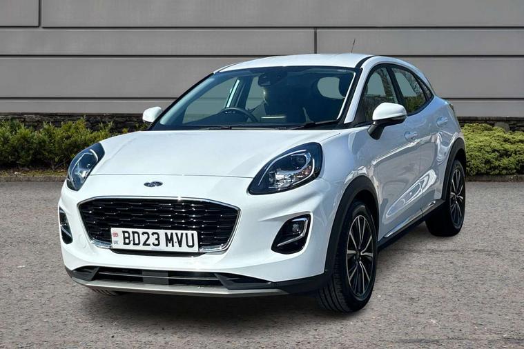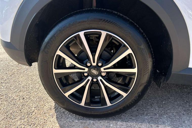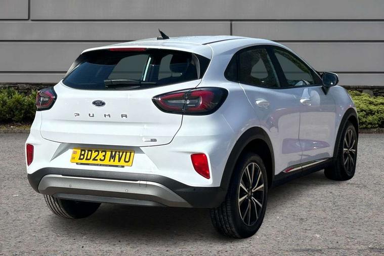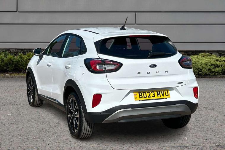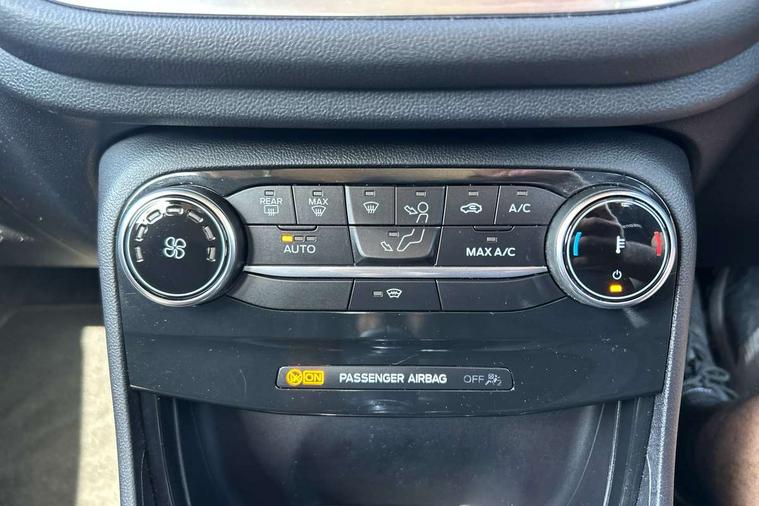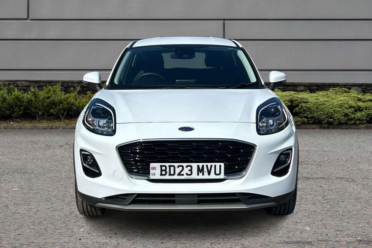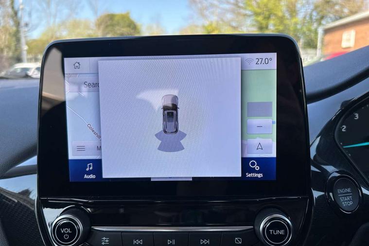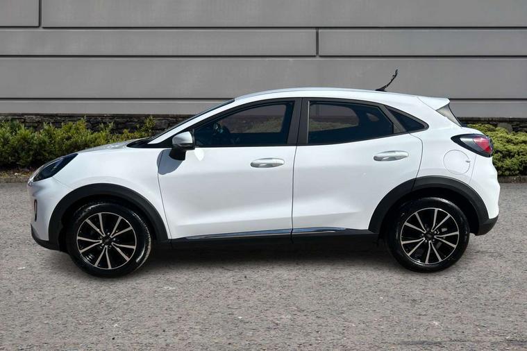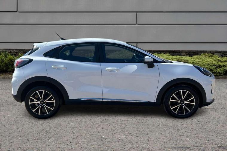 Driver impairment monitor, Emergency call service, Ford easy fuel, Lane keeping aid with lane departure warning, Power assist steering, Power start button, Rear parking sensor, Selectable drive modes(Normal, sport, Eco, trail, slippery), Speed sign recognition, Standard suspension, Automatic headlights with auto high beam, Automatic rain sensing wipers, Body colour rear spoiler, LED rear lamps, Power foldable heated door mirrors with puddle lamps, Projector headlamps with LED day time running lights and front fog lamps, Quickclear heated windscreen, Rear side wing doors, Rear wiper, Third brake light, 3 seat bench in 2nd row, Centre console with armrest and stowage, Electronic automatic temperature control (EATC), Ford megabox extended bootspace, Front and rear head restraints, Front floor mats, Manual 2 way passenger seat adjustment, Manual 4 way driver seat adjust with lumbar adjustment, Sensico leather steering wheel/gear knob/handbrake, Single front passenger seat, Titanium cloth upholstery, Ford SYNC 3 navigation pack - Puma, 3 rear seatbelts, Child safety lock, Electronic stability control (ESC) and hill start assist, Pedestrian/cyclist detection & post-collision braking, Pre collision assist system, Tyre pressure monitoring system (TPMS), Thatcham alarm, 17" 10 spoke absolute black machined finish alloy wheel,