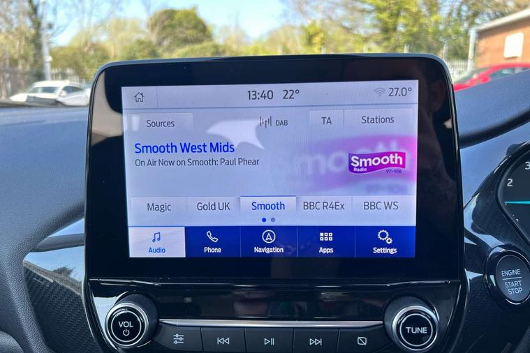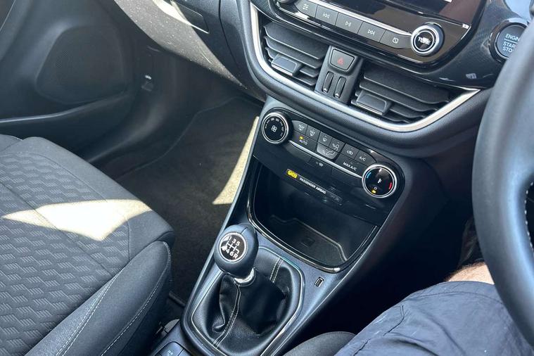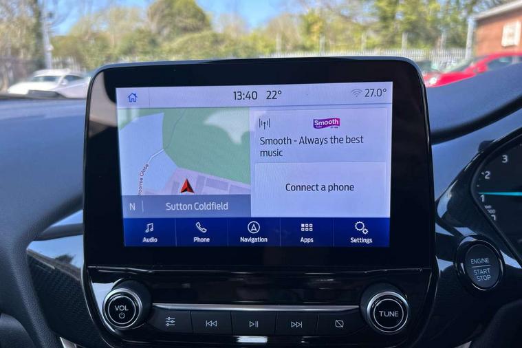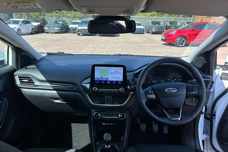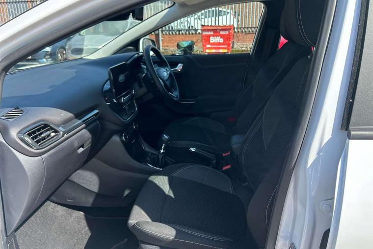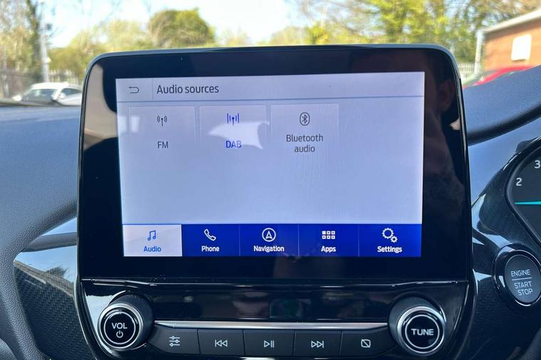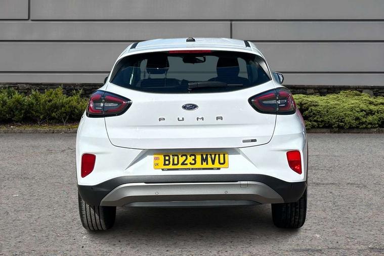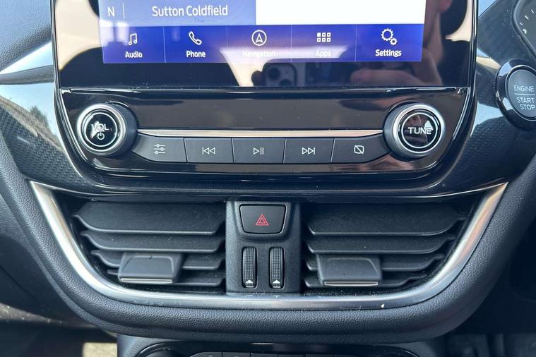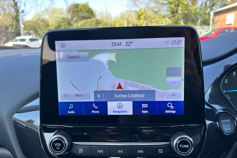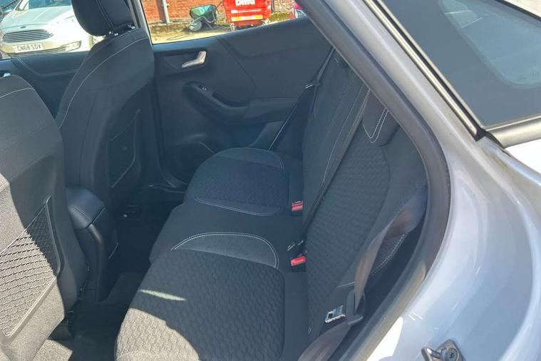Driver impairment monitor, Emergency call service, Ford easy fuel, Lane keeping aid with lane departure warning, Power assist steering, Power start button, Rear parking sensor, Selectable drive modes(Normal, sport, Eco, trail, slippery), Speed sign recognition, Standard suspension, Automatic headlights with auto high beam, Automatic rain sensing wipers, Body colour rear spoiler, LED rear lamps, Power foldable heated door mirrors with puddle lamps, Projector headlamps with LED day time running lights and front fog lamps, Quickclear heated windscreen, Rear side wing doors, Rear wiper, Third brake light, 3 seat bench in 2nd row, Centre console with armrest and stowage, Electronic automatic temperature control (EATC), Ford megabox extended bootspace, Front and rear head restraints, Front floor mats, Manual 2 way passenger seat adjustment, Manual 4 way driver seat adjust with lumbar adjustment, Sensico leather steering wheel/gear knob/handbrake, Single front passenger seat, Titanium cloth upholstery, Ford SYNC 3 navigation pack - Puma, 3 rear seatbelts, Child safety lock, Electronic stability control (ESC) and hill start assist, Pedestrian/cyclist detection & post-collision braking, Pre collision assist system, Tyre pressure monitoring system (TPMS), Thatcham alarm, 17" 10 spoke absolute black machined finish alloy wheel,