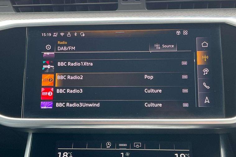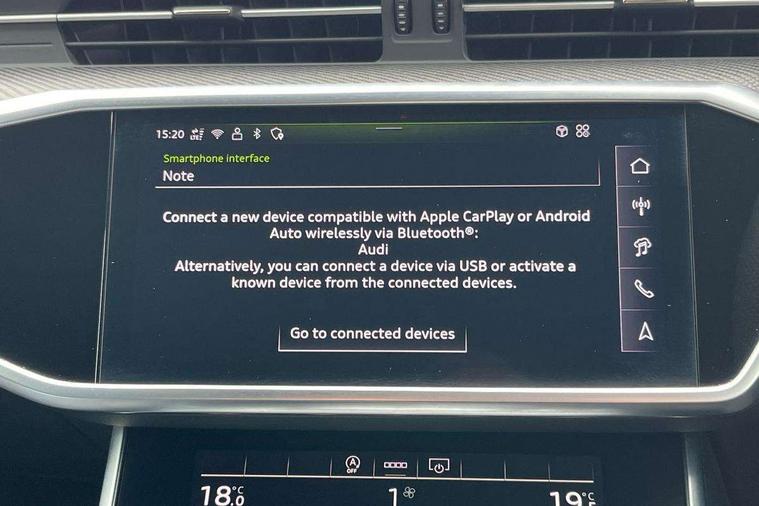 Audi connect safety and service (e-call), Audi connect with Amazon Alexa Integration, Audi drive select, Audi parking system plus - acoustic and visual park assist system for front and rear, Audi virtual cockpit, Automatic start/stop system with coasting functionality, Bluetooth interface, Camera based traffic sign recognition, Lane departure warning system, MMI navigation plus with 10.1" and 8.6" touch screens, Power operated tailgate, Progressive steering, Rear view camera, Service interval indicator, Smartphone interface includes wireless Apple carplay/Android Auto, Voice control system, Sports suspension, Audi front music interface, Audi sound system, Auxiliary input socket, DAB Digital radio, USB connection, Audi beam, Black roof rails, Body colour rear roof spoiler, Electric front/rear windows, Electrically adjustable heated and folding + automatically dimming exterior mirrors with memory function, Frameless auto dimming interior rear view mirror, Front intermittent wipers, Heat insulating darkened glass in side and rear windows, Heat insulating glass in windshield, LED rear lights with dynamic indicators, LED signature front daytime running light, LED third brake light, Matrix LED headlights, Matt black rear diffuser with diffuser strip and tailpipes in chrome, Matt black side air intake grille with inlay in matt aluminium, Omission of output/technology badging, Privacy glass, Radiator grille in anthracite black matt, single frame in chrome and horizontal struts in matt aluminium silver, Rain and light sensors, Rear side wing doors, Rear wiper, 2 zone deluxe electronic climate control, 40/20/40 split folding 3 rear seat bench in 3 parts with rear centre armrest, Audi phone box light, Black cloth headlining, Electrically adjustable front seats including seat height, fore/aft position, backrest angle and 4-way lumbar with memory for driver's seat, Front and rear floor mats, Front centre armrest, Front head restraints, Heated front seats, Height/reach adjust steering wheel, Illuminated door sill trims with S logo, Illuminated sun visors with vanity mirrors, Leather gear knob, Luggage compartment system, Rear headrests, Single front passenger seat, Stainless steel pedals and foot rest, Tool kit and car jack, Black styling package plus - A6 Black edition, LED Interior Ambient Lighting Pack - A6, Non smoking pack - A6, S line exterior style pack - A6, 3 point seatbelts on all seats, Airbags - Front side, front and rear including head, Audi pre-sense front, EBD - Electronic brakeforce distribution, Electromechanical parking brake, Electronic Stability Control (ESC) including ABS, ASR and EDL, Extended pedestrian protection measures, ISOFIX child seat mounting for front passenger seat and ISOFIX child seat mounting with Top Tether for outer rear seats, Manual child proof rear door locks, Seatbelt monitoring, Tyre pressure warning light, Warning triangle and first aid kit, Anti theft alarm with tow away protection, Anti-theft wheel bolts and wheel loosening detection, Immobiliser, Keyless Go, Remote central locking, Carbon twill inlays,