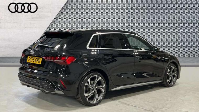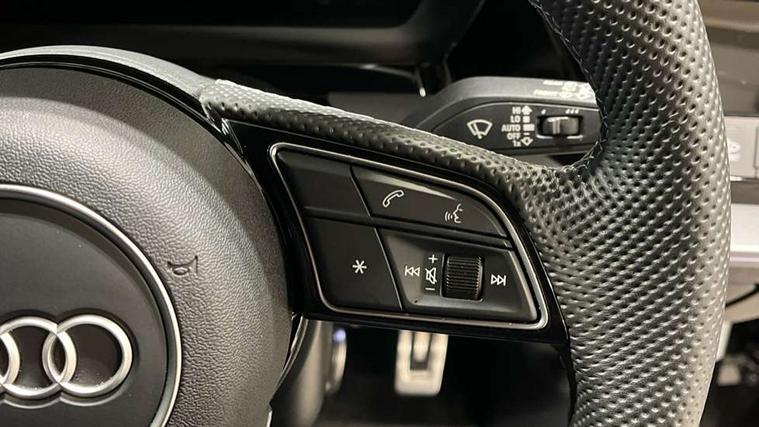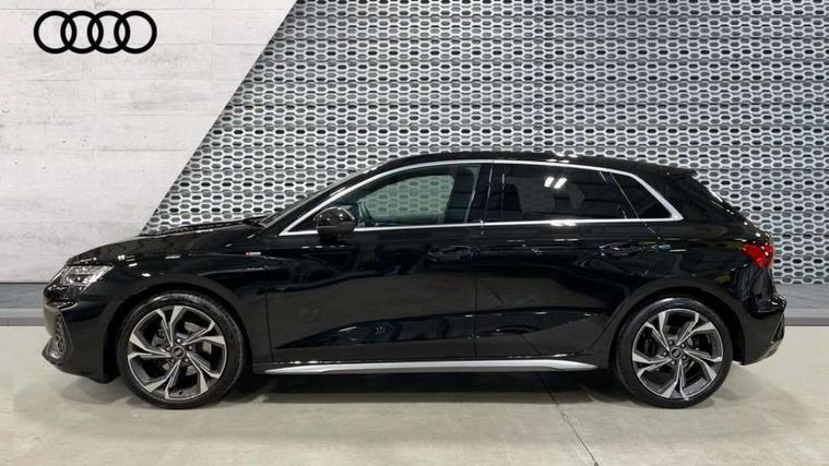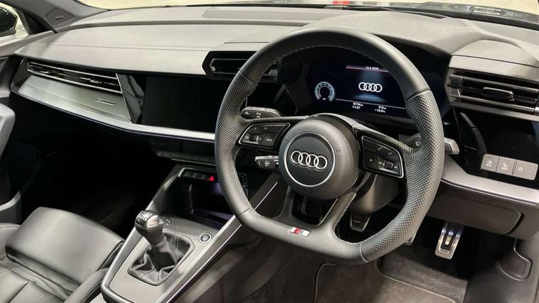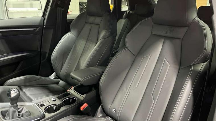 Adaptive cruise control (ACC), Adjustable speed limiter, Audi drive select (Auto, Comfort, Dynamic, Efficiency and Individual), Audi virtual cockpit plus - 12.3" full HD resolution dynamic digital instrument cluster, Automatic start/stop system with recuperation, Bluetooth interface, Camera based traffic sign recognition, Collision avoidance assistant, Driver attention and fatigue detection, e-Call (emergency call), Electromechanical power speed sensitive steering, Intersection assist, Lane departure warning system, MMI Navigation Plus with high resolution 10.1" colour touch screen display, Park Assist with parking system Plus, Reversing camera, Service indicator, Smartphone interface with app store includes wireless Apple carplay, Android auto and Amazon alexa integration, Trip computer, Voice control system with natural language interaction, Sports suspension, Audi Phonebox light with wireless charging, Audi sound system - 10 loudspeakers including centre loudspeaker and subwoofer, DAB Digital radio, USB ports with charging function in the rear, Acoustic glass windscreen, All weather light, Aluminium window trim, Auto dimming frameless rear view mirror, Automatic dynamic range control, Body colour exterior mirrors, Dipped beam, main beam, position light and turning light, Electrically adjustable/heated/folding/auto dimming door mirrors with integrated LED indications + kerb view function for passenger side, Exterior model badging, Front and rear side air inlets in grained matt black with dark liquid chrome frame, Front electric windows, Front radiator grill in high gloss dark chrome, Heat insulating glass windscreen, Illuminated door sills with aluminium inserts at the front with S logo, Intersection light, Invisible tailpipe, LED 3rd brake light, LED brake lights, LED daytime running x3, LED headlights with LED rear lights and dynamic rear indicators, LED rear number plate lights, LED reverse light, LED tail lights, Light and rain sensors, Manoeuvring light, Motorway light, Privacy glass - dark tinted rear window, rear door and side windows, Rear diffuser and grill in grained matt black with inlay in dark liquid chrome, Rear electric windows, Rear side wing doors, Rear wiper, S line bumpers, S roof spoiler, Side S line emblems on front wings, Side sill trim in dark liquid chrome, Static cornering light, 12V socket and storage compartment in front centre console, 3 seat bench in 2nd row, 3 spoke flat bottomed multi-function leather sport steering wheel, 3-zone deluxe automatic air conditioning, 4 way electrically adjustable lumbar support for driver and front passenger, 40/20/40 split folding rear seat bench, Black cloth headlining, Black front and rear floor mats, Front and rear centre armrest in artificial leather with contrasting stitching on armrests and instrument panel, Front and rear headrests, Heated front seats, Height and reach adjustable steering wheel, i-Size child seat mounting on the front passenger side and outer rear seats, i-Size and top tether on the outer rear seats, Manual boot compartment lid, Manually adjustable front seats, Rear centre armrest with cupholder, S badging on the steering wheel, Seat side bolsters, Single front passenger seat, Stainless steel pedals and front footrest in black, Twin leather upholstery with front sports seats S embossed logo, Aluminium interior elements pack - A3, Multi-coloured LED interior lighting package with Multi-coloured contour lighting of instrument panel - A3, 3x3 point rear seat belts, Driver and front passenger airbag with passenger airbag deactivation, Electronic Stabilisation Control (ESC) including ABS, ASR and EDL, First aid kit with warning triangle and 2 safety vests, Front side airbags with head airbags and interaction airbag, Hill hold assist, Pre-sense front with pedestrian and cyclist detection, Seatbelt monitoring, Tyre pressure loss indicator, Anti theft alarm, Anti-theft wheel bolts, Electronically operated child locks, Immobiliser, Black dashboard, Inlay in dark aluminium spectrum,