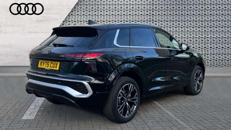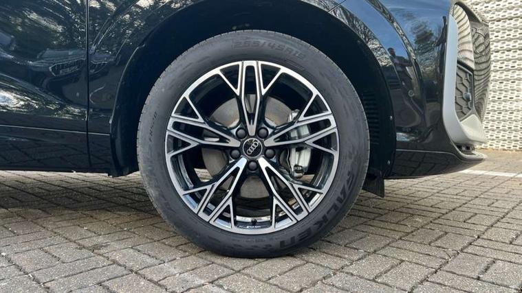 Adaptive cruise control, Audi connect emergency call and service, Audi connect remote and controls, Audi drive select (Balanced/Individual, effeciency, comfort and dynamic), Audi virtual cockpit plus - 11.9" display, Bluetooth interface, Camera based traffic sign recognition, Driver attention and fatigue monitor with driver monitoring, Front cross traffic assist, Lane departure warning with emergency assist, Panoramic curved display with 12.8" MMI navigation plus and MMI touch, Park assist plus with parking system and 360 display, Phonebox light with wireless charging, Reversing camera, Smartphone interface includes wireless Apple carplay/Android Auto, Start/stop system, Swerve assist and turn assist, Traffic sign based speed limiter, Voice control system with natural language interaction, 3 pin 10 amp domestic charging cable, Charging socket CCS type 2, Comfort suspension, Compact charging system, Industrial connector CEE 32A, 230V, Mode 3 charging cable for public charging, 22 KW (AC), Petrol Particulate Filter, 2 USB-C ports with charge and data functions, Audi sound system with 10 loudspeakers, subwoofer, 8 channel amplifier with 260 watts, DAB digital radio module, Acoustic glass for front door windows, Acoustic windscreen, Aluminium roof rails, Aluminium window trim, Audi Q3 lettering on the B-pillars, Auto dimming door mirrors, Auto dimming rear view mirror, Body colour door mirrors, Contrasting finish in volcano grey, Electrically folding, adjustable and heated door mirrors with integrated LED side indicators and kerb view function for passenger side, Full paint finish, Illuminated door sills with aluminium inserts at the front with S logo, LED daytime running lights, LED headlights plus with LED rear lights pro with continous light strip, illuminated Audi rings, rear, LED third brake light, Loading sill protector in stainless steel, Main beam assist, Privacy glass - dark tinted rear window, rear door and side windows, Projection light in the exterior mirrors - Projects a graphic element onto the ground, Q3 badging on the rear, Rain and light sensors, Rear side wing doors, Rear window, rear door windows and rear side windows in clear glass, Rear wiper, Sports bumpers, 3 seat bench in 2nd row, 3 spoke flat top and bottomed leather multi function sport steering wheel with gear shift paddles and "S" badging, 3-zone deluxe automatic air conditioning, 4 way lumbar support for the front seats - electric with horizontal and vertical adjustment in four directions, Black cloth headlining, Convenience auxiliary air conditioning, Front and rear floor mats, Front and rear headrests, Front centre armrest, Heated front seats, Height and reach adjustable steering wheel, Interior storage compartment, Leather/artificial leather upholstery combination with S emblem + front sports seats, Luggage compartment lid, electrically opening and closing, Manual front seats with height adjustment, Rear seat bench plus with split folded 40:20:40, Single front passenger seat, Stainless steel pedals, Steering wheel operating unit, gloss black, Storage compartment in front centre console, Ambient lighting package pro - Q3, S line exterior styling pack - Q3, 3x3 point rear seatbelts, Acoustic vehicle alerting system, Convenience key with safelock, Driver and front passenger airbag with passenger airbag deactivation, Electromechanical parking brake, Electronic stabilisation control including ABS, ASR and EDL, First aid kit with warning triangle and high visibility vests, Front emergency brake assist, Hill hold assist, i - Size child seat mounting on the front passenger side and i - Size and top tether on the outer rear seats, Power operated child locks, Seatbelt monitoring, Three point automatic belts with belt tensioner and height adjustment, Tyre pressure loss indicator, Anti theft wheel bolts, Remote central locking, Thatcham approved category 1 anti theft alarm, Dark aluminium divergence inlay, Interior elements in dinamica microfibre, Interior trims in aluminium look, Tool kit and Jack, Tyre repair kit,