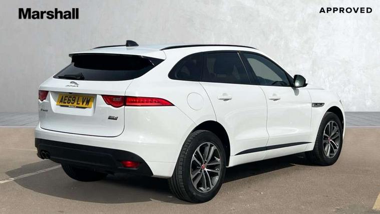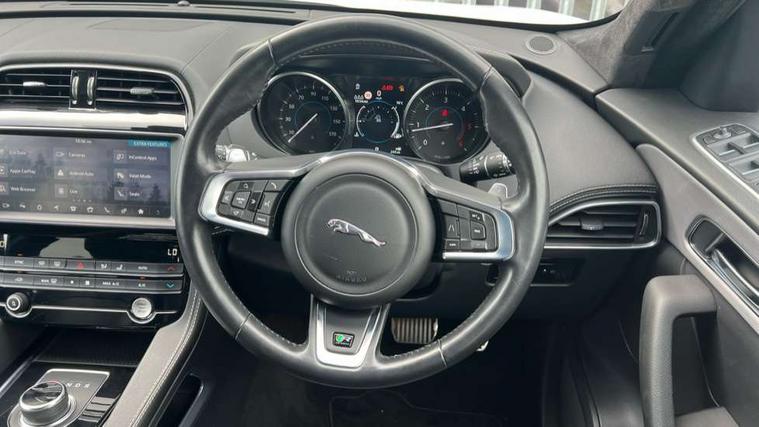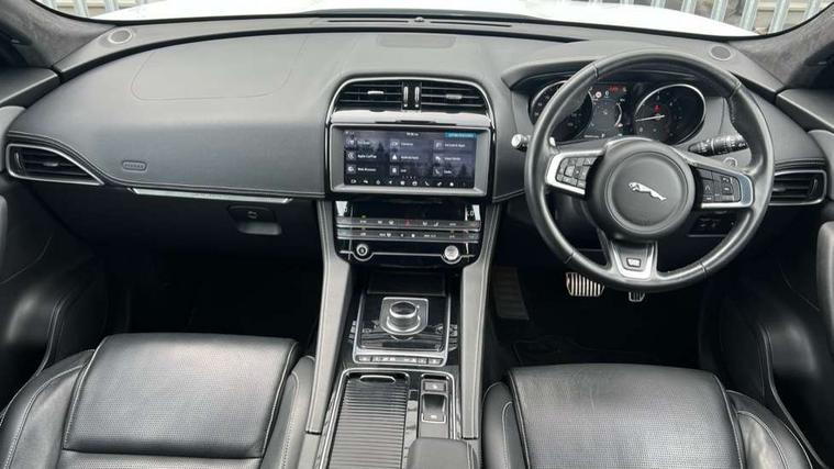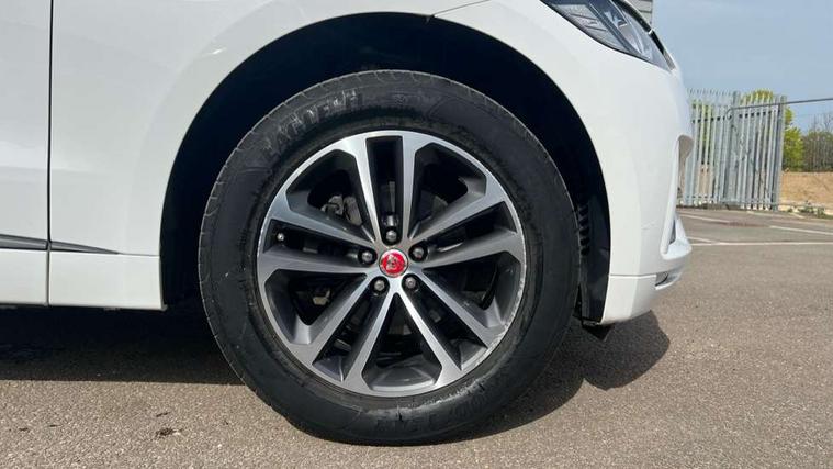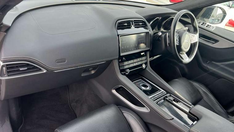 Analogue dials with 7" central TFT display, Android Auto, Apple car play, Driver condition monitor, Eco driving style assistant, Electric power assisted steering, InControl remote premium, JaguarDrive control, Lane departure warning system, Lane keep assist with driver alert control, Outside temperature gauge, Pro services and wifi hotspot, Push button starter, Rotary shifter, Service interval indicator, Speed proportional steering, Start up sequence with movement in dials and lighting, Traffic sign recognition with adaptive speed limiter, Trip computer, Voice control system, 8 speed automatic transmission, All terrain progress control, All Wheel Drive (AWD), Open differential with torque vectoring by braking, AM/FM radio, Bluetooth connectivity including audio streaming, DAB Radio (Digital Audio Broadcasting), Dynamic volume control, InControl apps, InControl protect, 3 flash lane change indicators, Antenna roof pod in gloss black, Approach Illumination, Auto dimming rear view mirror, Automatic headlights, Body colour bumpers, Body colour door mirrors, Electric front/rear windows with one touch/auto up/down, Front fog lights, Green tinted heat insulating glass, Headlight power wash, Heated rear window with timer, LED tail lights, Non acoustic front windscreen, R-sport body kit, R-Sport front bumpers, R-Sport rear bumpers, Rain sensor windscreen wipers, Rear fog lights, Rear metal tread plates, Rear wiper, Single sided twin tailpipes with 75mm finishers, Trailer stability assist, Variable front intermittent wipers, 12V power point front, 3 rear headrests, 40:20:40 split folding rear bench seat, Bright metal foot pedals, Centre armrest console, Door sill tread plates, Fold flat front seats, Front centre armrest with storage compartment, Front headrests, Glovebox finisher with jaguar script, Hooks in loadspace, Illuminated glovebox, Illuminated luggage compartment, Interior front door handles with separate locking switches, ISOFIX on outer rear seats, Jaguar sense, Luggage tie downs in loadspace, Multifunction steering wheel, Overhead lighting console, Passive front head restraints, Perforated grained leather upholstery with contrast stitching, Premium carpet mats, R-Sport branded soft grain leather sport steering wheel, Rear air vents, Rear armrest with twin cupholders, Rear centre headrest, Reversible boot floor, Satin chrome gearshift paddles, Sunvisors with illuminated vanity mirrors, Twin front cupholders with cover, 3x3 point rear seatbelts, ABS, All surface progress control (ASPC), Anti-whiplash front headrests, Autonomous emergency braking (AEB) with forward facing camera, Brake pad warning light, Driver/Front Passenger airbags, DSC - Dynamic Stability Control, Electronic parking brake, Front and rear curtain airbags, Front and rear seatbelt reminder, Front passenger seat occupancy sensor, Front side airbags, Hill launch assist, Power operated child locks, Three 3 point rear seatbelts, Torque vectoring brake, Traction control, Tyre pressure monitoring system, Unpainted brake calipers, Immobiliser, Keyless start, Locking wheel nuts, Perimeter alarm, Remote central locking, Valet mode, Luxtec door trim, Luxtec wrapped instrument panel topper with wrapped binnacle, Satin chrome centre console storage surround finishers, Satin chrome touchscreen surround,