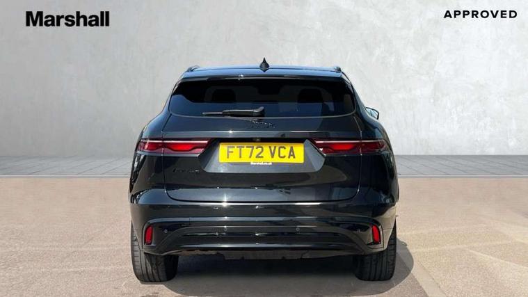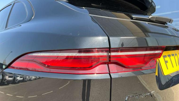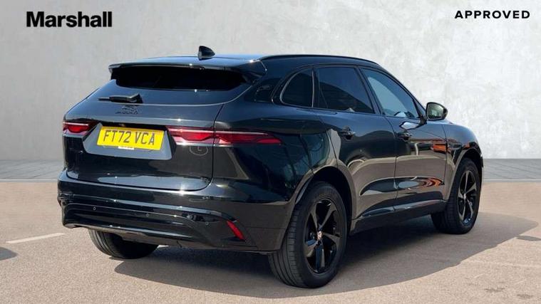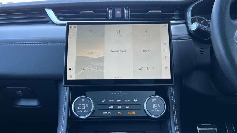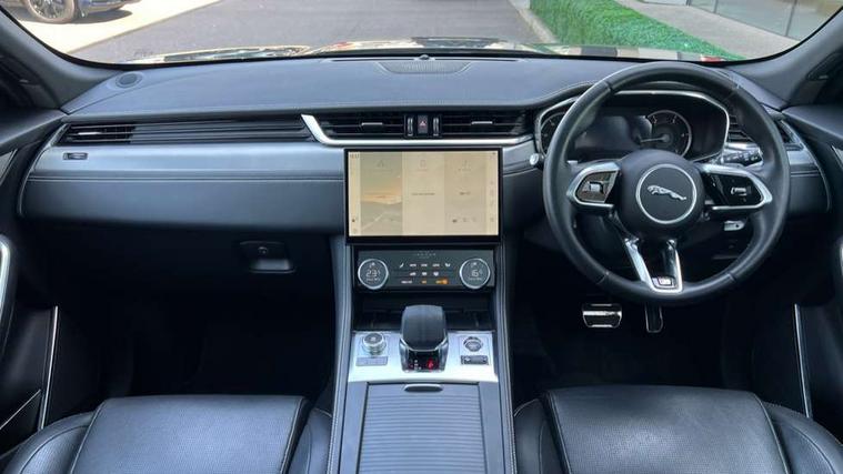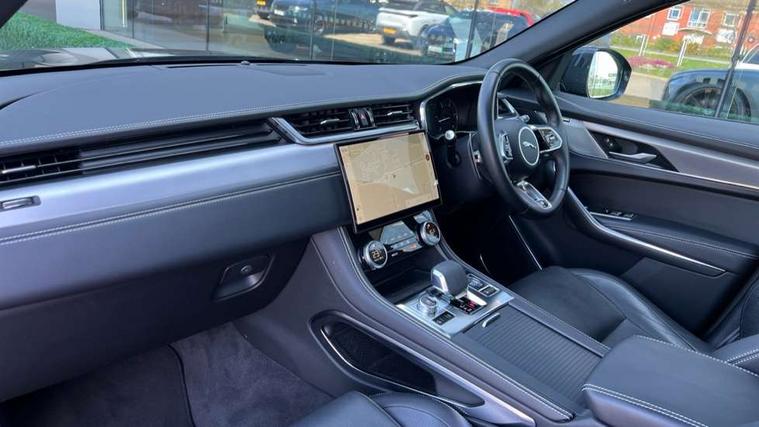 11.4" touchscreen, Android Auto, Apple car play, Blind spot assist, Bluetooth connectivity, Clear exit monitor, Driver alert system, Driver condition monitor, eCall emergency call system, Eco driving style assistant, Electric power assisted steering, InControl remote, Jaguar Toggle shift selector, Lane departure warning system, Lane keep assist, Outside temperature gauge, Personalisation profile management, Pivi pro connected navigation system with app interface and media storage, Pro services and wifi hotspot, Push button starter, Rear traffic monitor, Service interval indicator, Speed proportional steering, Start up sequence with movement in dials and lighting, Traffic sign recognition with adaptive speed limiter, Trip computer, Voice control system, 8 speed automatic transmission, All terrain progress control, All Wheel Drive (AWD), Open differential with torque vectoring by braking, AM/FM radio, Bluetooth streaming, DAB Radio (Digital Audio Broadcasting), Dynamic volume control, InControl apps, InControl protect, iPod integration, 3 flash lane change indicators, Animated directional indicators, Approach Illumination, Auto dimming rear view mirror, Automatic headlights, Body colour door mirrors, Electric heated/power fold memory door mirrors with approach lights and auto dimming driver side, Electric windows with one touch open/close and anti trap, F-Pace and R Dynamic badge, Green tinted glass, Heated front windscreen + heated washer jets, Heated rear window with timer, Jaguar script and leaper, LED High level third brake light, LED tail lights, Non acoustic front windscreen, R Dynamic badge on side door, Rain sensor windscreen wipers, Rear fog lights, Rear metal tread plates, Rear side wing doors, Rear wiper, Trailer stability assist, Variable front intermittent wipers, 12V power point front, 3 rear headrests, 3 seat bench in 2nd row, Air distribution speed, Bright metal foot pedals, Centre armrest console, Centre console with side storage, Deletion loadspace storage rails, Door sill tread plates, Fold flat front seats, Front centre armrest with storage compartment, Front door storage space, Glovebox finisher with jaguar script, Heated steering wheel, Hooks in loadspace, Illuminated glovebox, Interior front door handles with separate locking switches, ISOFIX on outer rear seats, Jaguar sense, Luggage tie downs in loadspace, Mist sensing, Multifunction steering wheel, Overhead lighting console, Overhead stowage for sunglasses, Passive front head restraints, Premium cabin lighting, Premium carpet mats, R-Dynamic branded leather steering wheel, Rear air vents, Rear armrest with twin cupholders, Rear centre headrest, Rear door storage space, Reversible boot floor, Satin chrome gearshift paddles, Shopping bag hook, Single front passenger seat, Sunvisors with illuminated vanity mirrors, Twin front cupholders with cover, Online Pack with data plan - F-Pace, 355mm front brakes and 325mm rear brakes, 3x3 point rear seatbelts, ABS, All surface progress control (ASPC), Brake pad warning light, DSC - Dynamic Stability Control, Electric parking brake (EPB), Emergency brake assist, Front airbags with passenger seat occupant detector, Front and rear seatbelt reminder, Front side airbags, Full length side window curtain airbag, Hill launch assist, Power operated child locks, Torque vectoring brake, Traction control, Tyre pressure monitoring system, Immobiliser, Keyless entry, Keyless start, Locking wheel nuts, Perimeter alarm, Remote central locking, Valet mode,