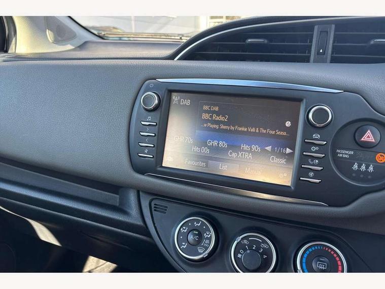 Bluetooth system, Cruise control, External temperature gauge, Fuel indicator with low level warning, Lane departure warning system, Lights on warning, Multi-information display, Power Steering, Rear view camera, Road sign assist - RSA, TFT display screen, Trip computer, 6 speakers, Auxiliary input socket, DAB Digital radio, Steering wheel mounted audio/telephone controls, Touch 2 touchscreen Radio with iPod connectivity, USB connection, 2 speed front wipers + intermittent wipe, Auto high beam, Auto up and down function on drivers window, Body colour bumpers, Body colour door handles, Body coloured door mirrors, Chrome fog light surround, Daytime running lights, Door mirror integrated indicators, Drivers window one touch up/down, Electric adjustable heated door mirrors, Electric front windows, Follow me home headlights, Front fog lights, Green tinted glass, Heated rear windscreen, Projector headlights, Rain sensitive windscreen wipers, Rear wiper, Turning signal integrated indicators in door mirrors, 3 spoke leather steering wheel, 60/40 split folding rear seat, Active headrests, Boot light, Cloth upholstery, Driver seat height adjust, Driver/passenger vanity mirrors with covers, Front cupholders x 2, Front map reading lights, Front seats with lumbar support, Glovebox, Height adjustable front head restraints, Height adjustable rear seat head restraints (x3), Isofix system on outer rear seats, Leather gear knob, Manual air conditioning, Rear cupholder, Removable rear parcel shelf, Sliding front seats, Tilt/telescopic steering column, 3 point seatbelts on all rear seats, ABS+EBD+Brake assist, Collision mitigation braking system, Curtain airbags, Driver and passenger airbags, Drivers knee airbag, Emergency brake light system (EBS), Front passenger airbag on/off switch, Front seatbelt reminder, Front side airbags, Height adjustable front seatbelts with pre-tensioners and load limiters, Hill start assist control (HAC), Passenger airbag deactivate switch, Rear child proof door locks, Rear seat belt reminder, Road sign information display, Seatbelt warning lamp and buzzer, Toyota safety sense including Road sign assist, Pre collision system, auto high beam and lane departure alert), Tyre pressure monitoring system, Vehicle stability control VSC + traction control, Engine immobiliser, Remote central locking, Instrument panel in grey, Space saver spare wheel,