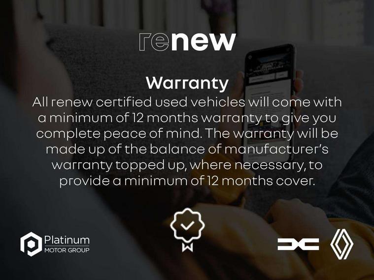 4.2" TFT Driver information display, Cruise control + speed limiter, EasyLink 7" touchscreen with navigation, google search and traffic information, Eco mode, Gear change indicator, Lane departure warning system, Lane keep assist, Rear parking sensor, Renault automatic emergency assist, Smartphone integration compatible with Apple CarPlay and Android Auto, Traffic sign recognition with over speed prevention, Trip computer, Variable assistance power steering, DAB Radio with Bluetooth and USB, 2 reverse gear LED lamps and 1 rear LED fog lamp in the bumper, Automatic front wipers with rain sensors, Automatic headlights, Black side door protection, Body colour door handles, Body coloured bumpers, Body coloured door mirrors, Day time running light, Drivers one touch window with anti-pinch feature, Extra tinted glass in rear windows and tailgate, Front and rear electric windows, Full LED headlights, Grey front and rear skid plate, LED front fog lights, LED high level brake lights, LED turn indicators on door mirrors, Rear side wing doors, Rear wiper, 12V Accessory socket, 3 rear headrests, 60/40 split and fixed base rear seat bench, Automatic climate control with one touch demist function and air quality regulator, Centre console storage tray, Cloth upholstery, Front head restraints, Glovebox, Heating system with pollen filter, Height adjustable driver's seat, Height/reach adjust steering wheel, ISOFIX child seat fixing points on rear outermost seats, Middle console with armrest and storage, Rear air vents, Single front passenger seat, Sliding rear bench, Standard bulb in front roof lights, Synthetic leather steering wheel, 3 rear seatbelts, ABS+EBA, Distance warning alert, Driver and front passenger, side, head and curtain airbags, Driver height adjustable seat belt, Electric parking brake, Electronic stability control, Front and rear no seatbelt warning sound, Front dash warning indicator in case of heavy braking, Front driver and passenger side airbag deactivation, Hill start assist, Rear door and window child locking function for rear door, Tyre pressure warning light, Anti drill door locks and locking fuel cap, Central door locking, Deadlocking system, Hands free keycard with push button and start/stop function, RAID (Renault Anti-Intruder Device) automatic door locking, Black soft touch dashboard, 17" Ediris diamond cut alloy wheels,
