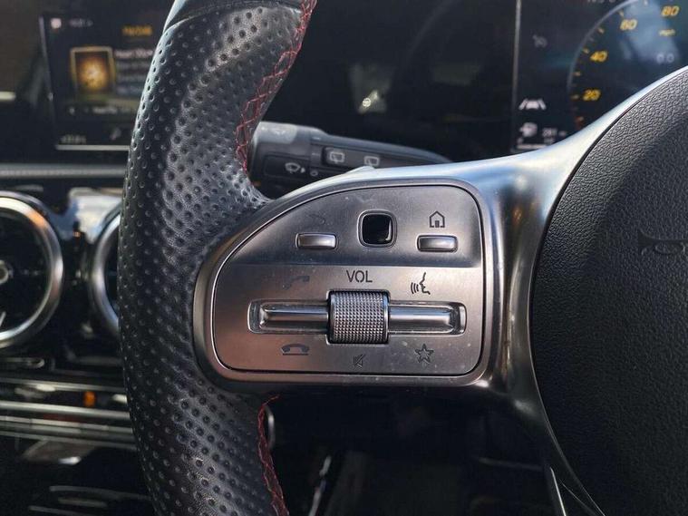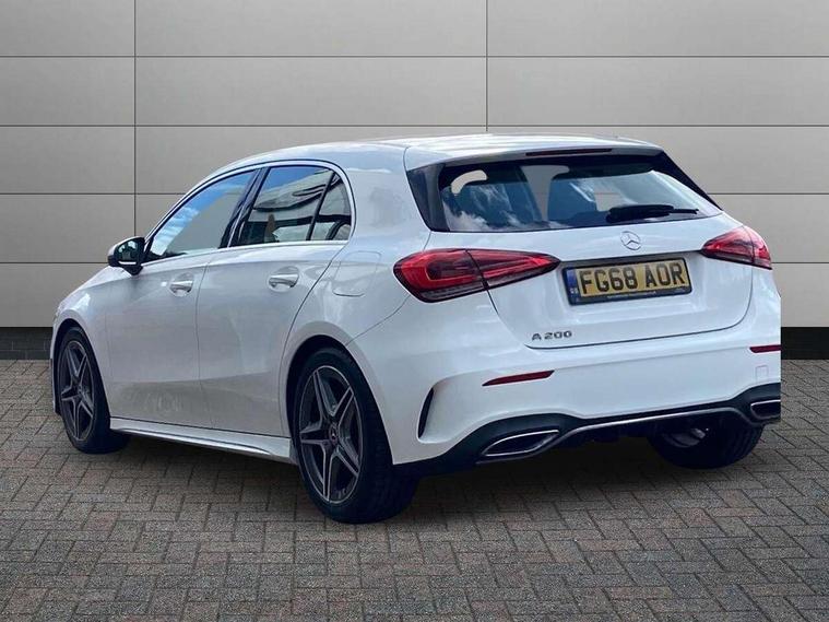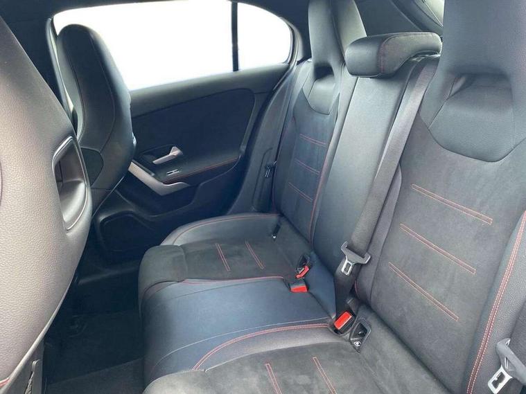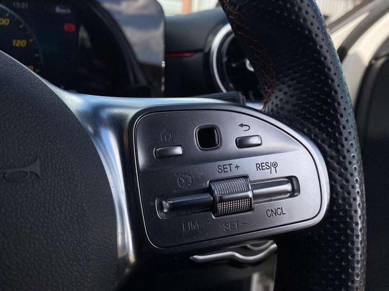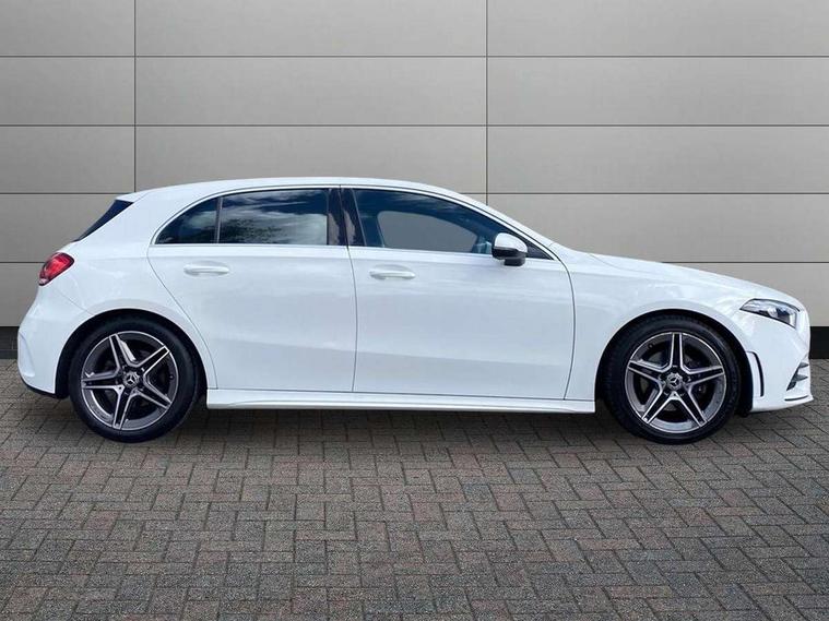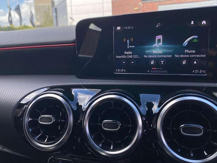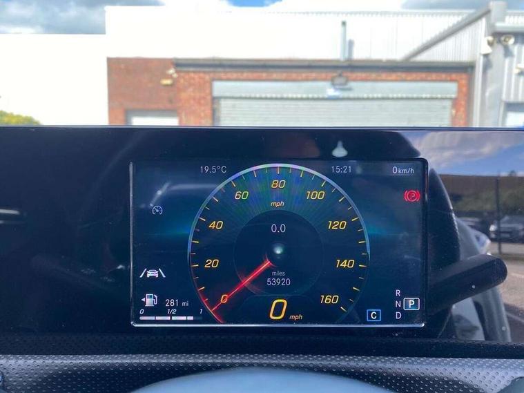 7" colour screen in instrument panel, 7" tablet style colour display, Active lane keep assist, Attention assist, Bluetooth interface for hands free telephone, Bulb failure indicator, Cruise control + speed limiter, Direct steering, DYNAMIC SELECT with a choice of driving modes (ECO, Comfort, Sport, Sport+ and Individual), External temperature gauge, HDD Navigation system, Low fluid warning light, Mercedes connect me with remote online services, Radio aerial integrated into roof spoiler, Reversing camera, Service indicator (ASSYST PLUS), Speed sensitive power steering, Stop/start system, Trip computer, Voice control system, Warning lamp for direction indicators, Lowered comfort suspension, 2 USB ports in centre console, DAB Digital radio, MBUX Multimedia system including digital instrument cluster and phone mirroring, Adaptive brake lights, AMG body styling, Body colour bumpers, Body colour door handles, Body colour side skirt, Body coloured door mirrors, Chrome beltline trim, Diamond radiator grille with chrome pins and silver louvre + chrome insert, Electric adjustable heated door mirrors, Electric front windows, Electric rear windows, Headlamp assist, Heated rear window with timer, High level third brake light, LED daytime running lights, LED Headlights, LED rear lights, Rain sensor windscreen wipers, Rear fog lights, Rear wiper, Twin Trapezoidal tailpipes, 1/3 to 2/3 split folding rear seats, 12V socket, 3 spoke flat bottomed nappa leather sport steering wheel, AMG floor mats with red stitching, Artico man-made leather/Dinamica upholstery, Auto Mercedes-Benz child seat recognition sensor, Black headlining, Brushed stainless steel sports pedals with rubber studs, Controller on centre console with chrome surround, Dual zone automatic climate control, Exit lights, Footwell lights, Front and rear reading lights, Front centre armrest with storage compartment, Front door sills with Mercedes Benz lettering, Front head restraints, Front seat backs luggage nets, Front sport seats, Gearshift paddles on steering wheel, Height adjustable front seats, Height/reach adjustable steering column, Illuminated cup holders, Illuminated glovebox, Illuminated storage compartment, Integrated head restraints, Interior door handle illumination, Isofix rear child seat preparation, Load securing rings in luggage compartment, Luggage compartment cover, Multifunction steering wheel, Oddments tray lighting, Reading lights, Rear head restraints, Storage compartment under load area floor, Sunvisors with illuminated vanity mirrors, Touchpad, Twin front cupholders, Seat comfort pack - A Class, 3 rear 3 point seatbelts, ABS with Brake Assist, Active bonnet, Brake calipers with Mercedes-Benz lettering + perforated brake discs, Child proof door locks, Crash responsive emergency lighting, Drivers knee airbag, Dual stage driver/passenger airbags, Electronic parking brake, ESP with ASR, Front and rear seatbelt reminder, Front head airbags, Front passenger seat occupancy sensor, Front side airbags, Hill start assist, Tyre pressure monitoring system, Warning triangle and first aid kit, Window airbags, Alarm system/interior protection/immobiliser, Keyless ignition, Remote central locking, Chrome air vent surrounds, 18" AMG 5 twin spoke light alloy wheels in titanium grey with highsheen finish, Tirefit sealant with electric air pump,