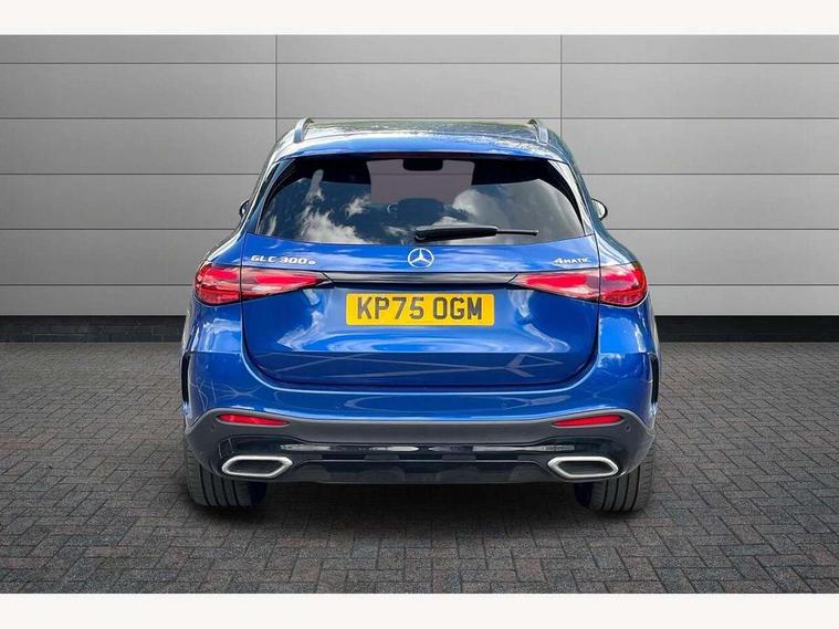 11.9" high resolution multimedia colour display, 12.3" Digital individually configurable instrument display, Acoustic presence indicator, Active lane keeping assist, Attention assist, Blind spot assist, Bluetooth interface for hands free telephone, Collision prevention assist plus, Direct steer speed sensitive steering, DYNAMIC SELECT with a choice of driving modes (ECO, Comfort, Sport and Individual), eCall emergency call system, ECO start/stop function, Fingerprint scanner, Fluorescent jacket for driver, Hard disc navigation, Head up Display, Instrument display in miles with English lettering, MBUX augmented reality for navigation, MBUX navigation premium, MBUX voice control activated by keywords "Hey Mercedes", Mercedes me connect, Multi function trip computer, Outside temperature display, Remote and charging services plus, Remote boot release, Road sign recognition system, Service indicator (ASSYST), Smartphone integration, Status display for rear seat belts in instrument cluster, Tailgate, Traffic sign assist, Wireless charging system for mobile devices in the front, 1 x type 2 and 3 phase 4m straight wallbox cable, 49 litre fuel tank, 4MATIC permanent four wheel drive, 7.4 kW monophase on board charger, 9G TRONIC plus automatic transmission, Alternating current charging system (AC charging), DC Charging system, Petrol Particulate Filter (PPF), Residual engine heat utilisation, Self levelling suspension, Burmester 3D surround sound system, DAB digital radio tuner, MBUX extended functions, Pre installation for Mercedes Benz Link, Sound personalisation, Adaptive brake lights, Adaptive high beam assist plus, Aluminium look running boards with rubber studs, AMG bodystyling front apron, rear apron and side skirts, AMG Line exterior, Auto headlights, Black roof rails, Body colour bumpers, Body colour door mirrors, Digital light LED headlights, Electric panoramic glass sunroof, Electrically adjustable door mirrors, EQ Hybrid badging on front wings, Front and rear electric windows, Headlight washers, Heat and noise insulating acoustic glass, Heat insulating dark tinted glass, Heated rear window, High level LED brake light, Integrated LED daytime running lights, LED indicator lights, LED rear fog lights, LED tail lamp, Motor way mode function and locator lighting, Radiator grille with Mercedes Benz pattern and integreated Mercedes star and louvre in dark grey matt with chrome inlay and black frame, Rain sensor windscreen wipers, Range adjustable headlights, Rear side wing doors, Rear wiper, Transparent Bonnet, Two chrome plated tailpipe trim elements, Variable front intermittent wipers, Welcome and follow-me home light functionality, Wheel arch liners in the vehicle colour, 3 seat bench in 2nd row, 40:20:40 split folding rear seats, Ambient lighting premium with projection of brand logo, AMG floor mats, AMG line interior, Artico man-made leather upholstery, Audio and onboard settings control on multifunction steering wheel, Automatic child seat recognition sensor, Black fabric roof lining, Comfort seats, Double cup holder in centre console, Easy-pack removable load compartment cover, Electrically height/reach adjustable steering column, Front centre armrest with stowage compartment, Front head restraints, Galvanised steering wheel gearshift paddles, Heated front seats, Heated steering wheel, Illuminated door sill panels with Mercedes Benz lettering, Illuminated glove compartment, Instrument panel and beltlines in ARTICO manmade leather in nappa look, Multicontour and climatised front seats, Multifunction sports steering wheel in nappa leather, Partition net, Rear centre headrest, Rear head restraints, Rear top tether child seat ISOFIX attachment, Single front passenger seat, Sports pedals with stainless steel surfaces and rubber studs, Sun visors, THERMATIC automatic climate control, Anti theft protection package - GLC, Boot comfort package - GLC, Easy tailgate pack - GLC, Exterior chrome package - GLC, Interior chrome package - GLC, Interior lighting pack - GLC, Keyless-Go comfort package - GLC, Memory pack - GLC, Mirror pack - GLC, Night package - GLC Urban Edition, Parking package with 360 degree camera - GLC, Stowage space package - GLC 300e/300de, USB Plus Pack - GLC, 3 rear 3 point seatbelts, Anti-lock braking system (ABS), ASR traction control, Automatic front passenger airbag deactivation, Black seat belts, Brake calipers with Mercedes-Benz lettering + perforated brake discs, Child proof door locks, Dual-stage airbags - driver and front passenger, driver knee bag and window bags for driver, front passenger and rear passengers, Electronic parking brake, Electronic stability programme (ESP) with curve dynamic assist and cross wind assist, Front and rear seatbelt reminder, Front passenger seat occupancy sensor, Front seatbelt pretensioners, Hill start assist, Tyre pressure monitoring system, Warning triangle and first aid kit, Automatic door locking, Guard 360 degree vehicle protection plus, Interior protection/immobiliser, Remote central locking, Black open pore aluminium lines wood trim with centre console in black fine structure, 20" AMG multi spoke light alloy wheels in painted black with high sheen finish, Summer tyres, TIREFIT with tyre inflation compressor,
