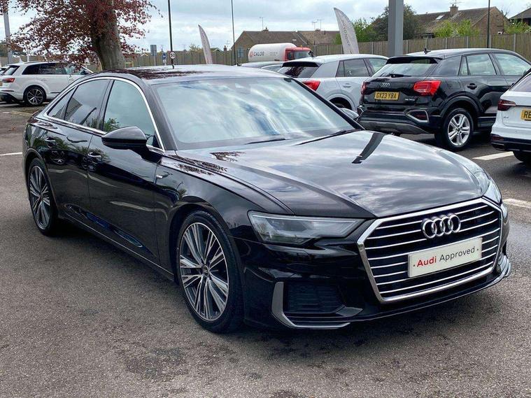 7" high resolution colour driver information display system, Audi connect safety and service (e-call), Audi connect with Amazon Alexa Integration, Audi drive select, Audi parking system plus - acoustic and visual park assist system for front and rear, Automatic start/stop system with coasting functionality, Bluetooth interface, Electric boot lid release, Lane departure warning system, Progressive steering, Rear view camera, Service interval indicator, Smartphone interface includes wireless Apple carplay/Android Auto, Voice control system, Sports suspension, Audi front music interface, Audi sound system, Auxiliary input socket, DAB Digital radio, USB connection, All weather LED headlights, Body coloured door mirrors, Electric front/rear windows, Frameless auto dimming interior rear view mirror, Front intermittent wipers, Headlight washers, Heat insulating darkened glass in side and rear windows, Heat insulating glass in windshield, LED rear lights, LED signature front daytime running light, LED third brake light, Matt black side air intake grille with inlay in matt aluminium, Privacy glass, Radiator grille in titanium black matt, single frame in chrome and horizontal struts in matt aluminium silver, Rain and light sensors, Rear boot, Rear side wing doors, S line air inlet design with inlay in matt aluminium, S Line badge on front fender, S Line front and rear bumpers, S line rear diffuser and grille in matt black with matt aluminium tailpipes, S Line side skirts, 2 zone deluxe electronic climate control, 4 way electric lumbar support for driver and front passenger, 40/20/40 split folding 3 rear seat bench in 3 parts with rear centre armrest, Black cloth headlining, Black steering wheel insert, Electrically adjustable front seats with driver memory, Front centre armrest, Front head restraints, Heated front seats, Height/reach adjust steering wheel, Illuminated door sill trims with S logo, Illuminated sun visors with vanity mirrors, ISOFIX child seat mounting and Top Tether with front passenger airbag deactivation, Leather gear knob, Rear headrests, S line front and rear black carpet floor mats with contrast stitching, Single front passenger seat, Stainless steel pedals and foot rest, LED Interior Ambient Lighting Pack - A6, Non smoking pack - A6, Technology pack - A6, 3 point seatbelts on all seats, Airbags - Front side, front and rear including head, Audi pre-sense front, EBD - Electronic brakeforce distribution, Electromechanical parking brake, Electronic Stability Control (ESC) including ABS, ASR and EDL, Extended pedestrian protection measures, Manual child proof rear door locks, Seatbelt monitoring, Tyre pressure warning light, Warning triangle and first aid kit, Anti theft alarm with tow away protection, Anti-theft wheel bolts and wheel loosening detection, Immobiliser, Keyless Go, Remote central locking, Black seatbelts, Matt brushed aluminium dark inlays,
