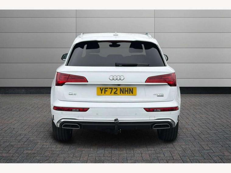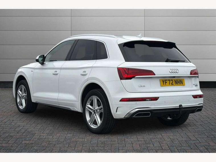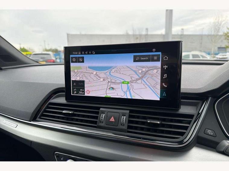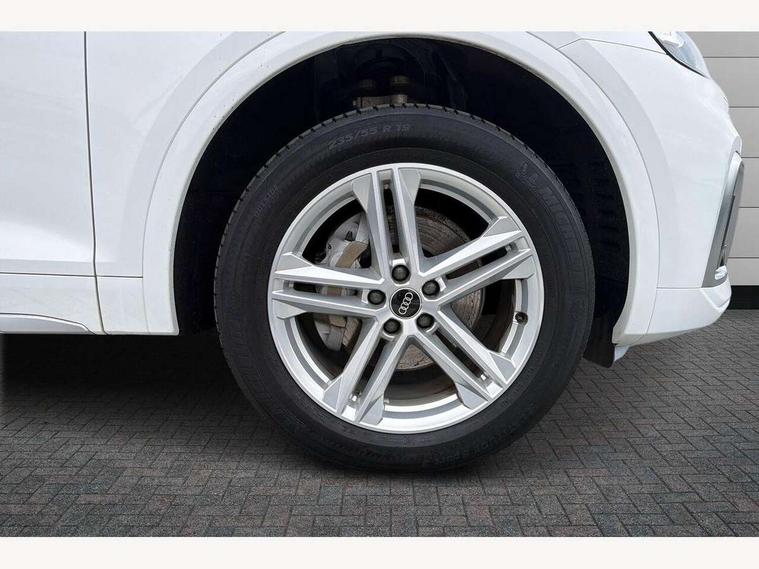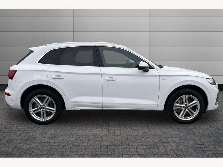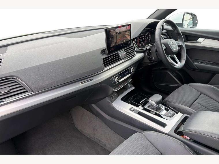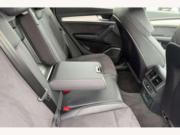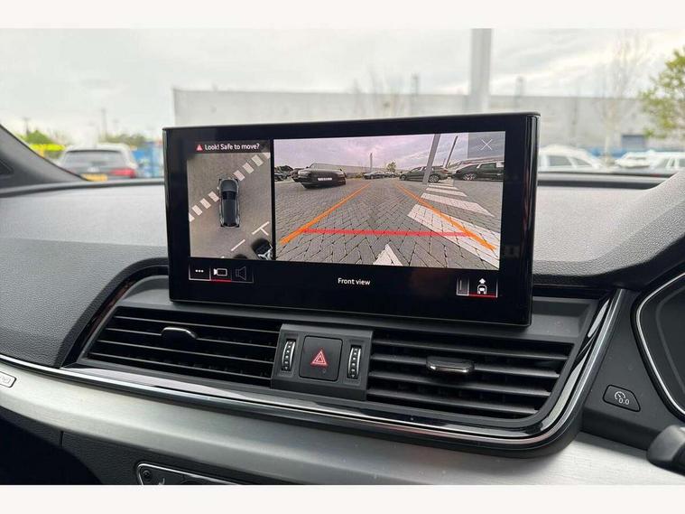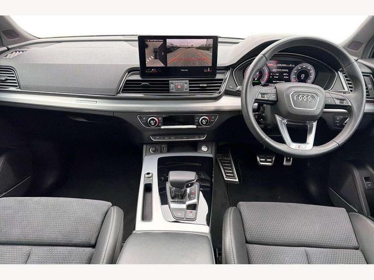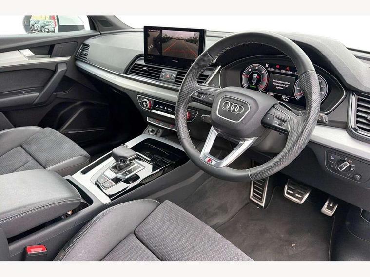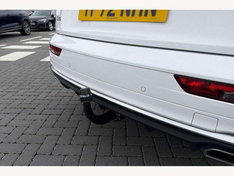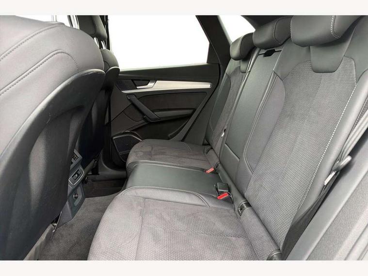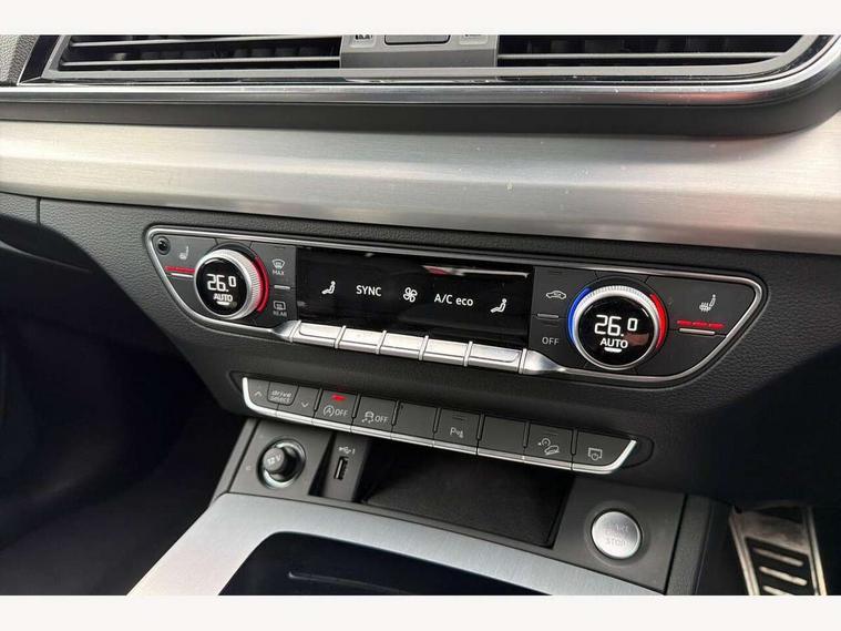 Audi connect safety and service (e-call), Audi connect with Amazon Alexa Integration, Audi drive select, Audi virtual cockpit plus with 12.3" screen and three different layout designs, Audi wireless smartphone interface, Automatic start-stop system with coasting functionality and efficiency programme, Bluetooth interface, Electro - mechanical power assisted steering, MMI navigation plus with 10.1" touch screen, Power tailgate, Reversing camera, Service interval indicator, Voice control system with Audi hotword activation "Hey Audi", Diesel particulate filter, Quattro on demand, S line sports suspension, DAB Digital radio, Acoustic windscreen, Aluminium roof rails, Audi matrix LED headlights with dynamic front and rear indicators, Auto dimming door mirrors, Auto dimming rear view mirror, Automatic headlight adjustment, Automatic headlights and windscreen wipers, Body colour bumpers, Body colour door mirrors, Body colour rear diffuser with matt aluminium silver surrounds, Body colour underbody protection, Chrome plated exhaust trims, Daytime running lights, Door sills in Selenite silver, Electric adjustable/heated/folding door mirrors, Front air inlet surrounds in aluminium, Front and rear electric windows, Front radiator grille in honeycomb design, Headlight washers, High level LED brake light, Lower bumpers painted in contrast Manhattan grey, Rear chrome trim strip below lights, Rear privacy glass and rear side windows, Rear side wing doors, Rear wiper, Roof bars, S Line badges on the front wings, S Line front and rear bumpers, S Line rear spoiler, S Line side skirts, 2 x USB charging port with aux input socket, 3 rear headrests, 40:20:40 split folding 3 rear bench seat in 2nd row with rear centre armrest, Black cloth headlining, Comfort front centre armrest, Contrast stitching on seats, steering wheel and gear lever gaiter, Deluxe 3 zone electronic climate control, Front/rear floor mats, Gear lever in black leather, Heated front seats, Height adjustable front head restraints, Height/reach adjustable steering column, Illuminated door sill trims with S logo, ISOFIX child seat mounting and top tether, Luggage compartment cover, Manual seat adjustment with 4-way electric lumbar support, Removable luggage compartment floor, Single front passenger seat, Stainless steel pedals, Sunvisors with vanity mirrors, High gloss pack - Q5, LED interior light pack - Q5, 3 point seatbelts on all seats, 6 airbags - Driver, front passenger, curtain and side airbags, Electrically operated child locks on rear doors, Electromechanical parking brake, Electronic stabilisation control including ABS, ASR and EDL, Front passenger airbag deactivation, Hill descent control, Hill hold assist, Multi collision brake assist, Pop-up bonnet for pedestrian protection, Pre sense city, Seat belt force limiter, Seatbelt monitoring, Tyre pressure warning, Warning triangle and first aid kit, Anti theft alarm, Anti-theft wheel bolts, Keyless Go access/ignition system, Remote central locking, Matt brushed aluminium inlays,