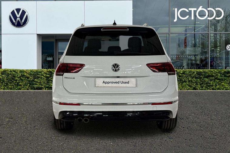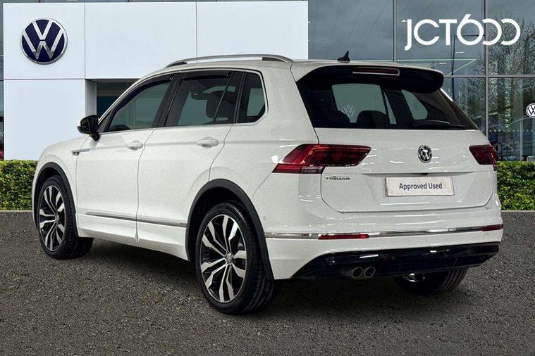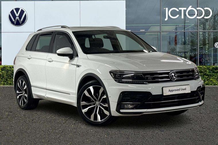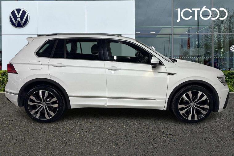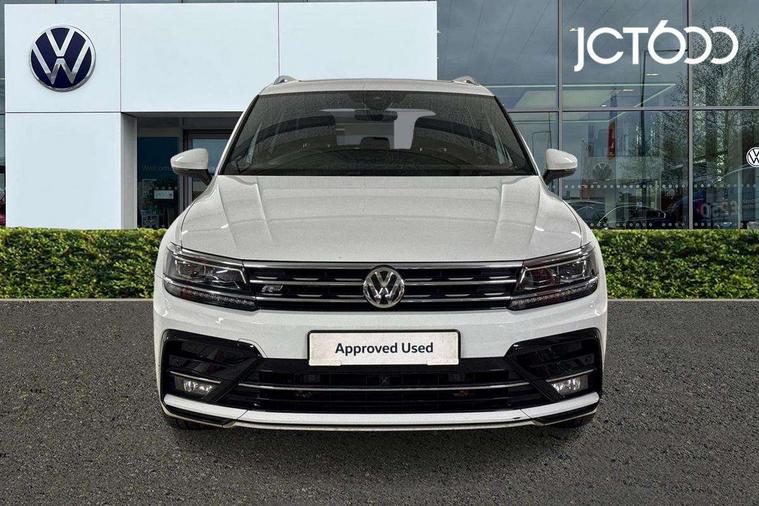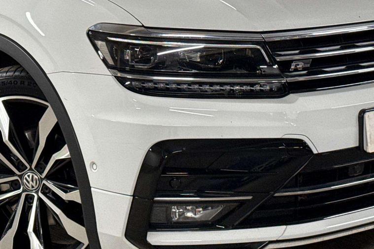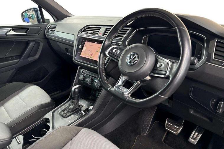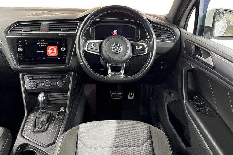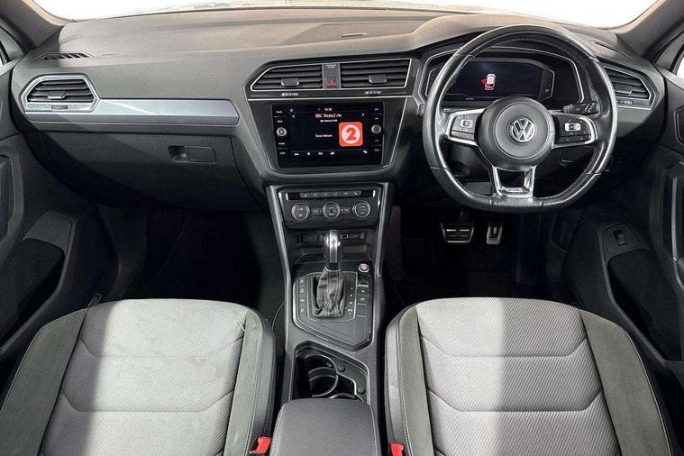 2D/3D map view, Active information display, Adaptive cruise control, App-Connect, Area view with park assist steering and front and rear parking sensors, Bluetooth phone integration system, Car information display, Distance control assist, Driver alert system with fatigue detection, Driver profile selection, Front assist, radar sensor controlled distance monitor, city emergency braking + predictive pedestrian protection, Fully electric tailgate + keyless entry and start, Instrument cluster, Lane assist, Lights on warning, Multifunction computer with visual gear change recommendation for fuel consumption, Outside temperature display, Progressive power assisted steering, Service interval indicator, Speed limiter, Start/Stop function, Warning sound and light for doors and tailgate open, Battery regeneration during braking, Diesel particulate filter, Misfuel prevention device for diesel engine, XDS electronic differential lock for improved traction and handling, 2 x USB connection + USB charging socket, 4 X 20 watt output, DAB Digital radio, SD card slot, Simultaneous pairing of 2 compatible mobile devices, SMS functionality - read, compose and send SMS messages using touch-screen display, Title and cover art display, 3D effect cherry red LED rear tail lights, Aluminium decorative inserts in dash and door panels, Auto dimming interior mirror, Automatic activation of hazard warning lights, Body colour door handles, Body colour door mirrors, Body colour rear spoiler, Body colour side skirt, Body coloured bumpers, Chrome side window surrounds, Chrome trimmed radiator grille, Coming/leaving home lighting function, Dusk sensor + auto driving lights, Electric panoramic sunroof with sunblind, Electrically heated and foldable door mirrors, door mirror puddle lights and reverse activated kerb view adjustment on passenger's door mirror, Front and rear electric windows, Heated rear window, High level 3rd brake light, LED headlights with dynamic light assist daytime running lights and cornering front fog lights, LED rear number plate lights, Piano black front air intake and rear diffuser, R Line body kit, R Line side sills, Rain sensor windscreen wipers, Rear tinted glass from B-pillar backwards approx 65% tinted, Rear windscreen washer and wiper with interval delay, Side skirts and rear bumper with chrome insert, Silver front underbody protection and rear diffuser, Silver roof rails, Trailer Stability Programme, Unique R Line badging, Windscreen wipers/ intermittent wipe + 4 position delay, 12V socket in centre console storage area, 2 cup holders in front, 3 rear headrests, 3 zone climate control, 4 load lashing points, 40:20:40 split folding rear seats, Bag hook in luggage compartment, Black headlining, Foldable front passenger seat backrest, Front + rear carpet mats, Front centre armrest with 12v socket, Front centre armrest with storage + rear 2 air vents, Front seat back storage pockets, Front seat R Line logo with rear seat backrest, Front seatback folding tables, Height/reach adjust steering wheel, Illuminated driver/passenger vanity mirrors, Illuminated scuff plates, Instrument lighting white adjustable panel illumination, Interior light with delay, Isofix Preparation 2 Rear child seats, Leather gear knob, Load through provision with 2 cupholders when folded, Lockable cooled glovebox, Luggage compartment lighting, Map pockets on front seats, Passenger seat height adjuster, Removable luggage cover, Sliding/reclining rear seats, Stainless steel pedals, Storage compartment in driver's door, Storage compartment in passenger's door, Storage compartment in rear doors, Storage compartments in luggage area left and right, Storage tray on dashboard, Sunglasses storage, Three spoke leather trimmed multifunction steering wheel with aluminium inserts and R Line Logo including paddle shift, Unique R Line door sill protectors, Variable boot floor, height adjustable and removable, Ambient lighting pack - Tiguan, R Line styling pack - Tiguan, 3 rear 3 point seatbelts, ABS+EBD+Brake assist, Active bonnet, Active pedestrian safety system, Curtain airbags, Driver/Front Passenger airbags, Driver/Passenger whiplash optimised head restraints, Drivers knee airbag, DTC - Drag torque control, Electronic parking brake with auto hold, ESC with EDL, ASR, EDTC and trailer stabilisation function, First aid kit, Front seat side impact airbags, Front side airbags, Front ventilated disc brakes and rear disc brakes, Head airbag system, Height adjustable front 3 point seatbelts + pretensioners, Hill hold control, Passenger airbag deactivate switch, Passenger knee airbag, Pre crash preventive occupant protection, Rear side airbags, Rigid safety cell with front and rear crumple zones, Two tone horn, Warning sound and light for front seat belts if unfastened, Warning triangle, Alarm with interior protection, Electronic engine immobiliser, Remote central locking with 2 remote folding keys, Chrome door trim inserts, Dark grey decorative inserts in dash and door panel, Piano black decorative inserts in centre console, 20" Suzuka alloy wheels with mobility self sealing tyres + anti theft wheel bolts, Steel space saver spare wheel,