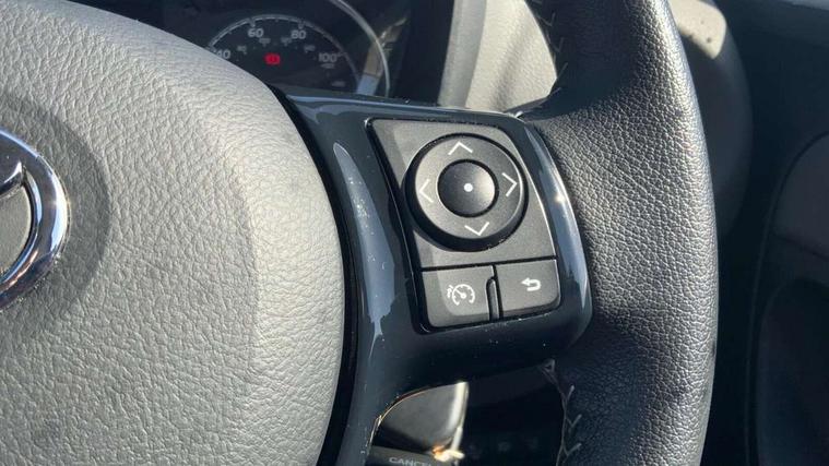 Bluetooth system, Cruise control, External temperature gauge, Fuel indicator with low level warning, Lane departure warning system, Lights on warning, Multi-information display, Power Steering, Rear parking sensor, Rear view camera, Road sign assist - RSA, TFT display screen, Touch 2 Go navigation system, Trip computer, 6 speakers, Auxiliary input socket, DAB Digital radio, Steering wheel mounted audio/telephone controls, Touch 2 touchscreen Radio with iPod connectivity, USB connection, 2 speed front wipers + intermittent wipe, Auto high beam, Auto up and down function on drivers window, Body colour bumpers, Body colour door handles, Body coloured door mirrors, Chrome fog light surround, Daytime running lights, Door mirror integrated indicators, Drivers window one touch up/down, Electric adjustable heated door mirrors, Electric front windows, Follow me home headlights, Front fog lights, Green tinted glass, Heated rear windscreen, Projector headlights, Rain sensitive windscreen wipers, Rear wiper, Turning signal integrated indicators in door mirrors, 3 spoke leather steering wheel, 60/40 split folding rear seat, Active headrests, Boot light, Cloth upholstery, Driver seat height adjust, Driver/passenger vanity mirrors with covers, Front cupholders x 2, Front map reading lights, Front seats with lumbar support, Glovebox, Height adjustable front head restraints, Height adjustable rear seat head restraints (x3), Isofix system on outer rear seats, Leather gear knob, Manual air conditioning, Rear cupholder, Removable rear parcel shelf, Sliding front seats, Tilt/telescopic steering column, 3 point seatbelts on all rear seats, ABS+EBD+Brake assist, Collision mitigation braking system, Curtain airbags, Driver and passenger airbags, Drivers knee airbag, Emergency brake light system (EBS), Front passenger airbag on/off switch, Front seatbelt reminder, Front side airbags, Height adjustable front seatbelts with pre-tensioners and load limiters, Hill start assist control (HAC), Passenger airbag deactivate switch, Rear child proof door locks, Rear seat belt reminder, Road sign information display, Seatbelt warning lamp and buzzer, Toyota safety sense including Road sign assist, Pre collision system, auto high beam and lane departure alert), Tyre pressure monitoring system, Vehicle stability control VSC + traction control, Engine immobiliser, Remote central locking, Instrument panel in grey, Space saver spare wheel,