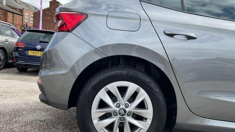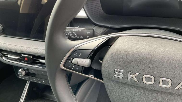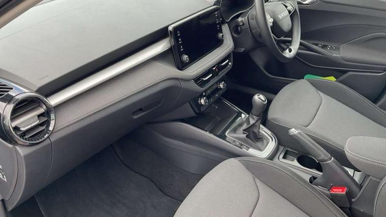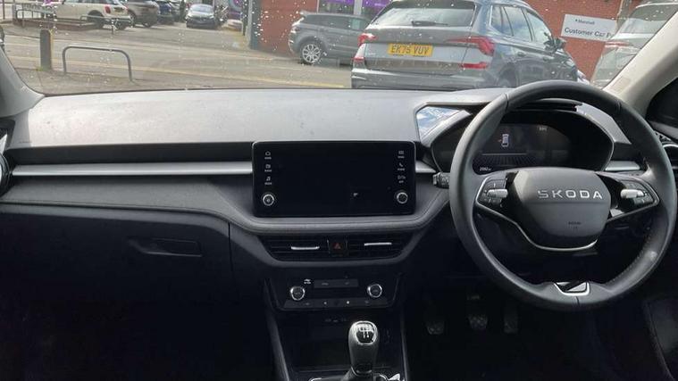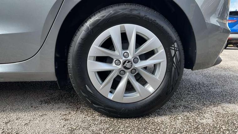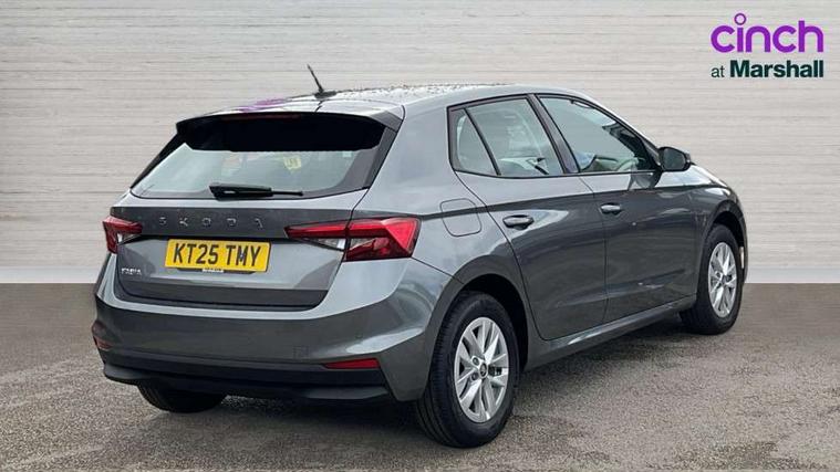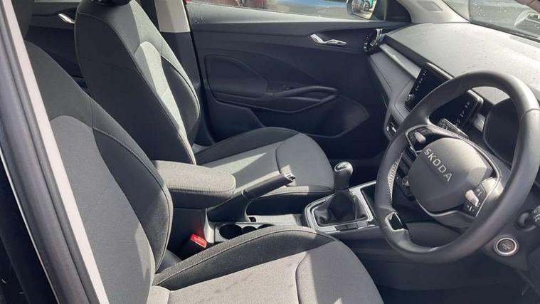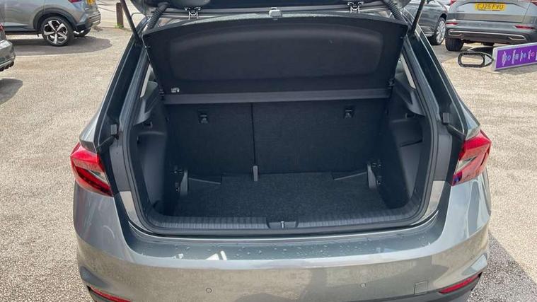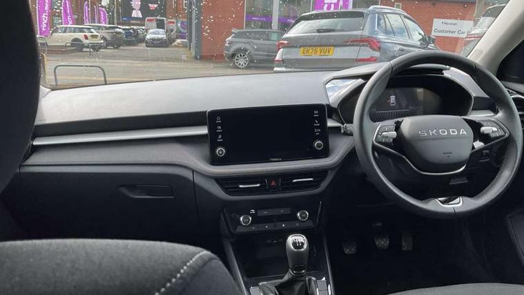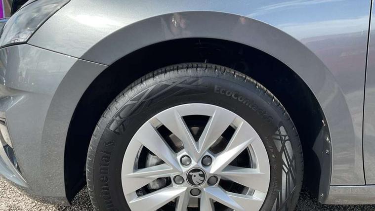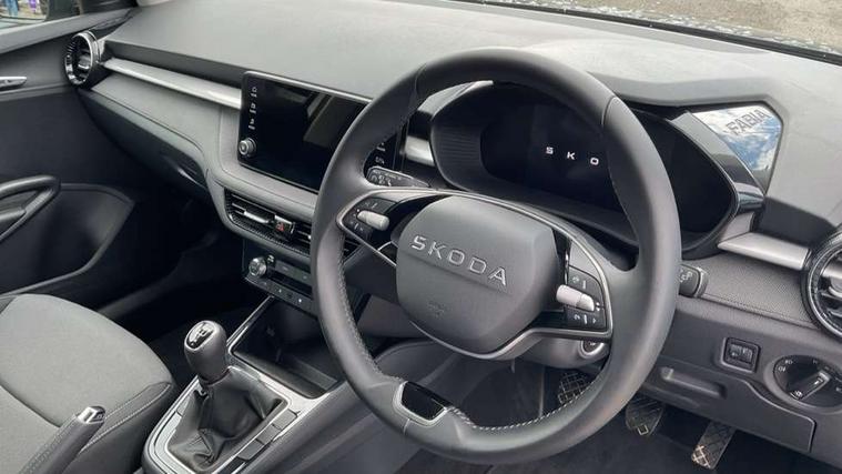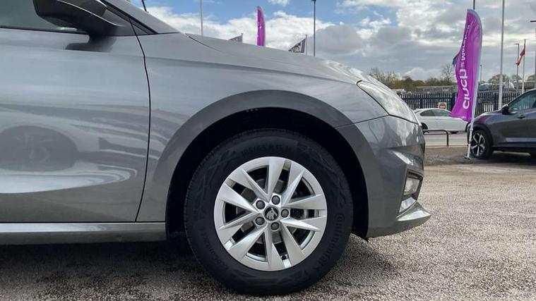 8" Digital instrument display, Advanced driver attention and drowsiness monitor, Bluetooth connection, Cruise control with speed limiter, Driver alert system, Electromechanical power steering, Exterior temperature gauge, Lane assist including road edge detection, Rear parking sensors, Service interval indicator, Traffic sign recognition, Wireless SmartLink for Apple CarPlay and Android Auto, 6 Speakers (4 in front and 2 in rear), 8.25" Skoda infotainment touchscreen display, Auxiliary socket for external MP3 player, DAB digital radio reception, Auto dimming rear view mirror, Body colour door mirrors, Body coloured bumpers, Door mirror integrated indicators, Front and rear electric windows, Front window wiper intermittent control, Headlight range control - Automatic, Ice scraper in fuel cap, LED 3rd brake light, LED daytime running lights with coming and leaving home feature, LED rear lights, Rear LED fog light, Rear side wing doors, Rear window wiper with washing nozzles, Roof mounted spoiler, SKODA tailgate lettering in chrome, Unique dark chrome design logo on alloy wheels, 2 reading lights in front and 2 reading lights in rear, 3 rear headrests, Backrest split and folding, Central console with removable cup holder and storage box, Chrome handbrake release button, Dual zone air conditioning with climatronic electronic control, Fabric upholstery, Front centre armrest, Gearshift knob/handle in leather, Grain satin black interior door handles, Hand brake lever handle in leather, Height adjustable front headrests, Height adjustable front seats, Height adjustable steering wheel, ISOFIX and TopTether anchorage points to the outer rear seats, ISOFIX and TopTether on the front passenger seat, Luggage compartment lighting, Manually adjustable lumbar support in front seats, Pollen filter, Rear seat bench unsplit, Single front passenger seat, Skoda lettering on steering wheel, Storm grey headlining, Sun visors with mirror and airbag label on passenger side, Textile floor mats, Ticket holder, Umbrella in drivers door, Ambient lighting pack - Fabia Hatchback, 3-point height adjustable front seats belts with pretensioner and force limiter, Automatic warning lights in case of crash, Driver and passengers airbag with switch off function, e-Call+, ESC including ABS, MSR, ASR, EDS, HBA and XDS, Front and rear seat belt warning, FRONT ASSIST (AEB City and AEB Inter Urban), Front side airbags, Head airbags, One tone horn, Pedestrian protection, Three rear 3-points safety seat belts with pretensioner and force limiter including stop function for outer rear seat belts, Tyre pressure monitoring system, Anti-theft alarm system including immobiliser, interior monitoring, backup horn, and towing protection, Central locking with radio remote control, interior controls, SAFE function and 2 foldable keys, KESSY - Keyless engine start/stop, Black painted air vents, Grain satin black central console cover, Metallic grey upper decorative trim, Satin black door and side trim panel in front, Textile Kota grey lower decorative inserts, Anti-theft wheel bolts protection, Super-low rolling resistance tyres,