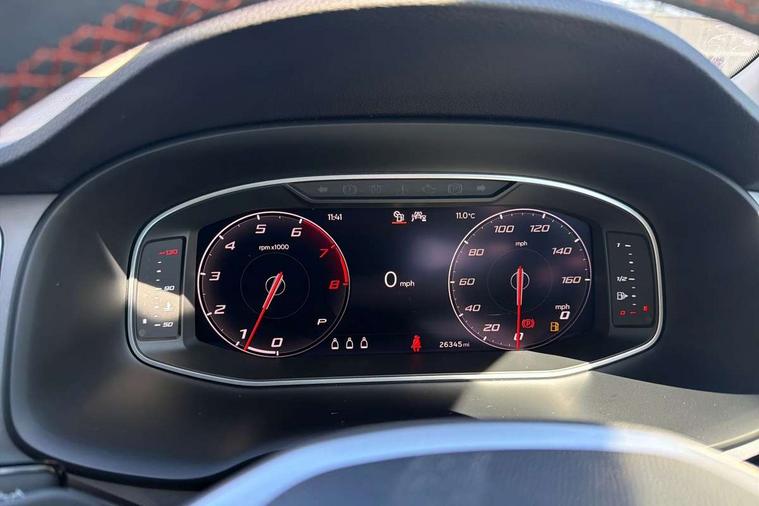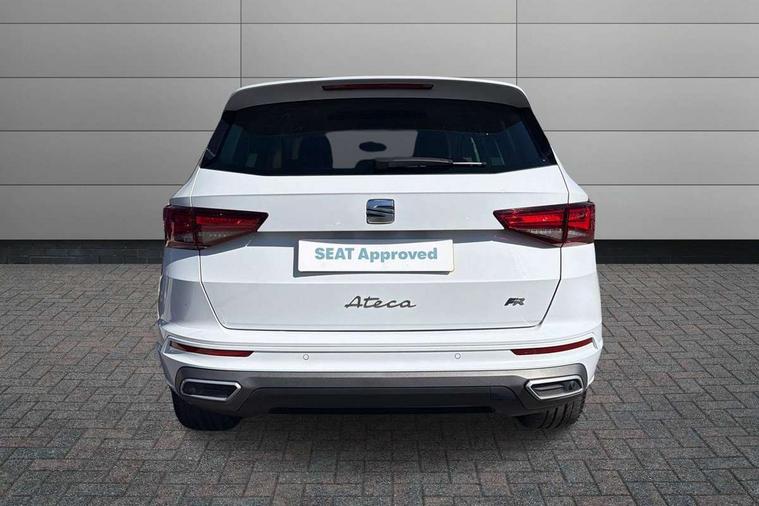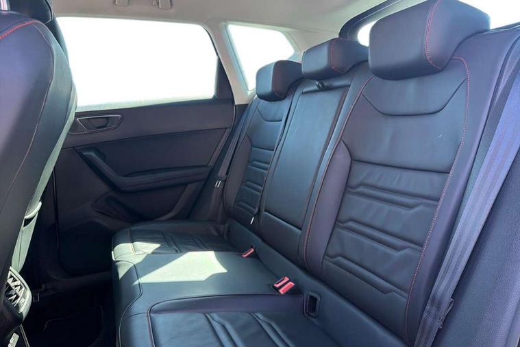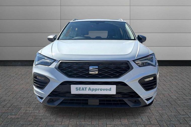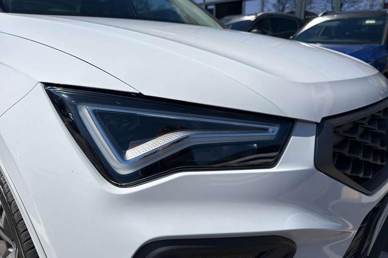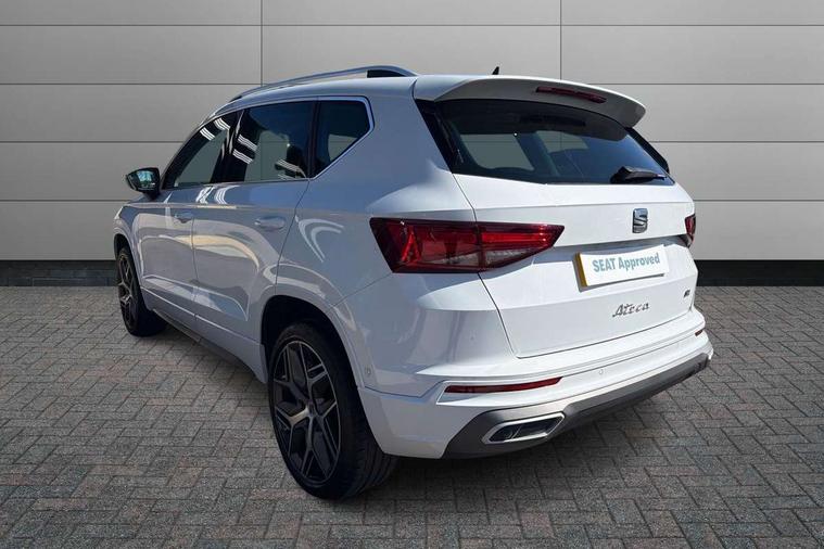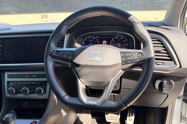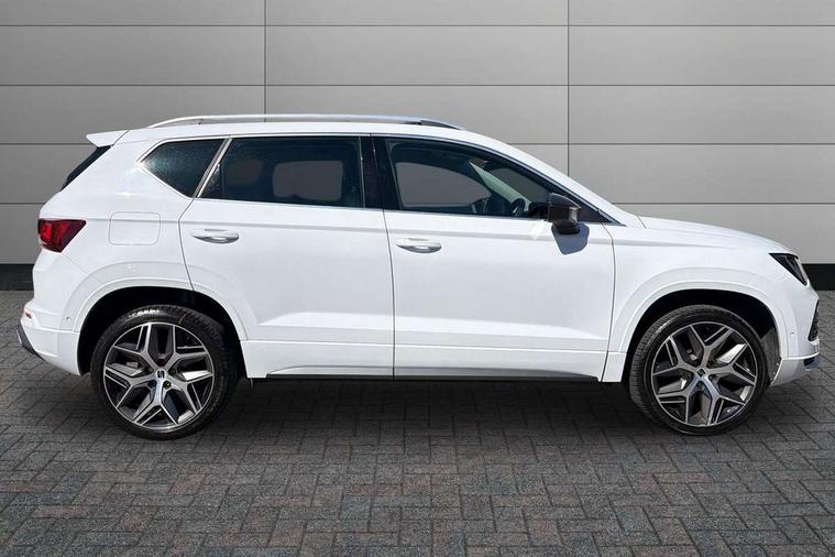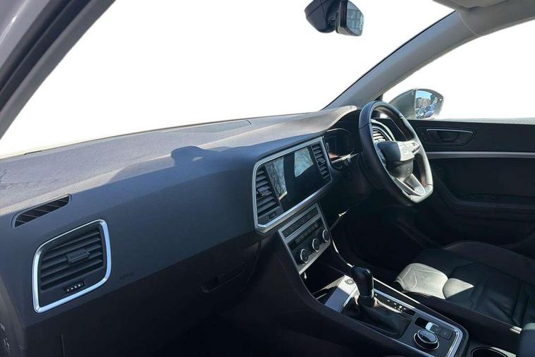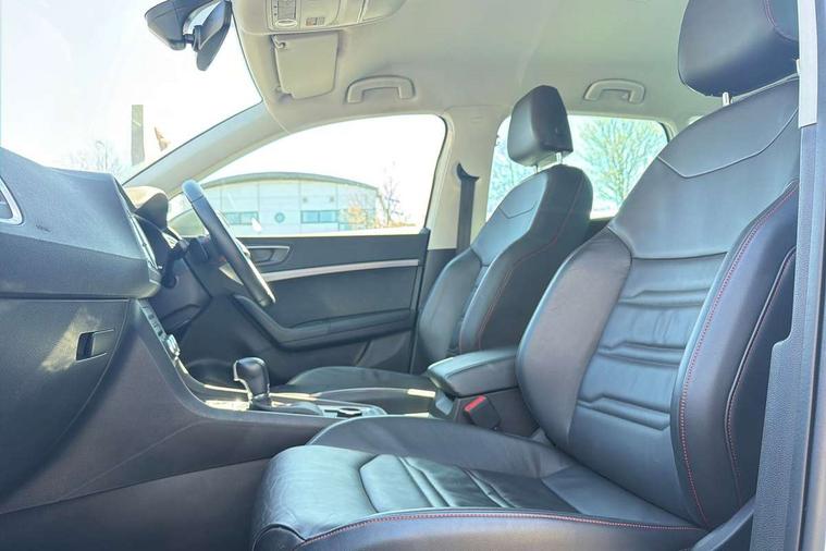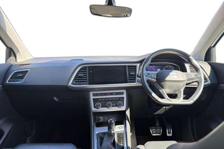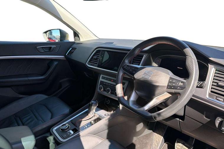 Cruise control system with speed limiter, Digital cockpit, E-call, Outside temperature gauge, Progressive power assisted steering, SEAT drive profile with driving experience button - Normal, Sport, Eco and Individual mode, gearshift, steering and throttle response, Self parking functionality (includes front and rear parking sensors), Trip computer, Wireless full link smartphone integration, Wireless phone charger, Steering wheel mounted audio/phone controls, Body colour bumpers, Body coloured wheel arch surrounds, Chrome roof rails, Chrome side window trim, Cosmo grey front grille frame, Dark tinted rear windows, Daytime running lights, Door mirrors with welcome light silhouette, Dynamic headlight range control with self adjusting whilst driving, Electric adjustable/heated/folding door mirrors, Front and rear electric windows, Full LED headlamps with lens and LED front fog lamps with cornering function, Illuminated aluminium front door sill, LED rear tail lights with dynamic indicators, Rear fog lights, Rear side wing doors, Rear spoiler, Rear wash/wipe, Simulated exhaust pipes in chrome frame, 12V socket in front, 3 seat bench in 2nd row, 60/40 split folding rear seat, Aluminium pedals, Dual zone climate control, Electric adjustable driver seat with lumbar adjustment, Front and rear head restraints, Front centre armrest, Front seat back storage pockets, Heated front seats, Height adjustable passenger seats with lumbar adjustment, ISOFIX points in outer rear seats with top tether anchorage points, Leather steering wheel and gear knob, Leather upholstery with front sports seats, Rear armrest and easy back seat release mechanism from boot, Single front passenger seat, Steering wheel mounted gearshift paddles, Convenience pack - Ateca, Interior lighting pack - Ateca, Navigation system pack with DAB - Ateca, 3x3 point rear seatbelts, ABS, Traction control system (TCS), Electronic stability control (ESC) and Electronic differential lock system (XDS), Airbags - Driver and front passenger airbag with deactivation, front side, two curtain and driver's knee airbags, Electric parking brake with auto hold function, Front and rear seatbelt reminder, Front assist with autonomous emergency braking, Hill hold control, Manual rear child locks, Tiredness recognition system, Traction control, Tyre pressure monitoring system, Alarm, Keyless entry, Locking wheel bolts, Chrome interior detailing, 19" Exclusive machined alloy wheels with decorative inserts 36/7 in cosmo grey,